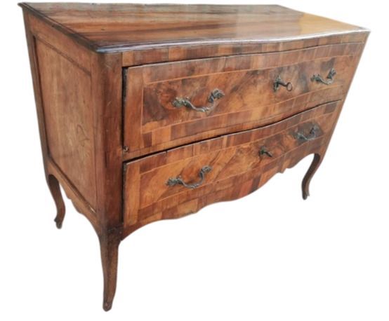 Cassettone Comoncino Luigi XV 2 cassetti Emiliano,dal fronte mosso, in noce massello