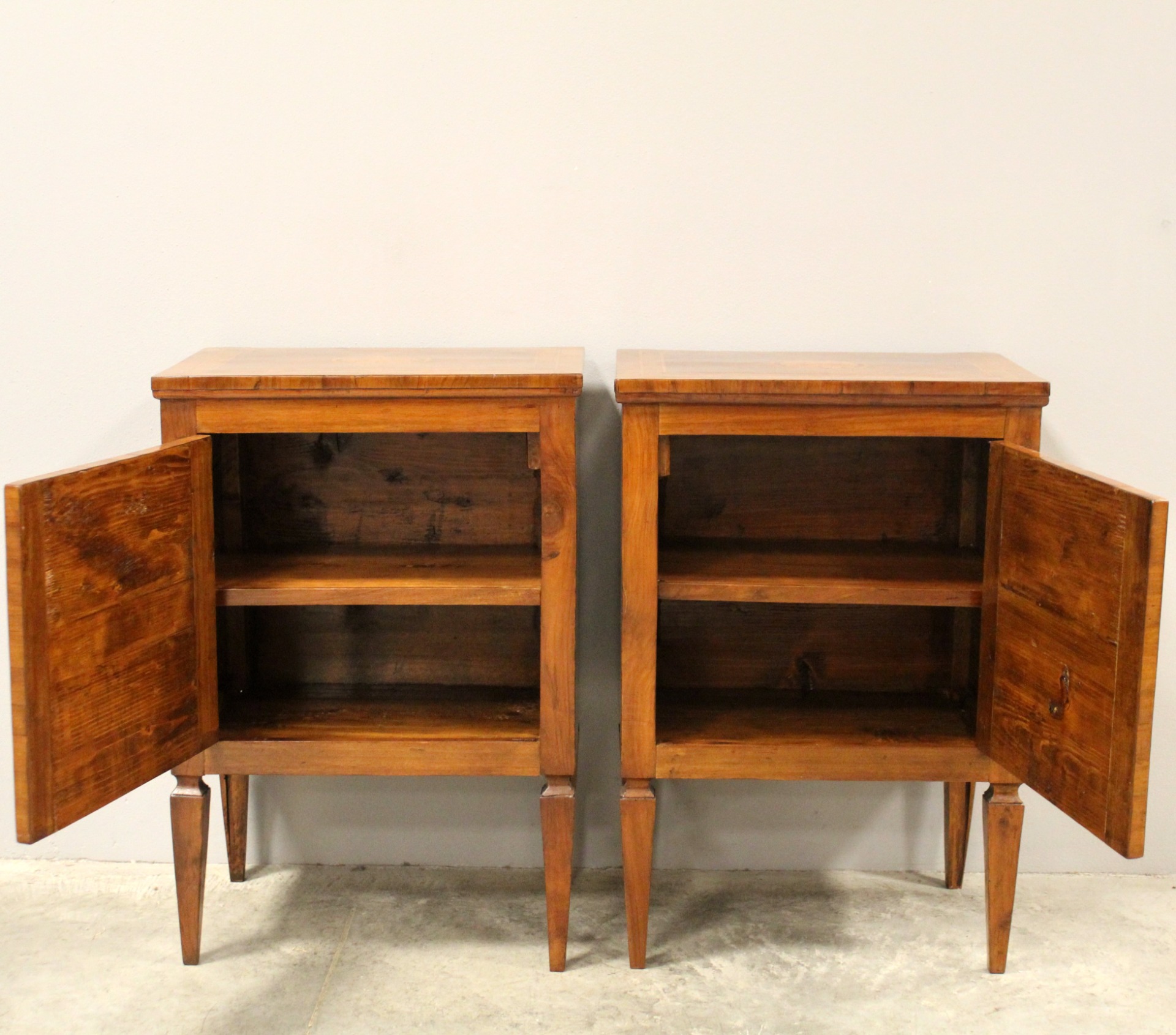 Antica coppia comodini Luigi XVI in noce intarsiati - Italia epoca '700