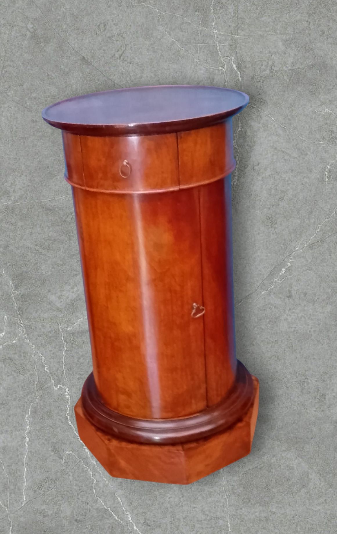 Comodino a colonna in noce italiano epoca primi trent'anni dell' 800 Misere Ø 41,5 H78,5