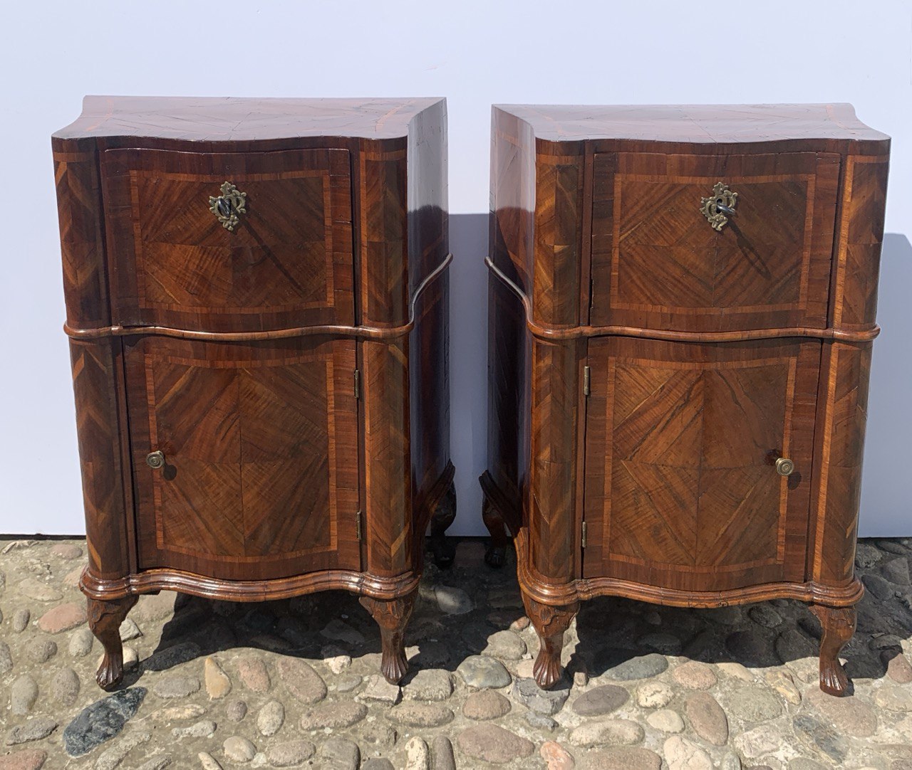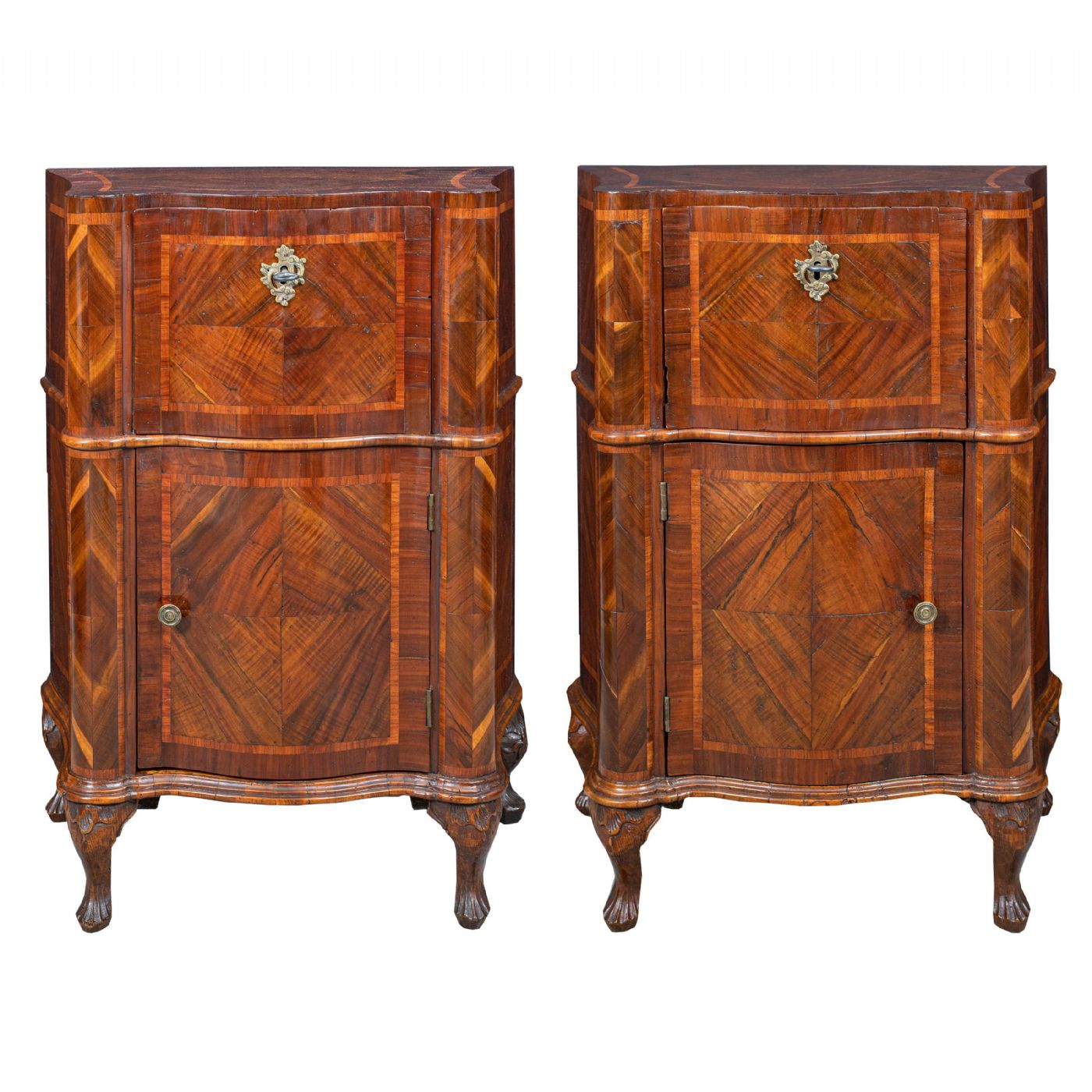 Coppia di comodini lastronati in noce e carrubo. Venezia, metà XVIII secolo.
