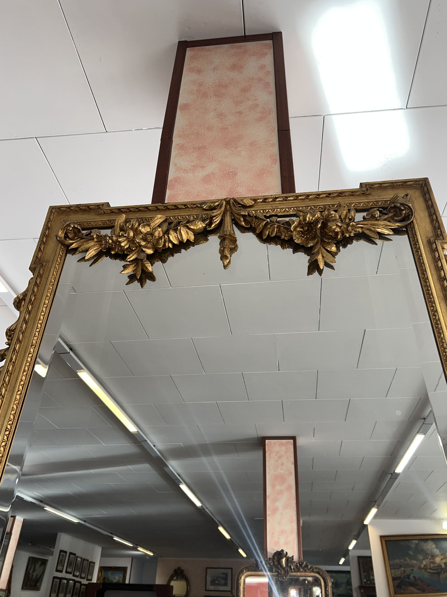 Consolle con specchiera dorata Stile Luigi XVI Epoca '800 Dimensioni: L. 114 cm, H. 270 cm, P. 50 cm. Spese di spedizione a carico cliente. Per maggiori informazioni: info@antichitadaziano.com