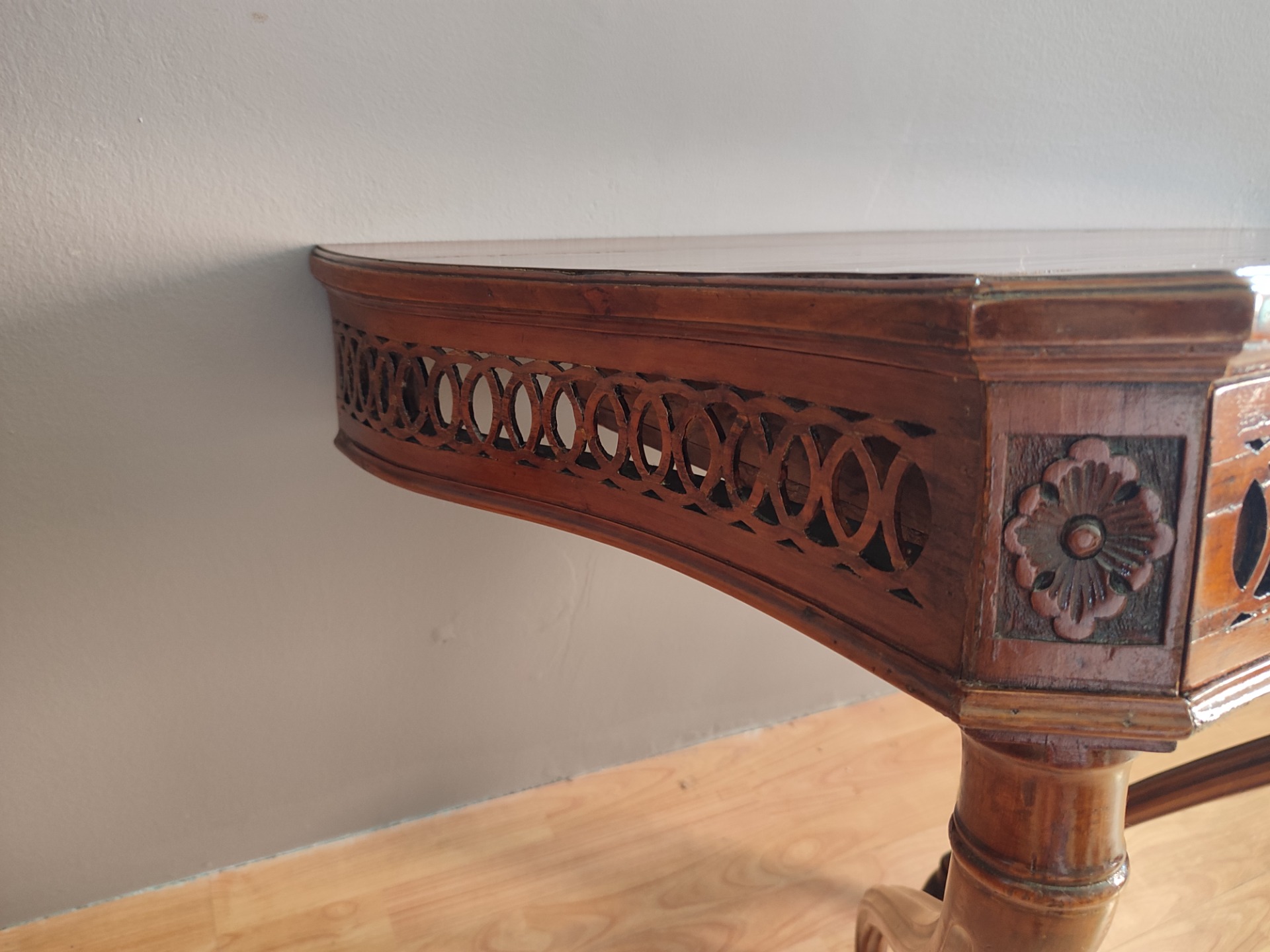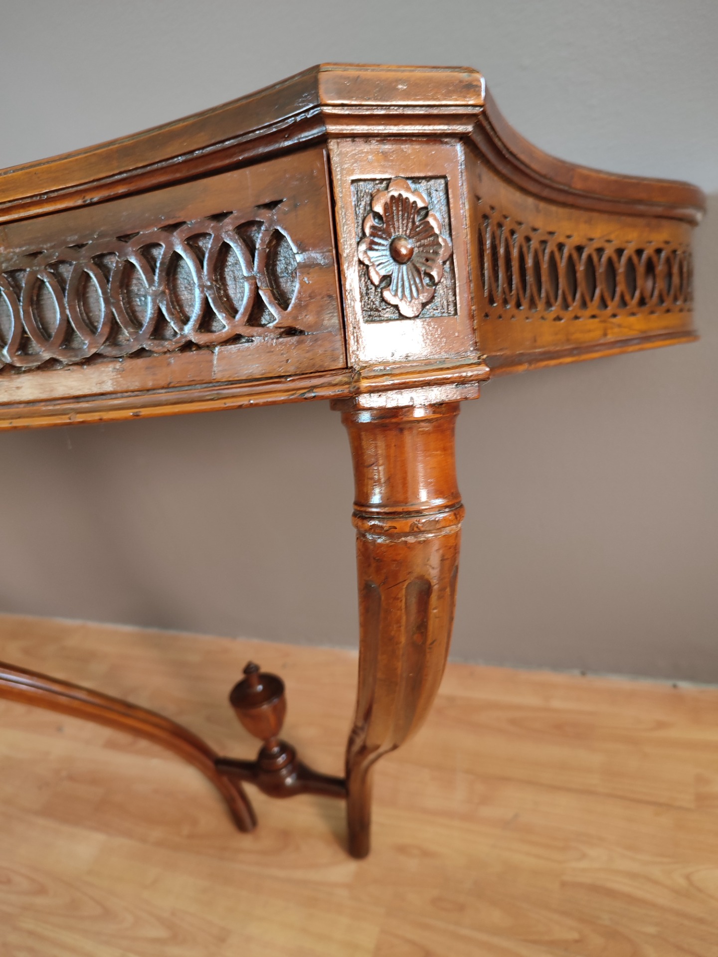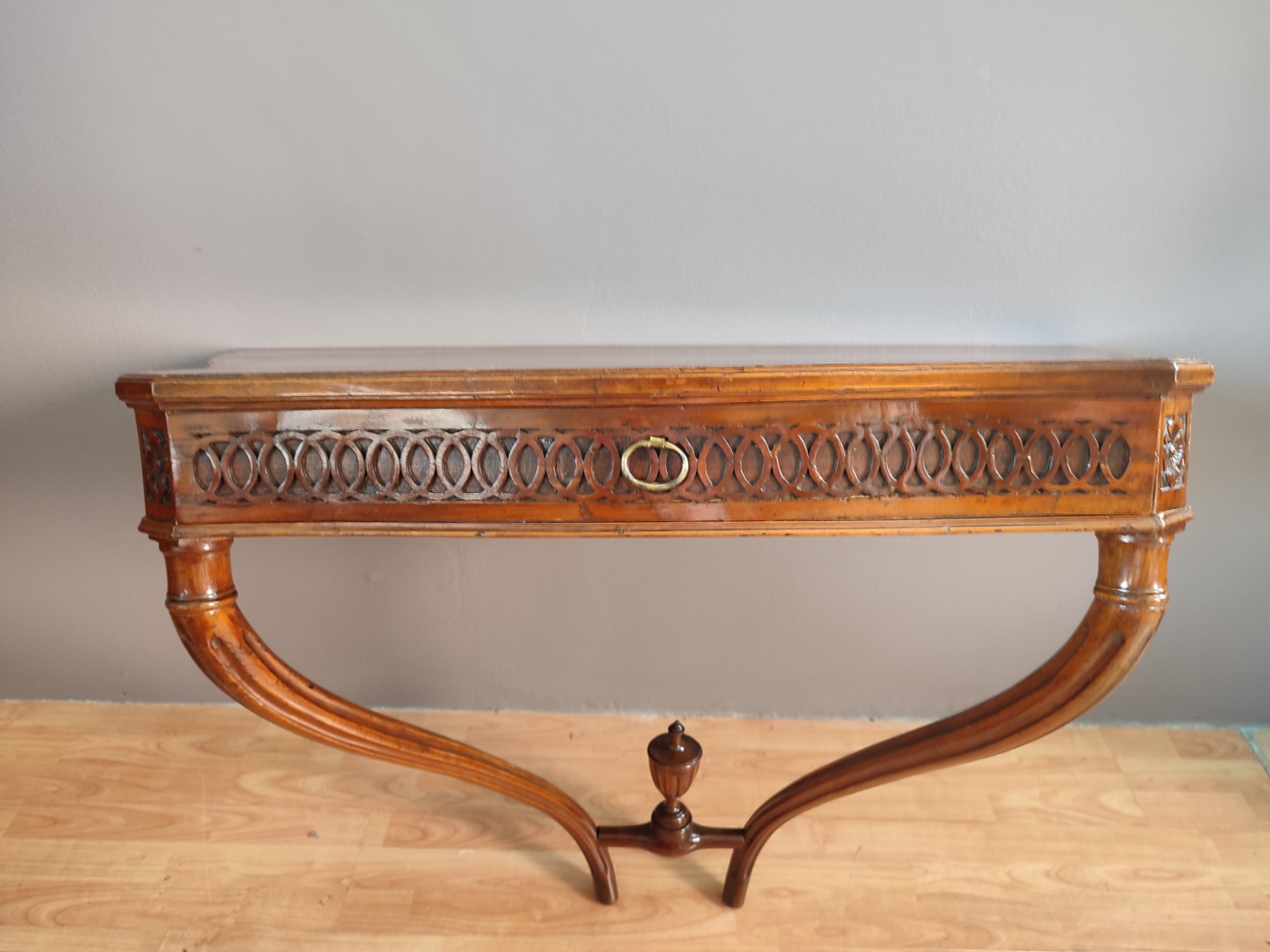 Console Luigi XVI in noce veneziana con intaglio originale.Porta cassetto.