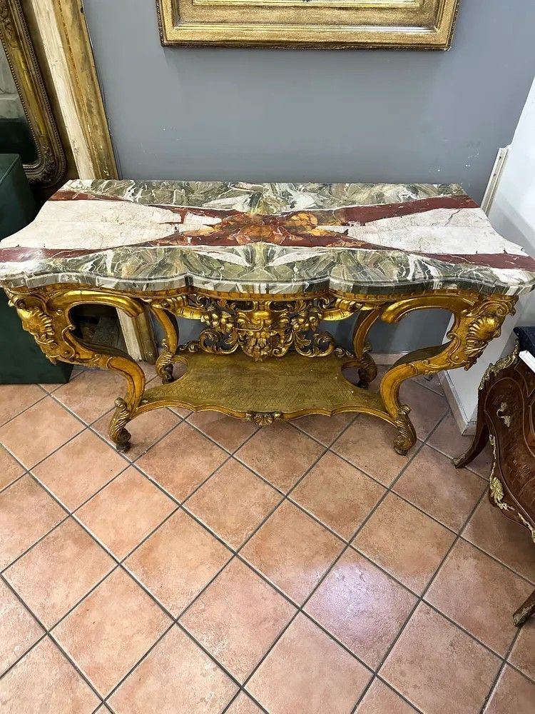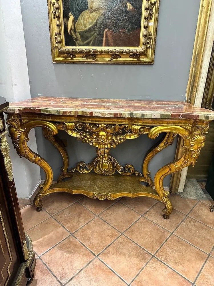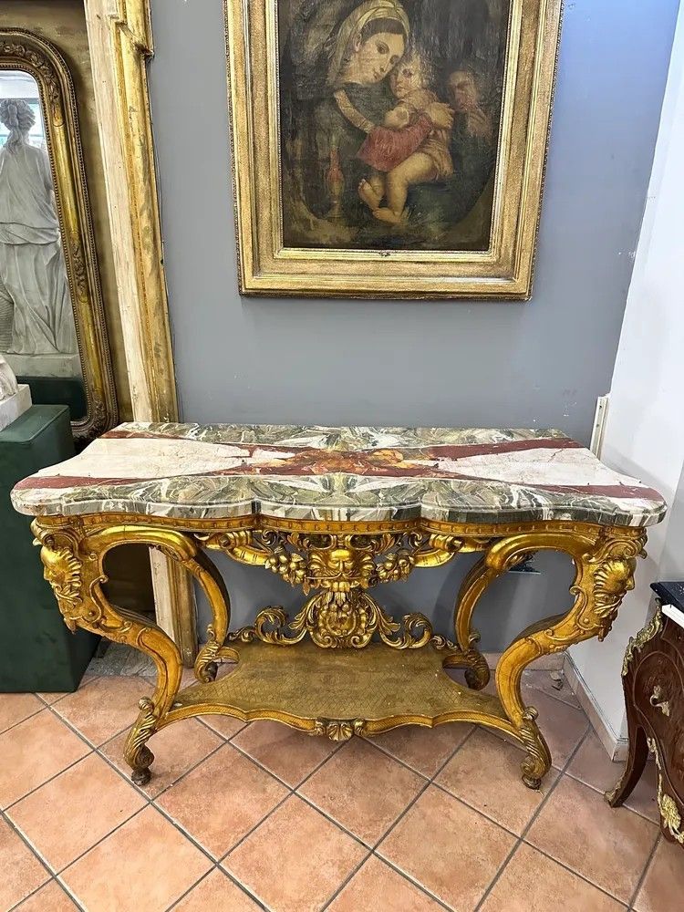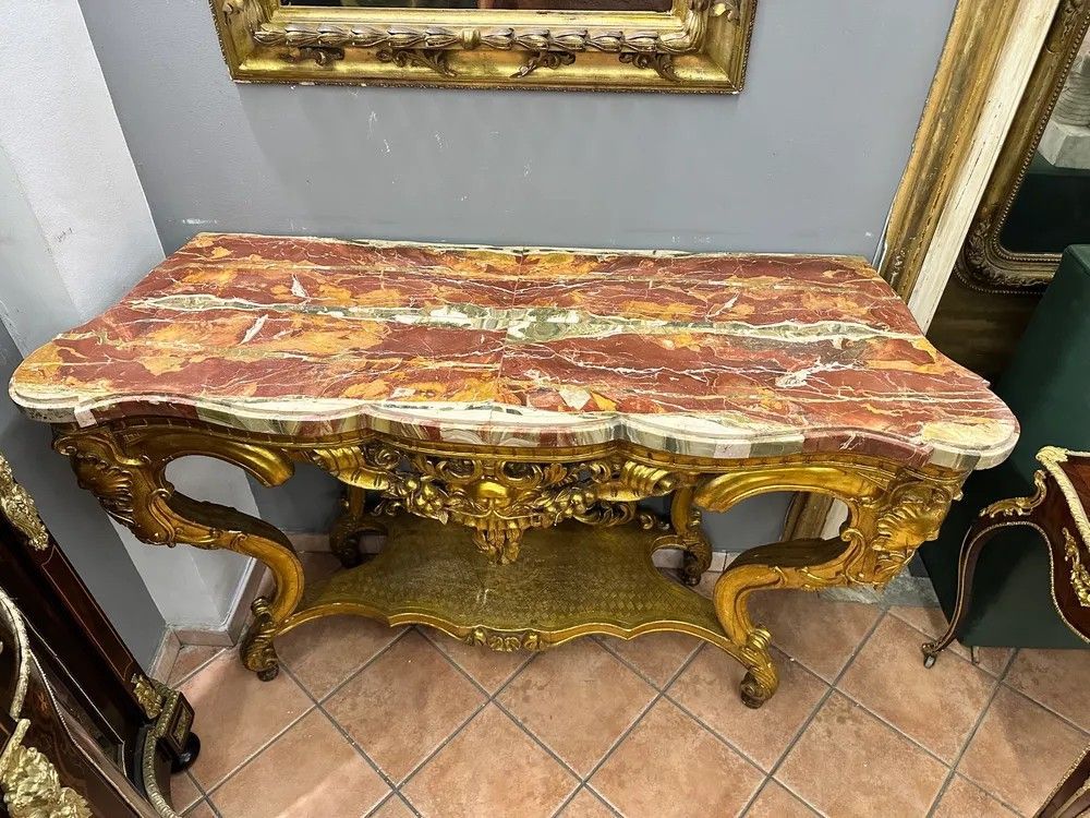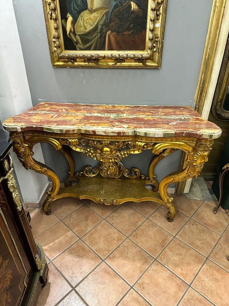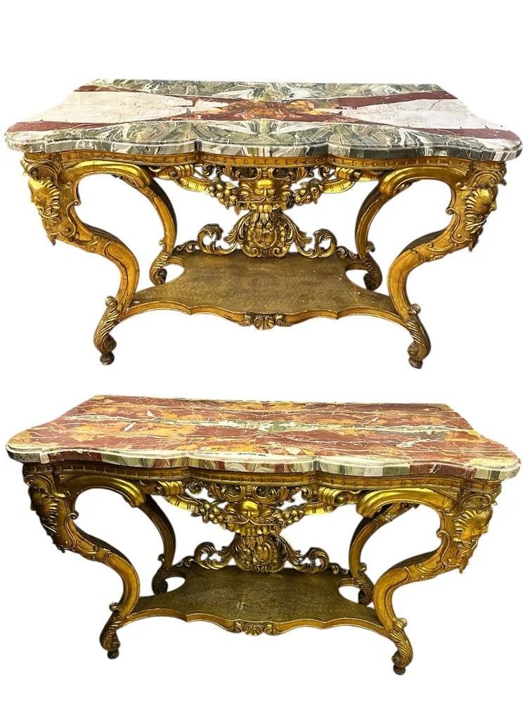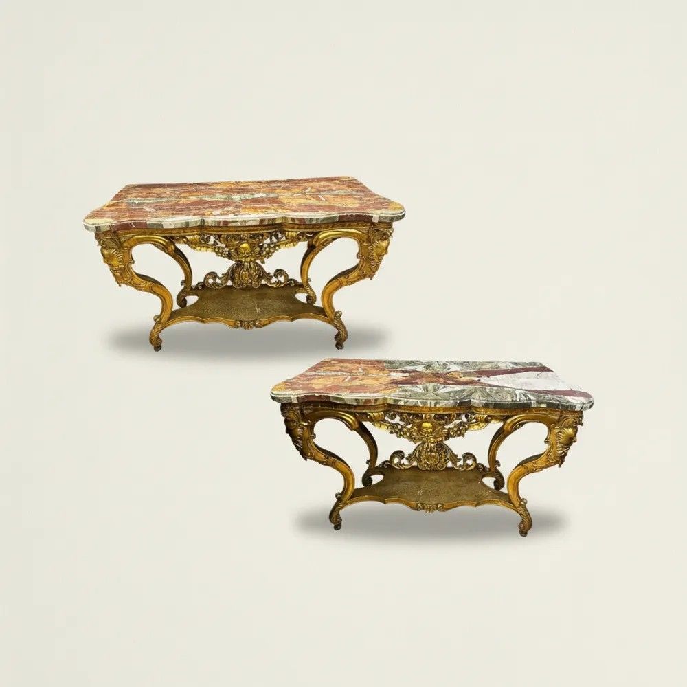 Coppia di Consolle Luigi XV in Legno Dorato e Marmo diaspro