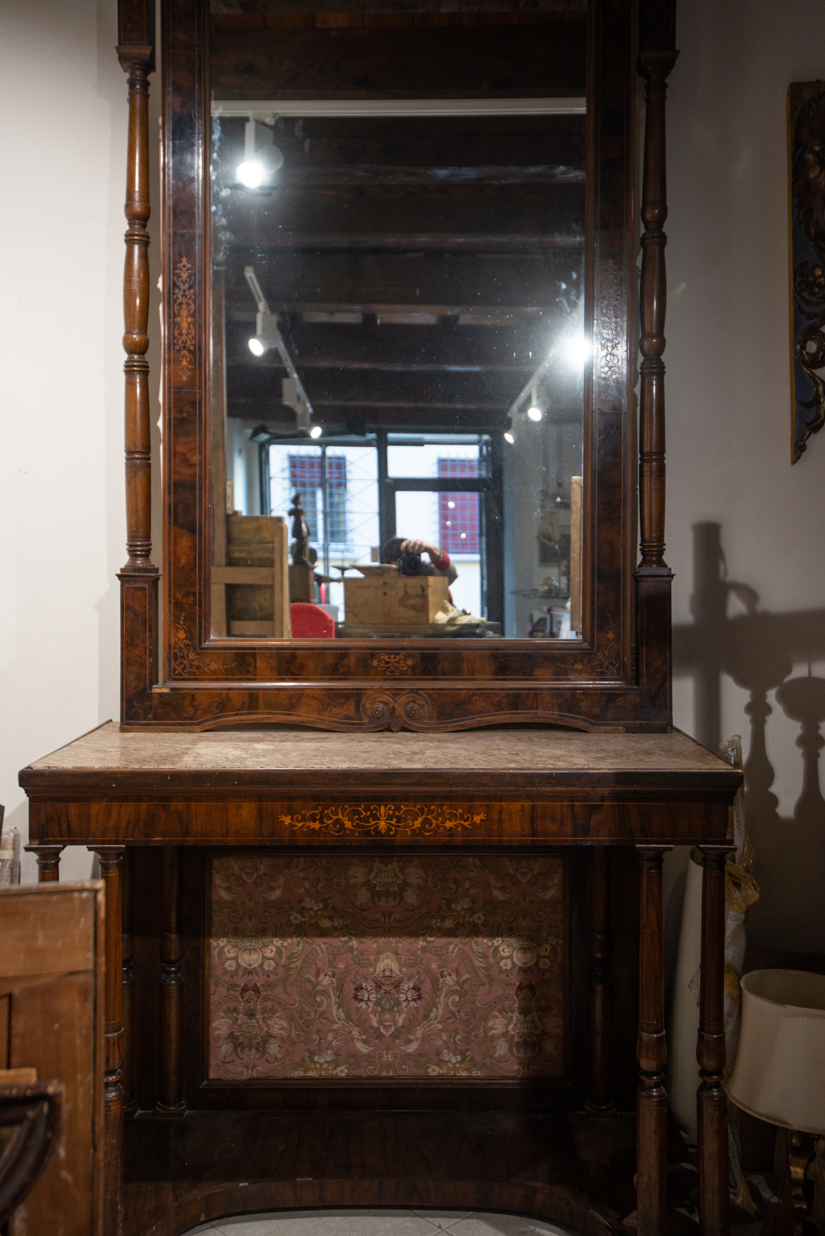 Grande consolle con specchiera e piano in marmo - Carlo X primi '800 - restauri necessari