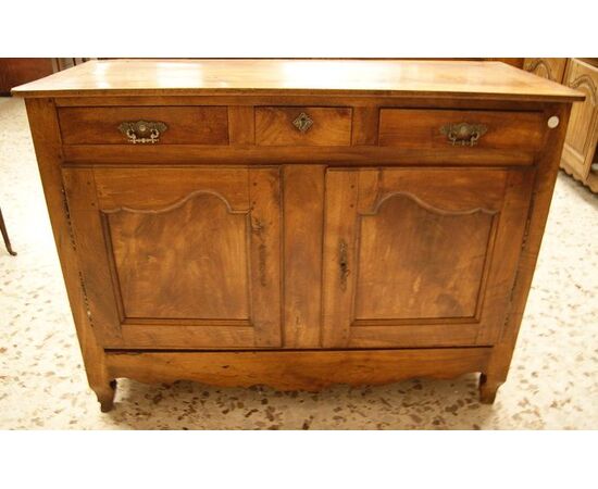 Credenza francese Provenzale dei primi del 1800 in legno di ciliegio. Presenta 2 ante chiuse e 3 cassetti sottopiano di varie dimensioni. Ferramenta in ottone.
