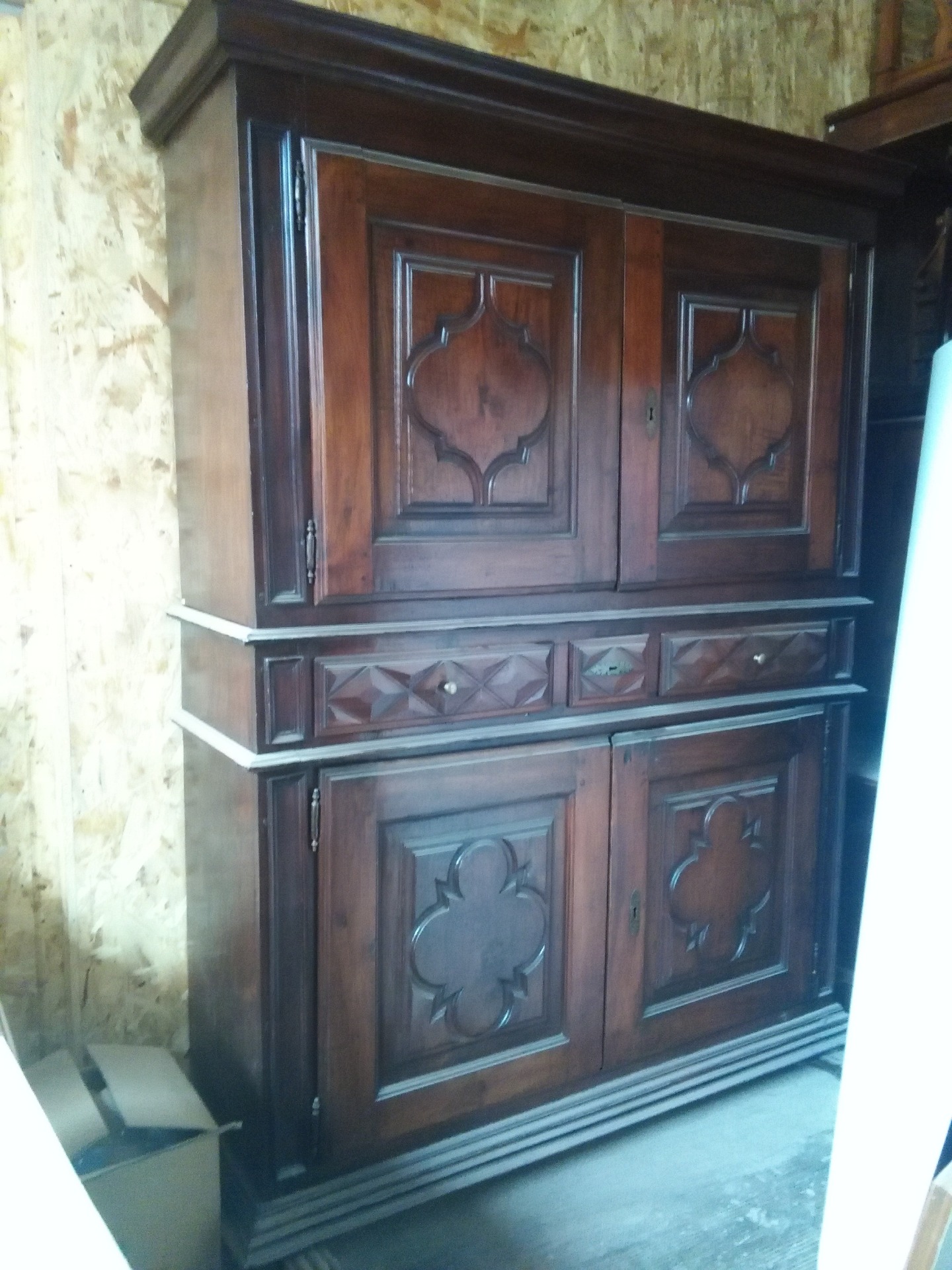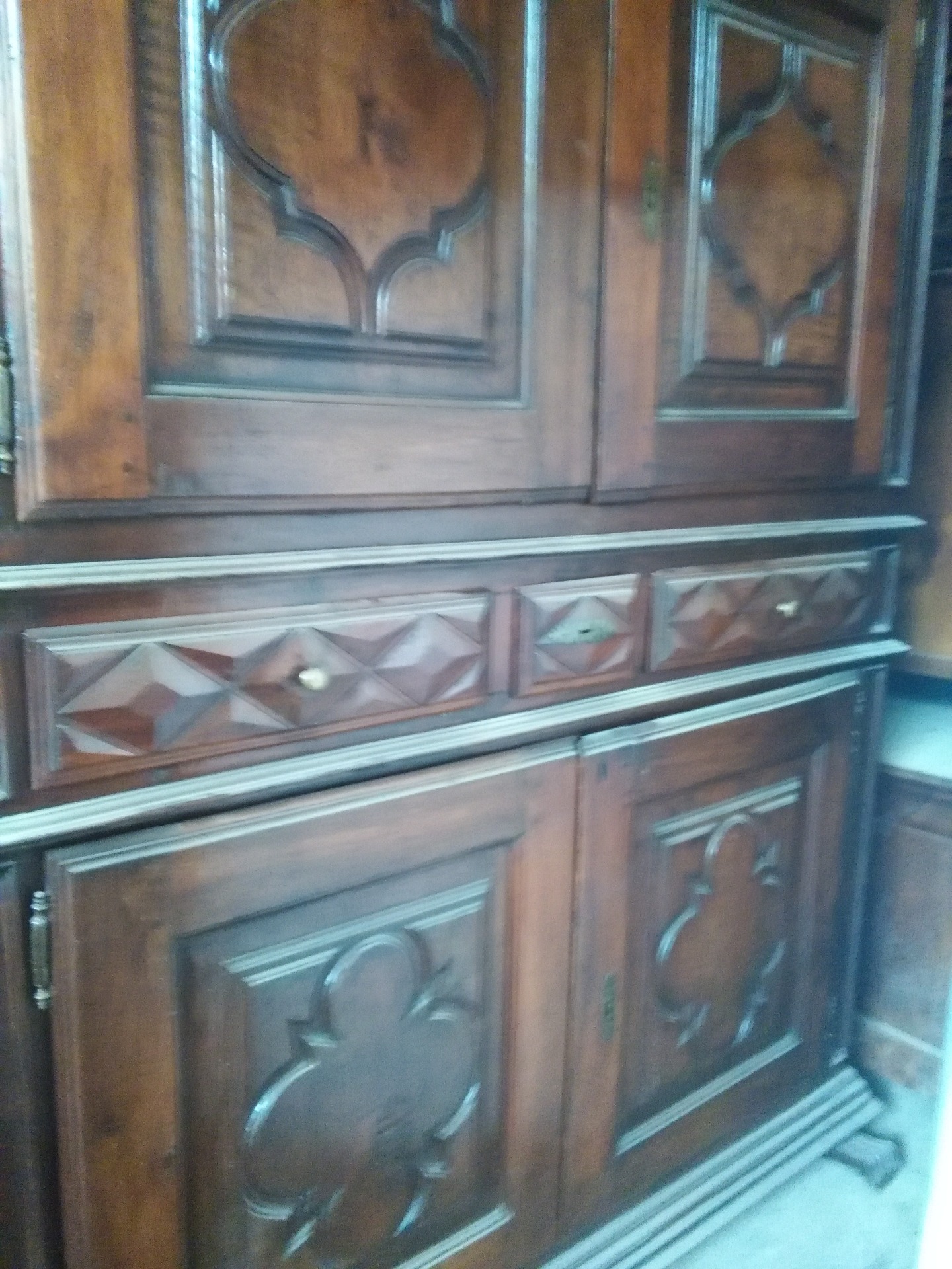 Credenza doppio corpo in noce epoca 600 emiliana.il mobile è in patina chiavi e serrature originali.Per info 3282493057