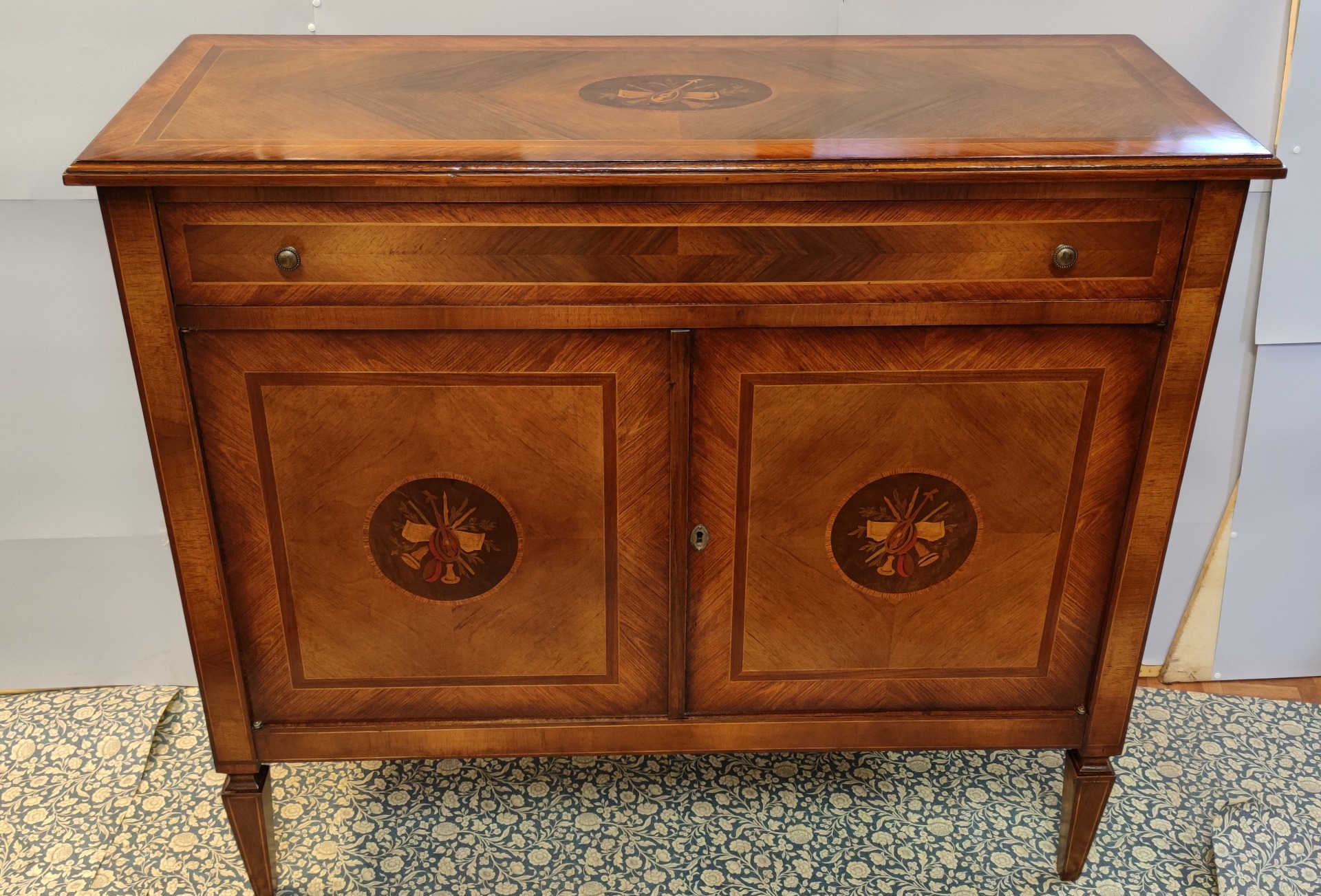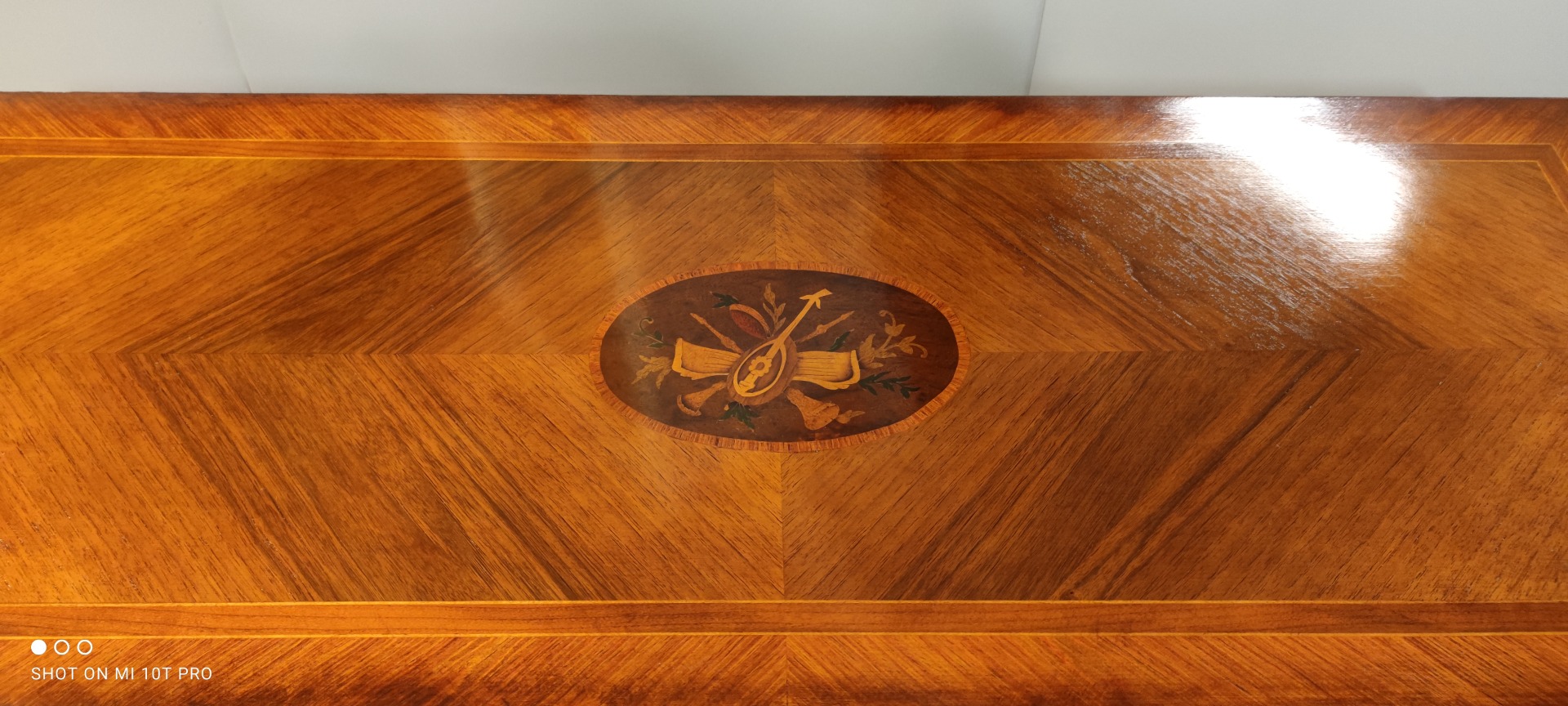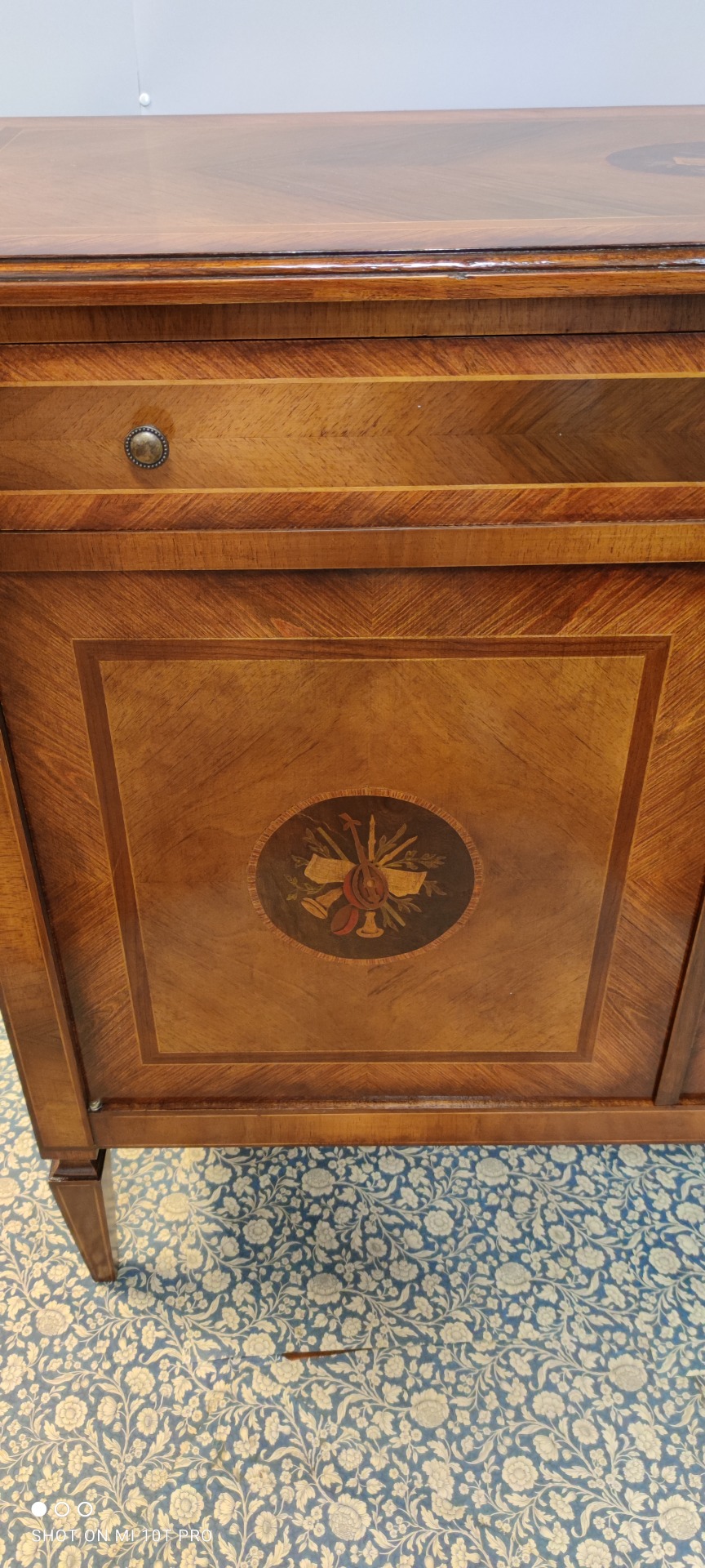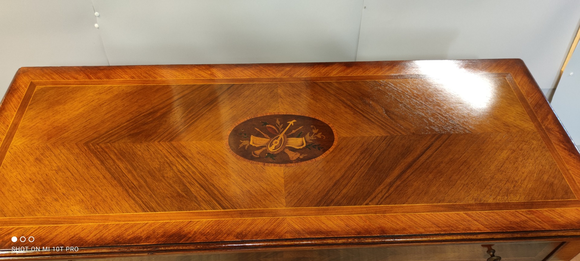 Credenza in noce con intarsi in bosso piede a spillo mis 115x45 h 90 epoca anni 30
