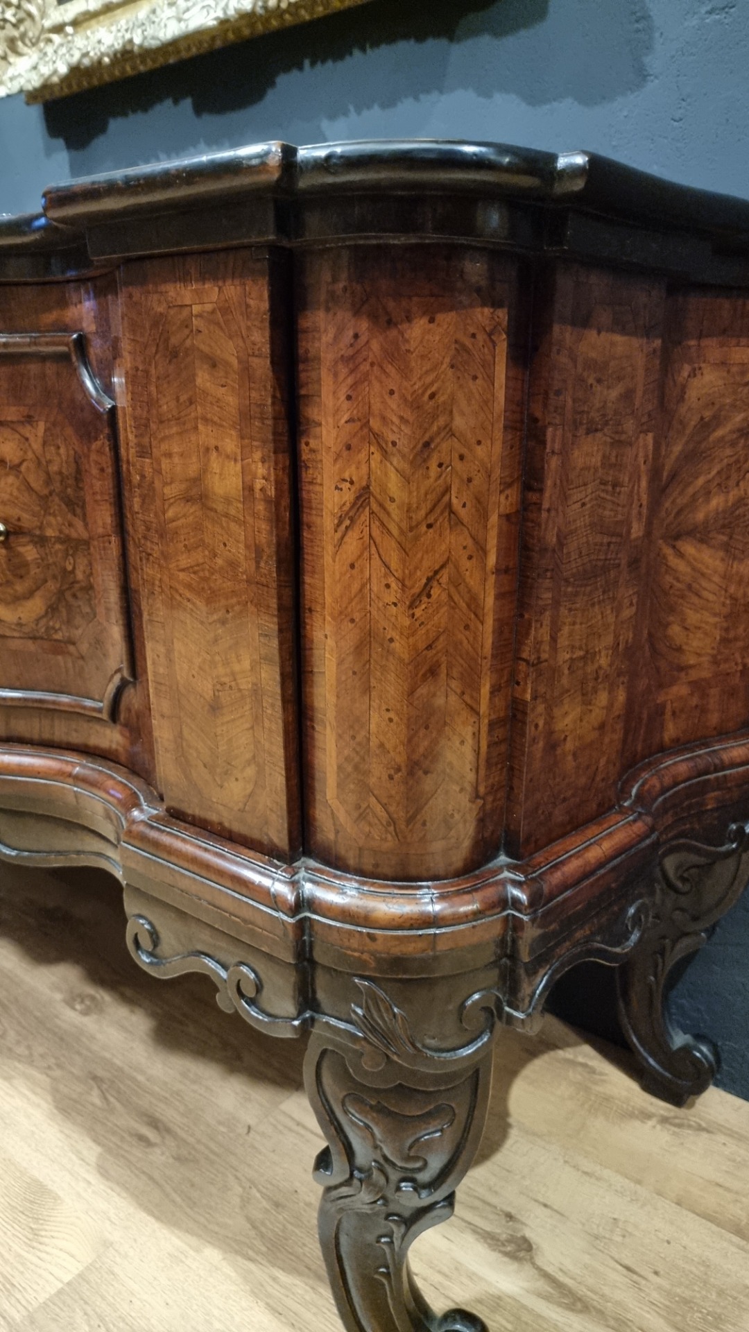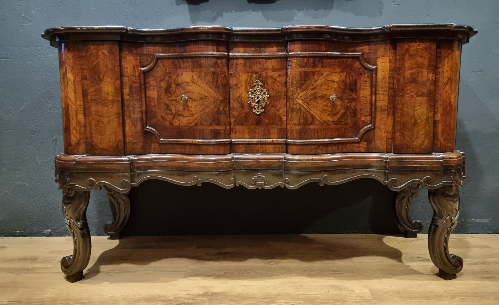 Di grande fascino e qualità la credenza mossa sia nel fronte e nei fianchi è in legno di radica di noce originale in prima patina del 700 epoca luigi 14° lombarda. Ancora in eccellenti condizioni generali per il periodo, qualche giusta ruga e qualche restauro subito nel tempo, proviene da collezione privata . La misura è di cm170x60xh95 di altezza, un’oggetto che saprà impreziosire la vostra dimora un’oggetto che sicuramente sarà capace di rapirvi! Non dimenticate di guardare tutte le mie altre proposte! Per qualsiasi informazione e domande, non esitate a contattarci, siamo qui a completa vostra disposizione. Si rilascia ricevuta fiscale a norma di legge e garanzia autenticità con foto. Pagamenti accettati: bonifico bancario ; uso packaging professionale antiurto, consegna con corriere in tre giorni lavorativi, spedizione GRATUITA IN TUTTA europa.