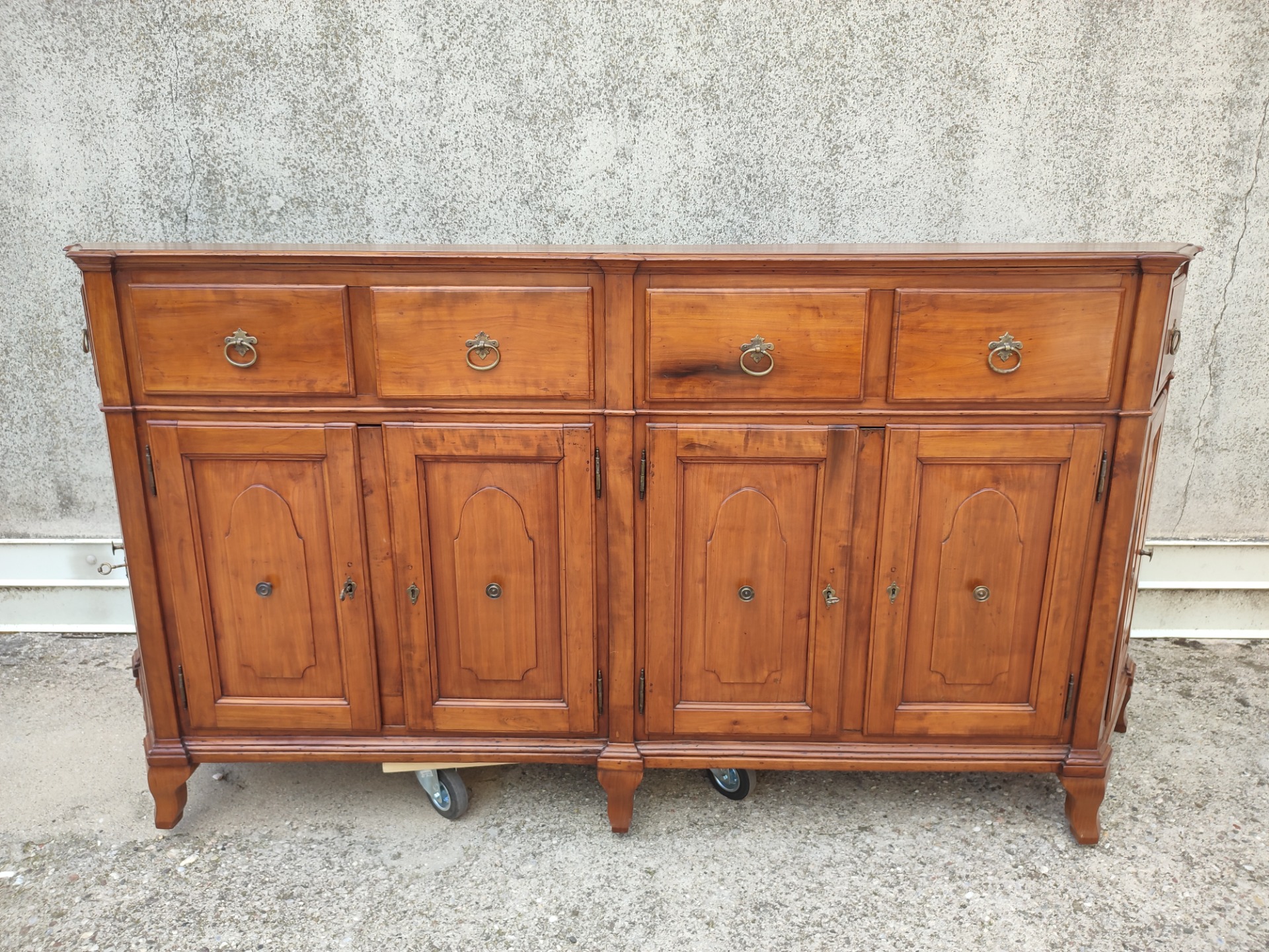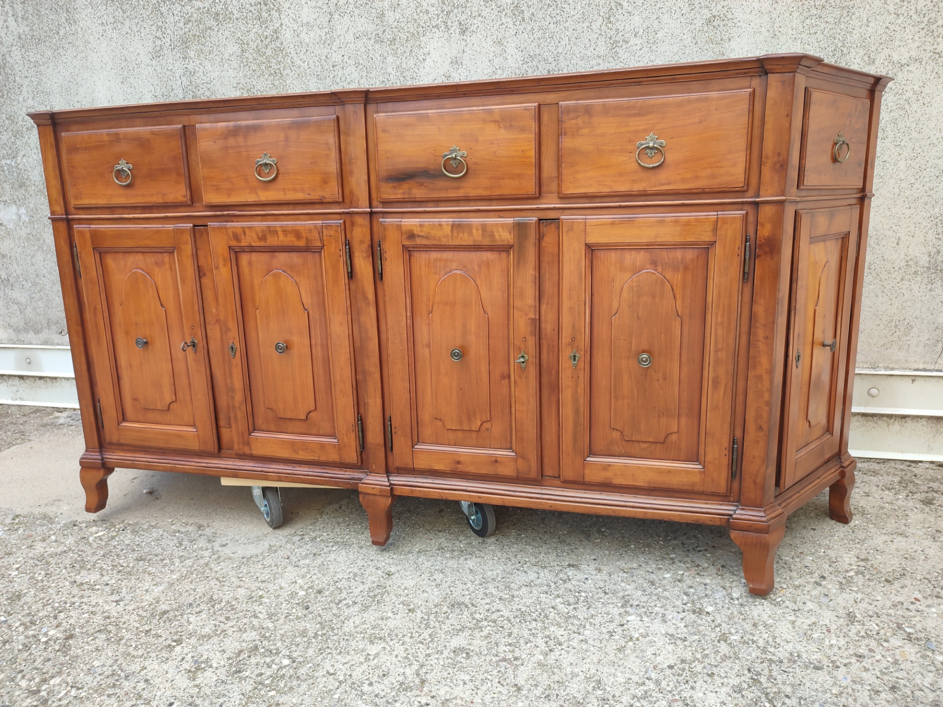 Grande credenza 6 porte in ciliegio,epoca primi 800. Restaurata.Miss : L 245 P 54 H 118 Siamo a vostra disposizione per foto o domande. Cell 3282493057