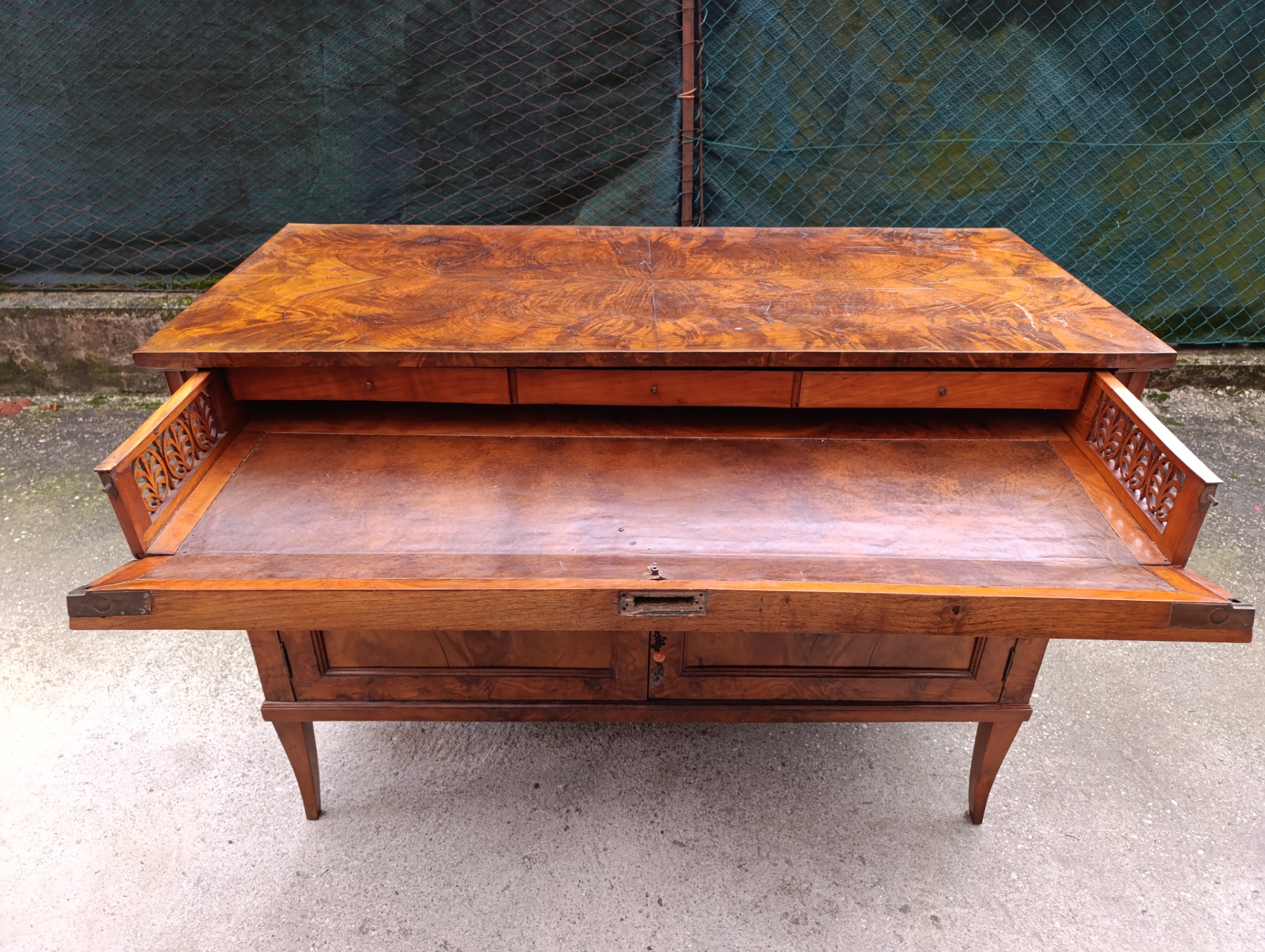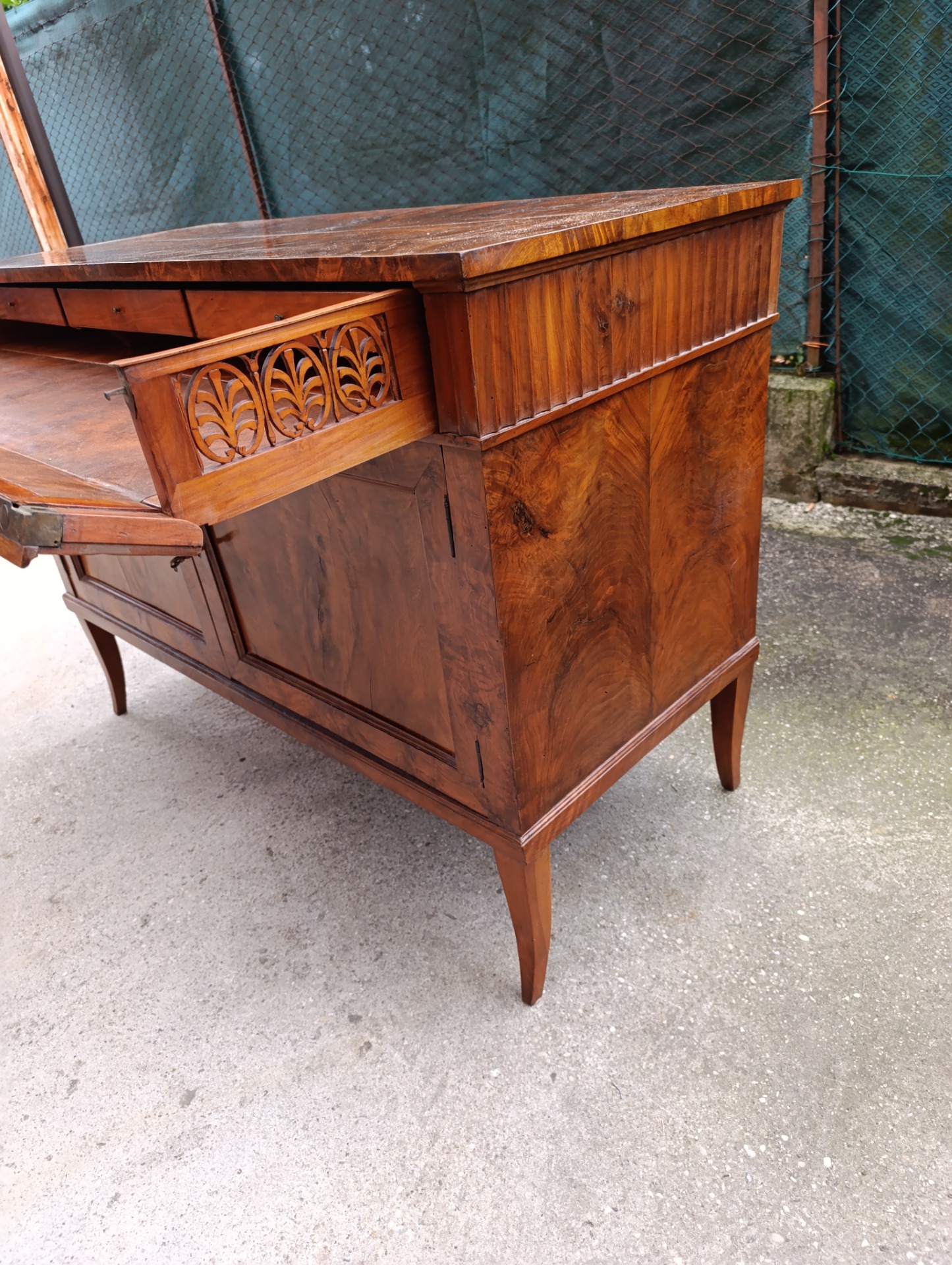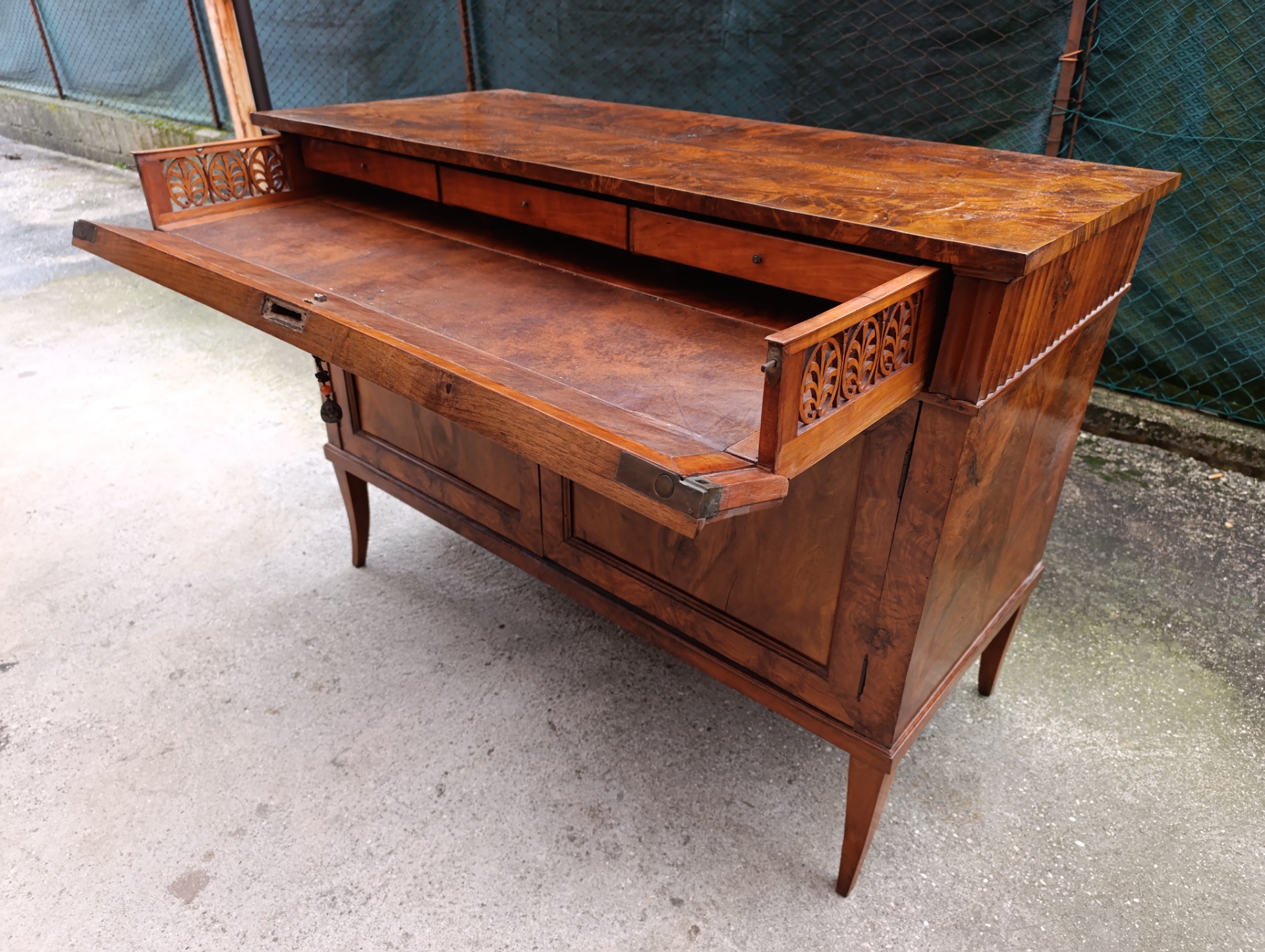 Particolare questa credenza con primo cassetto a scrittoio epoca Luigi XVI in noce.Mis: