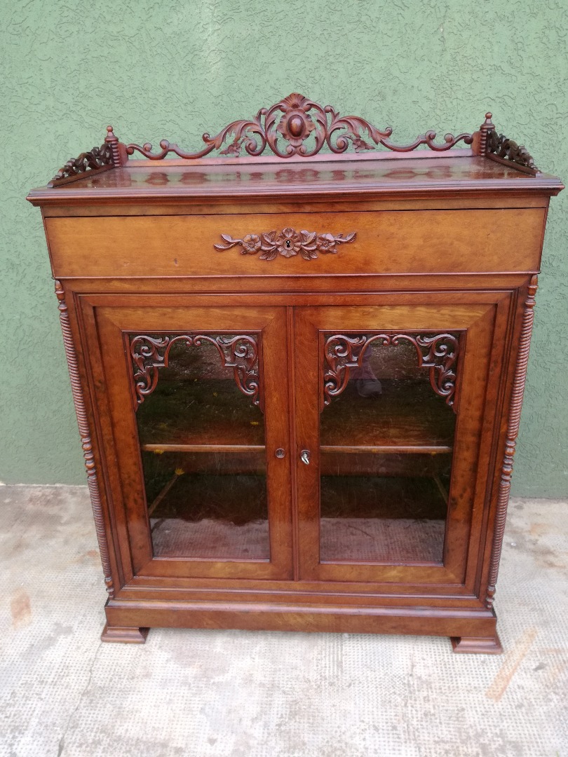 Belle le dimenzioni di questa credenzina in mogano con cassetto e internamente 2 mensole.Mis : L 90 P 42 H 104 Per info 3282493057.