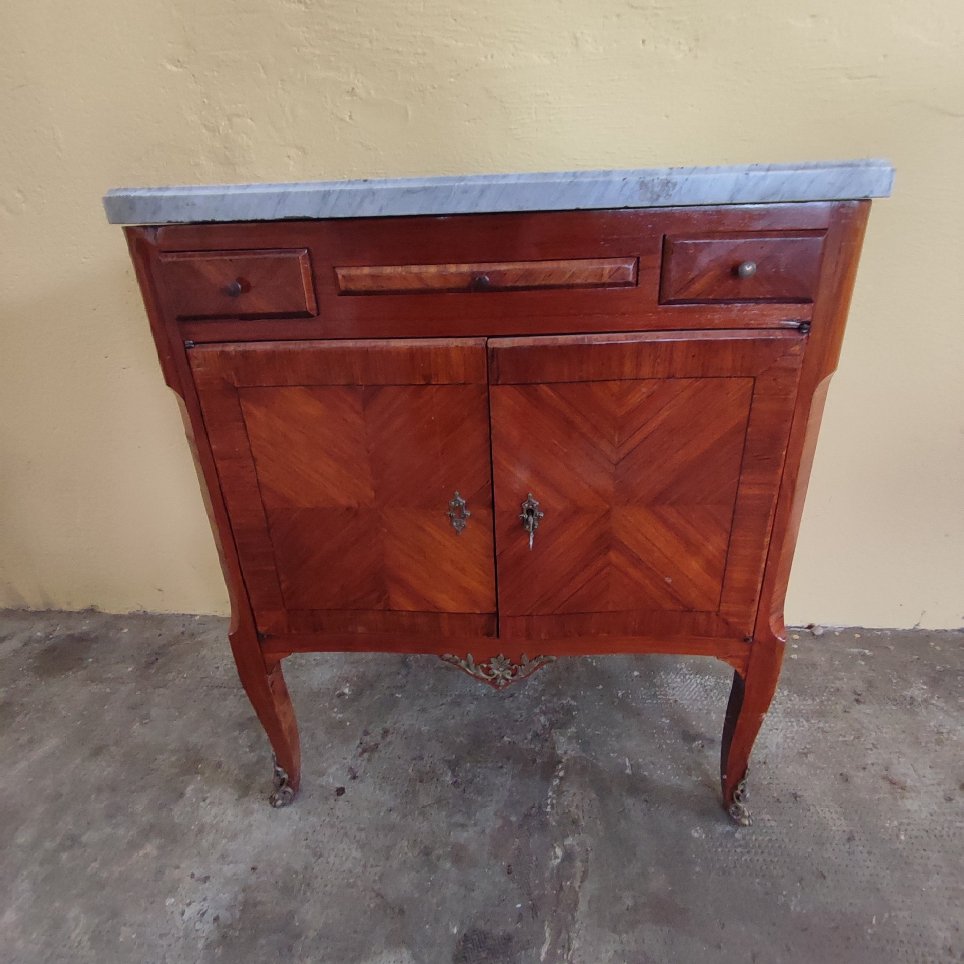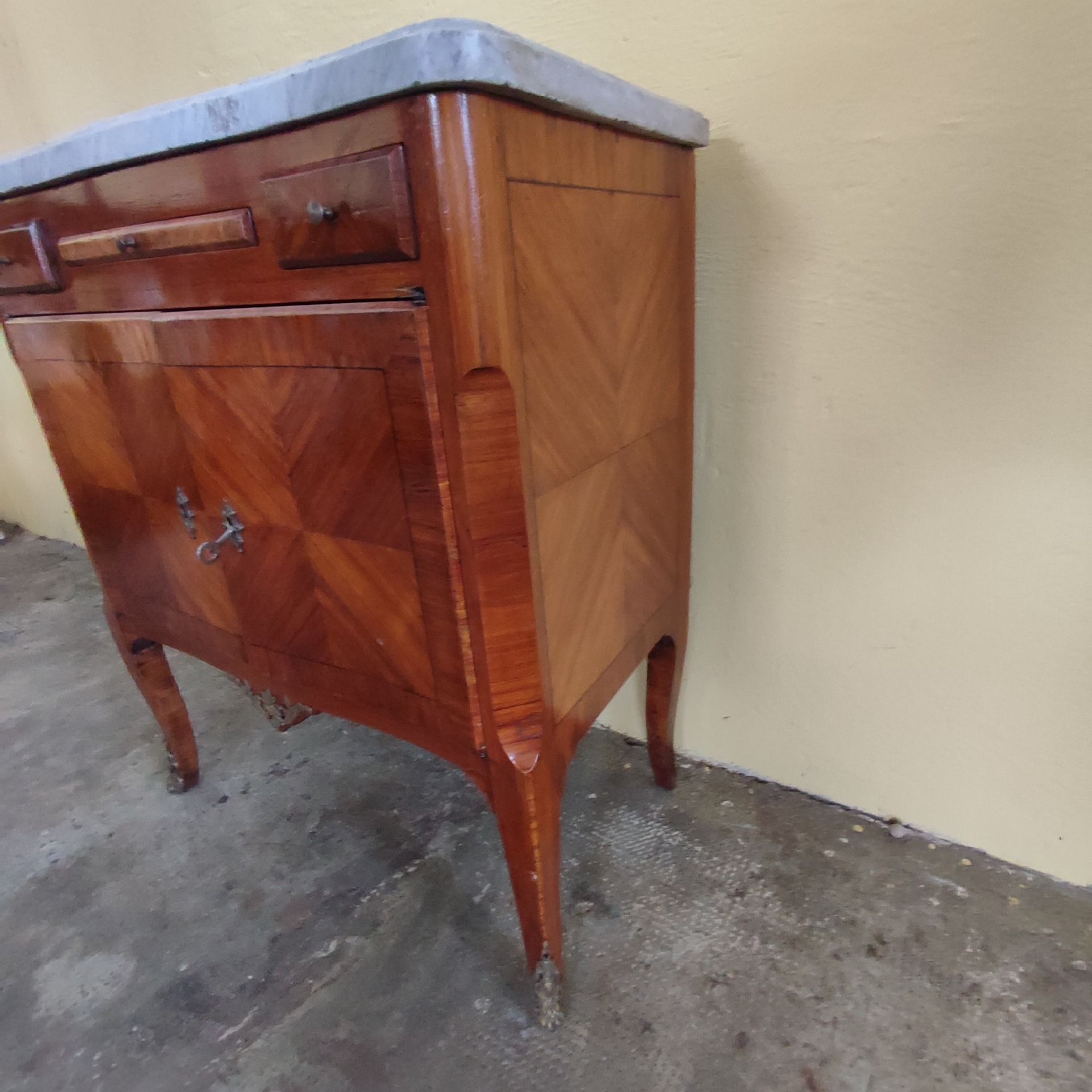 Piccolo credenzino lastronato con tiretto epoca Napoleone III .Mis: L 67 H 78 P 36 Siamo a vostra disposizione per foto o domande