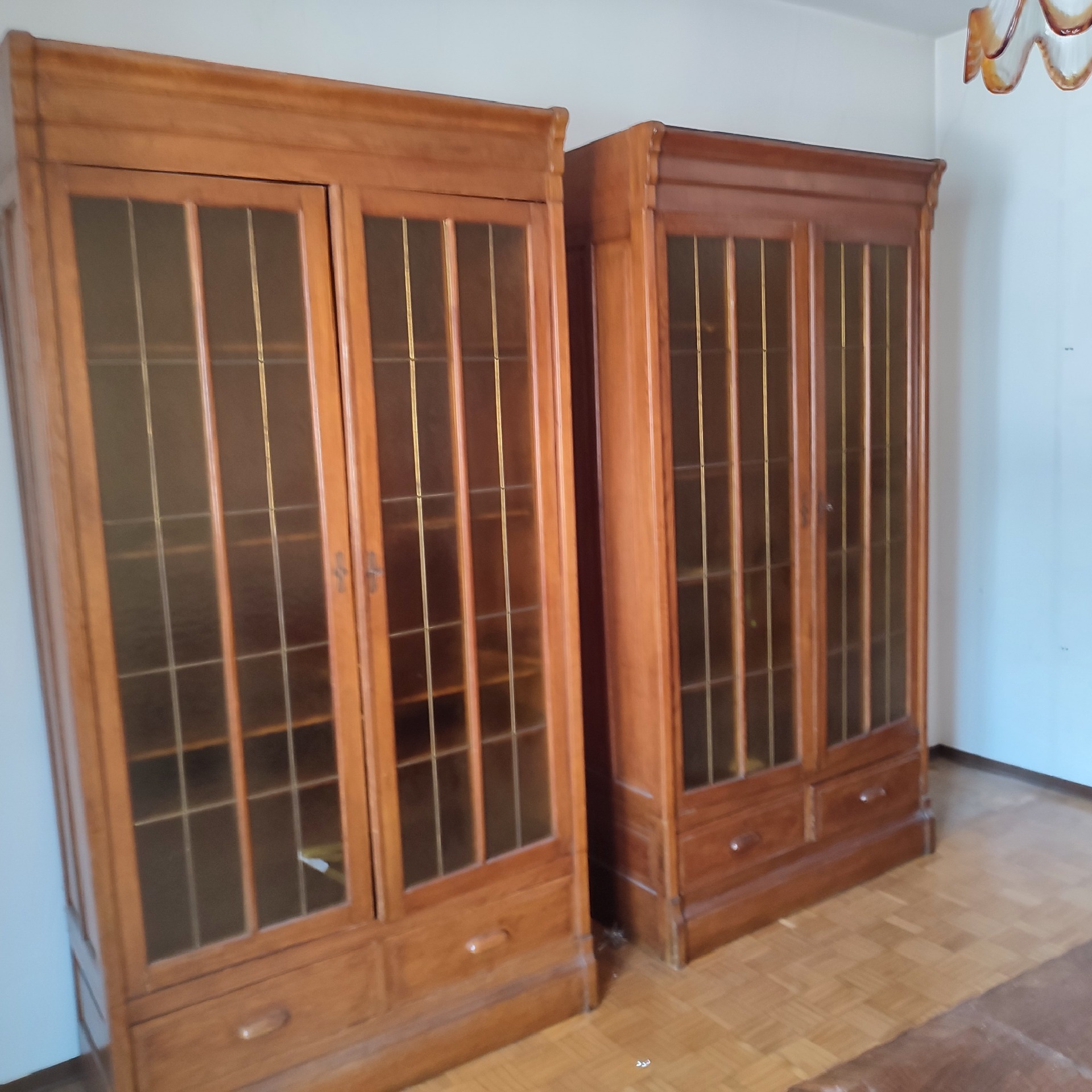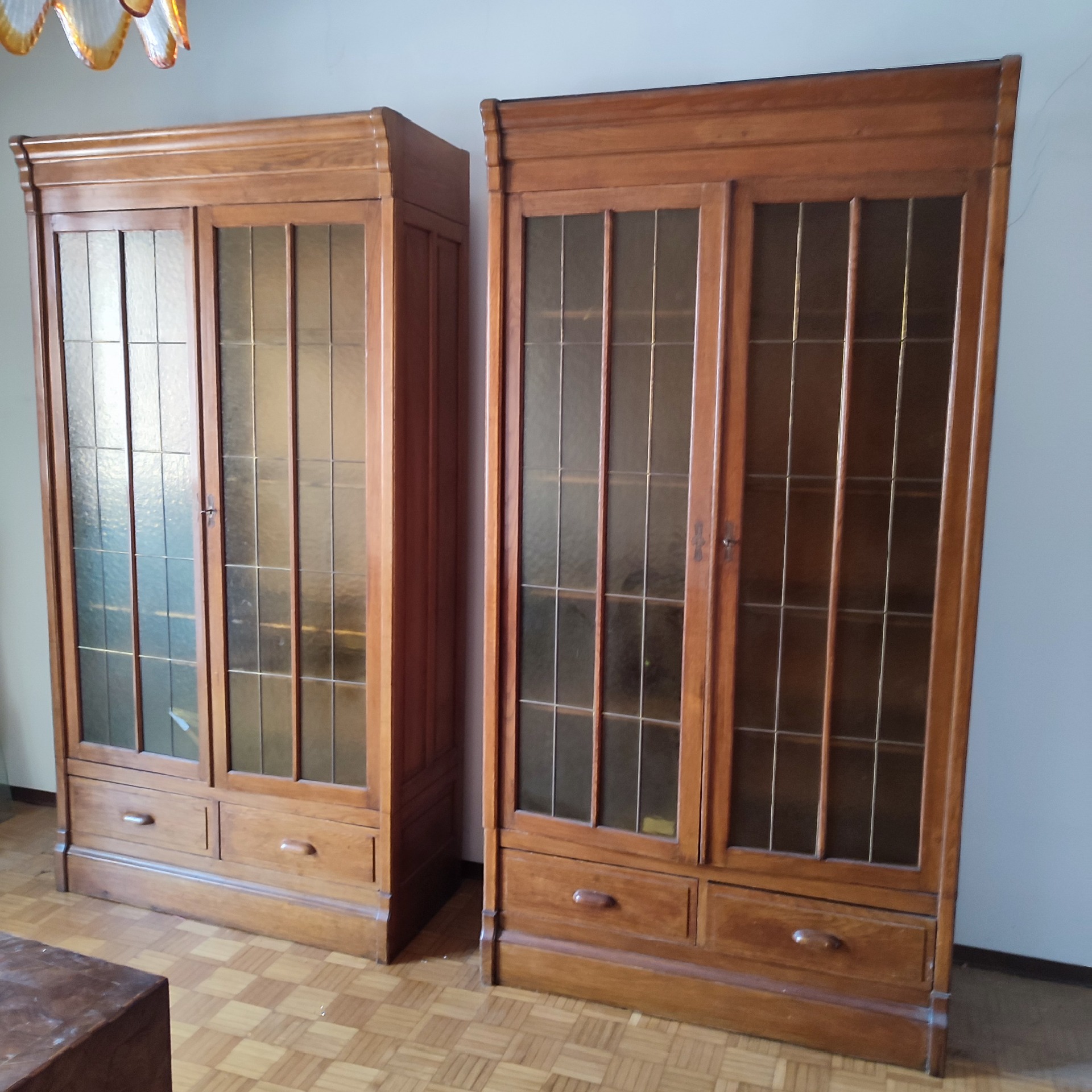 Coppia di librerie anni 30 in rovere .interventi e usure dovuti all'epocaKis : L 115 P 48 H 218 Siamo a vostra disposizione per foto o domande.
