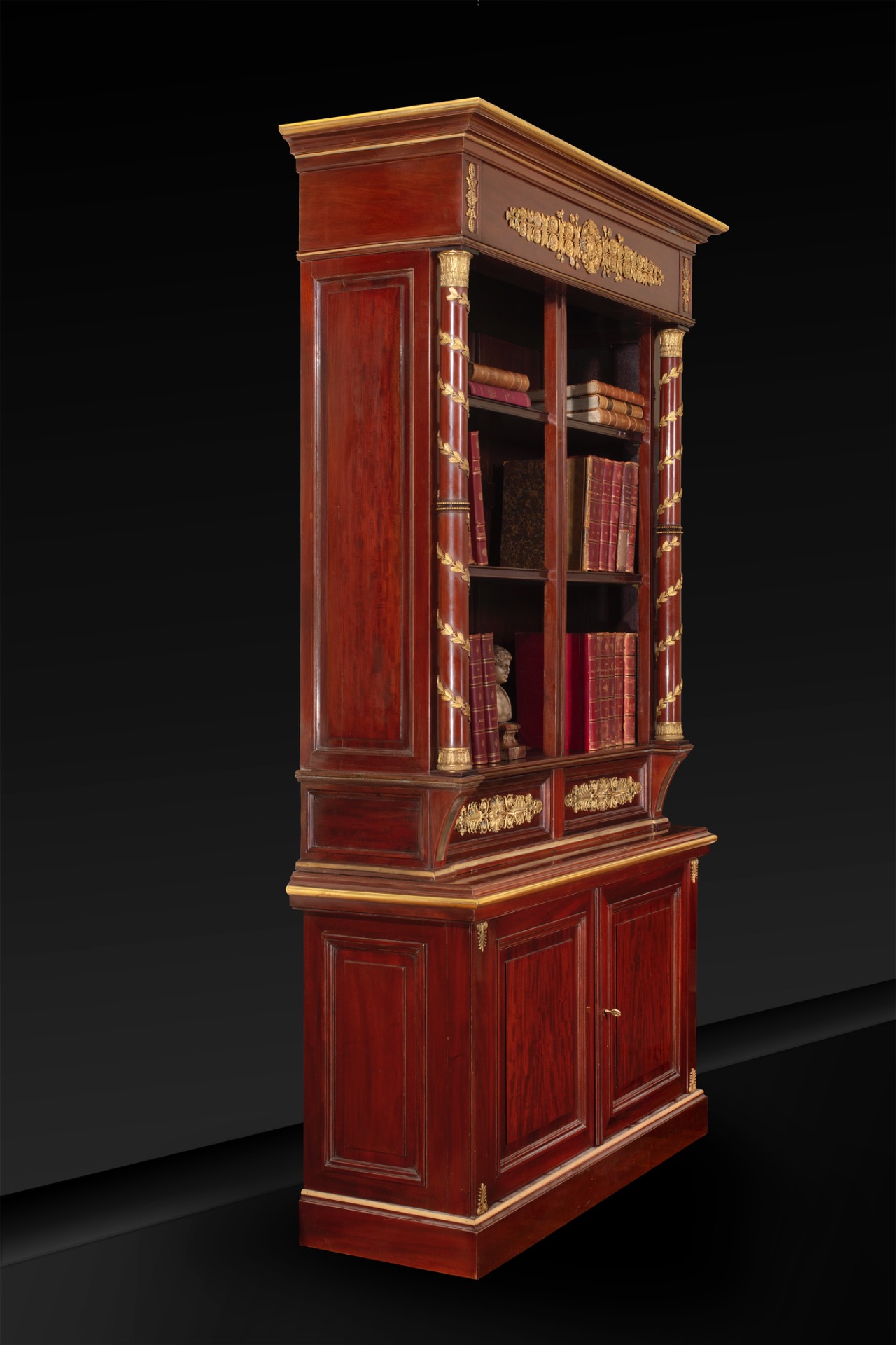Sono un pregiato esempio di librerie in stile Impero con un omaggio alla cultura egizia riscoperta in età napoleonica che tanto aveva affascinato anche gli artisti europei.