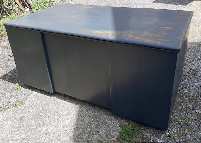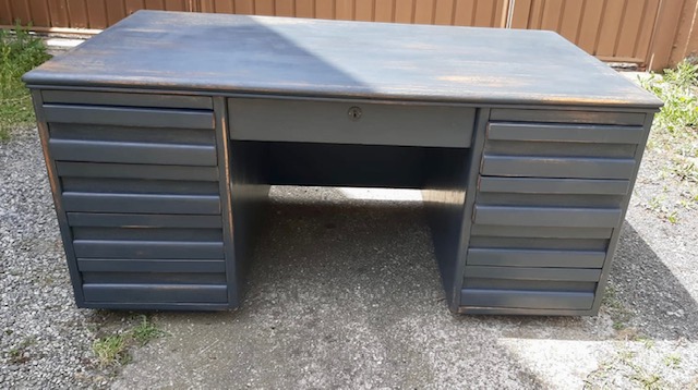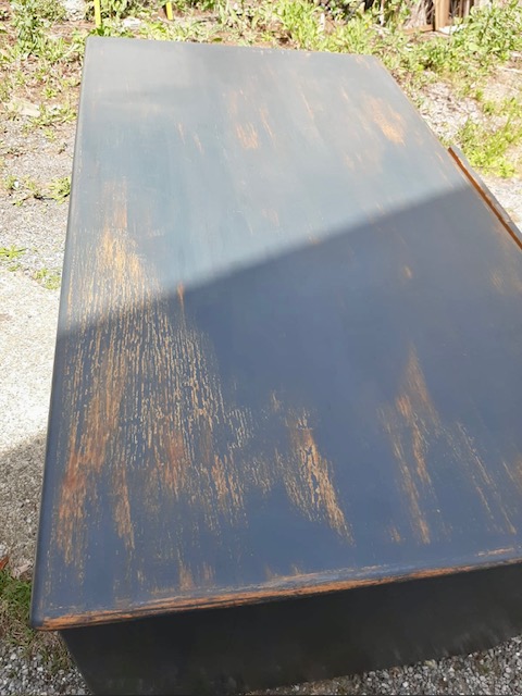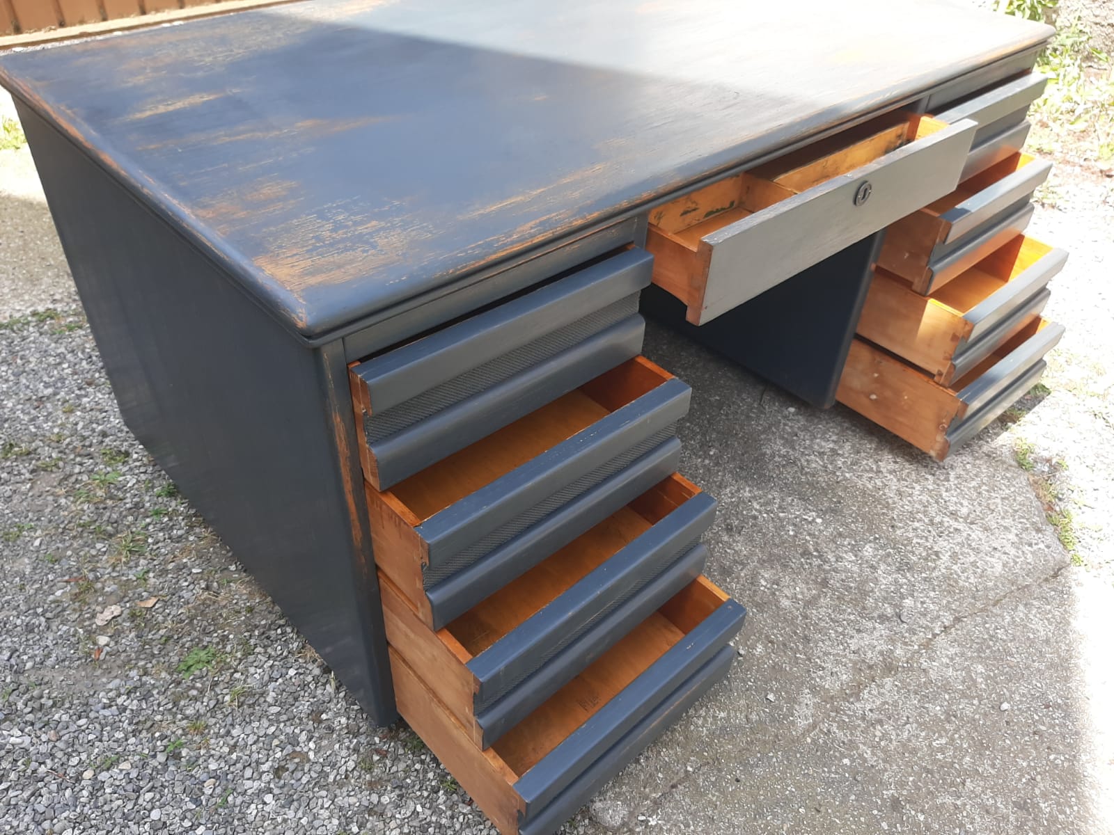 Particolare scrivania probabilmente francese laccata e restaurata.Il mobile è pronto per la consegna. Misure: cm. 90 x 160 x 78 di altezza