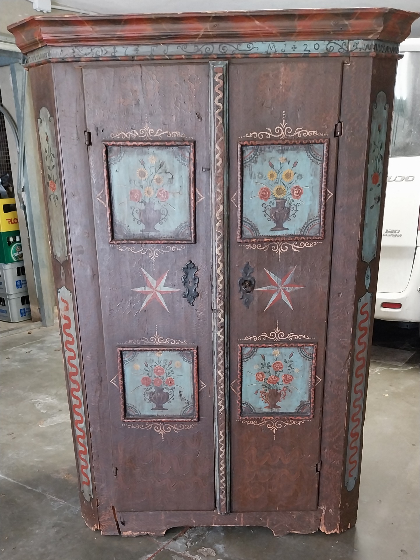 Interessare e fine armadio dipinto originale. Provenienza austria .Sulla parte superiore data originale 1720 . Misura contenuta