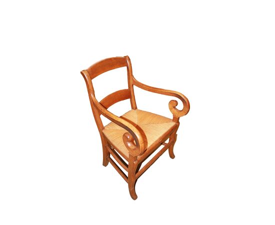 Poltrona francese della seconda metà del 1800 in legno di ciliegio con seduta in paglia di fiume.