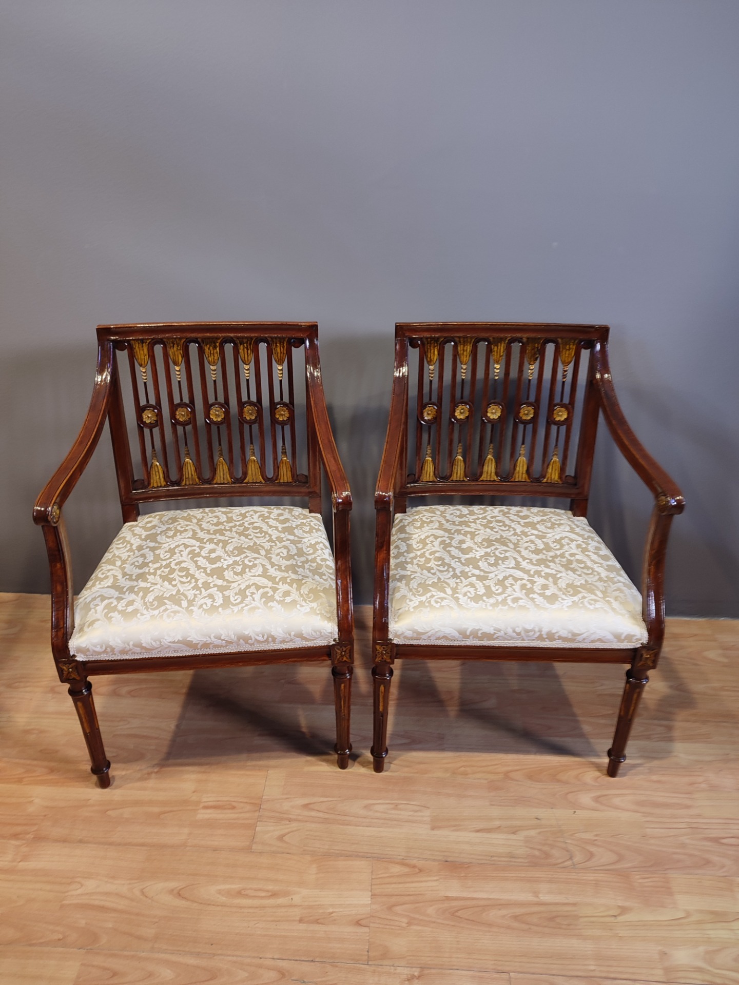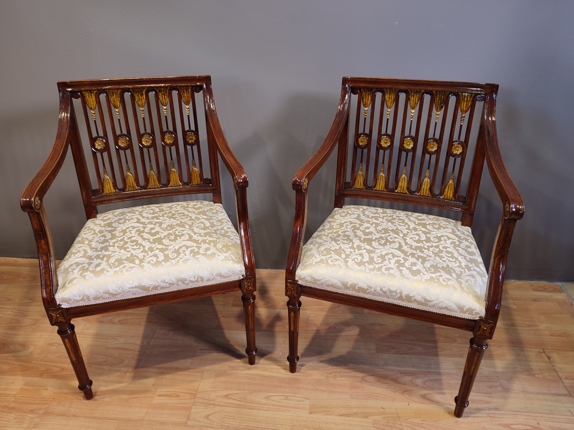 Bella coppia di poltroncine in noce con foglia oro epoca 800.Restaurate.