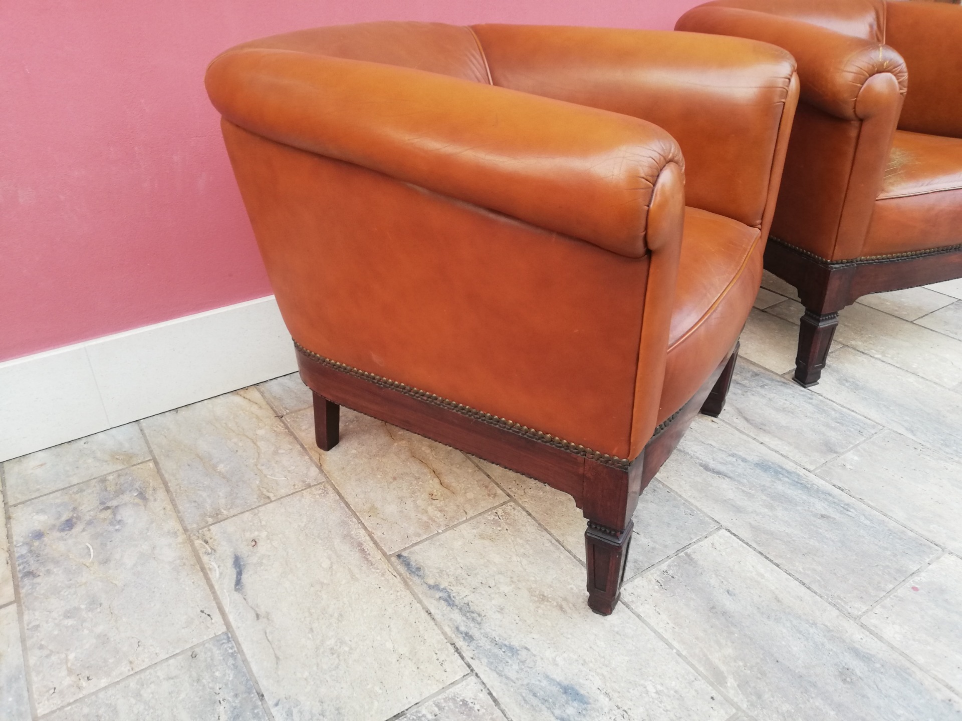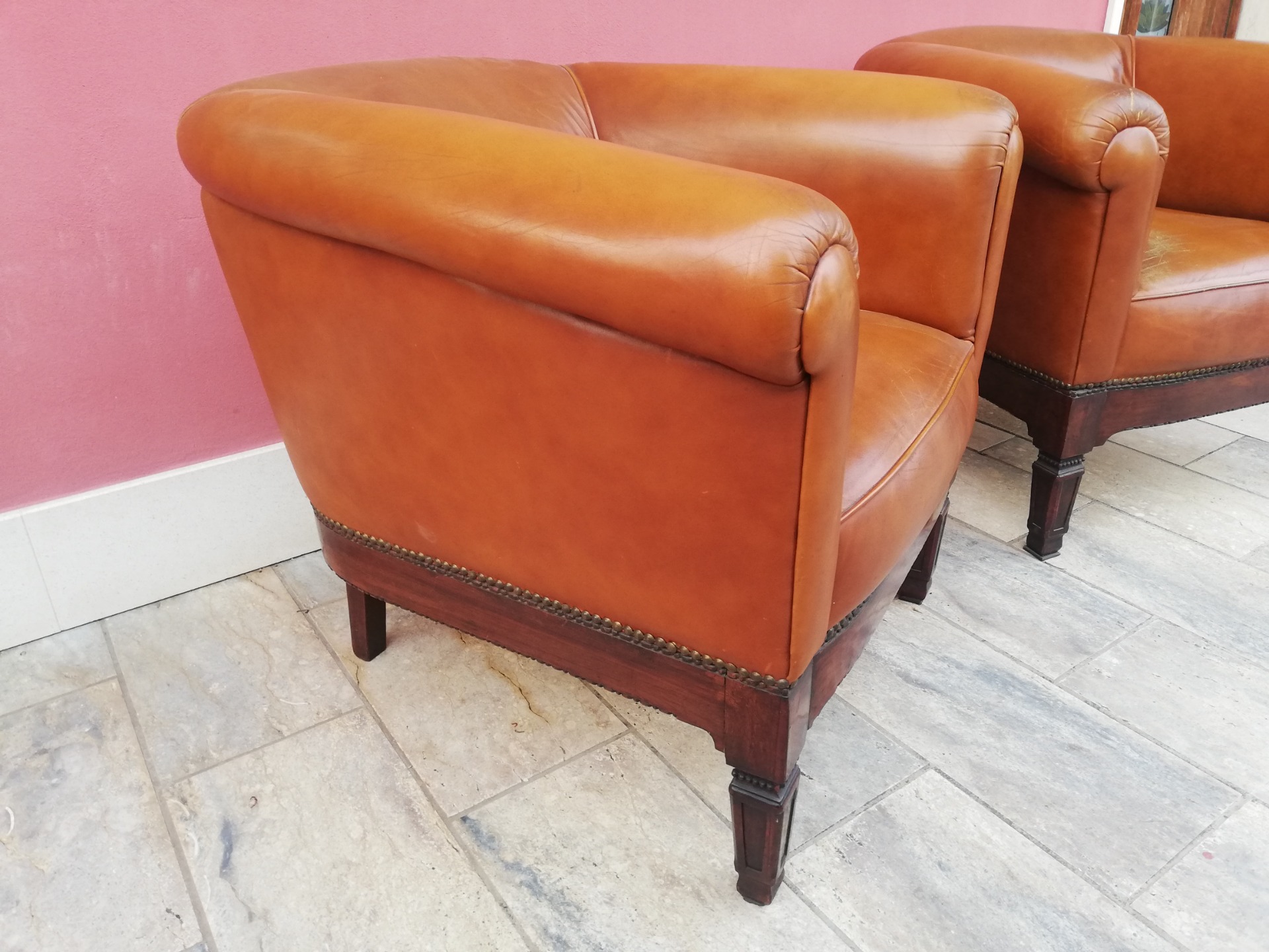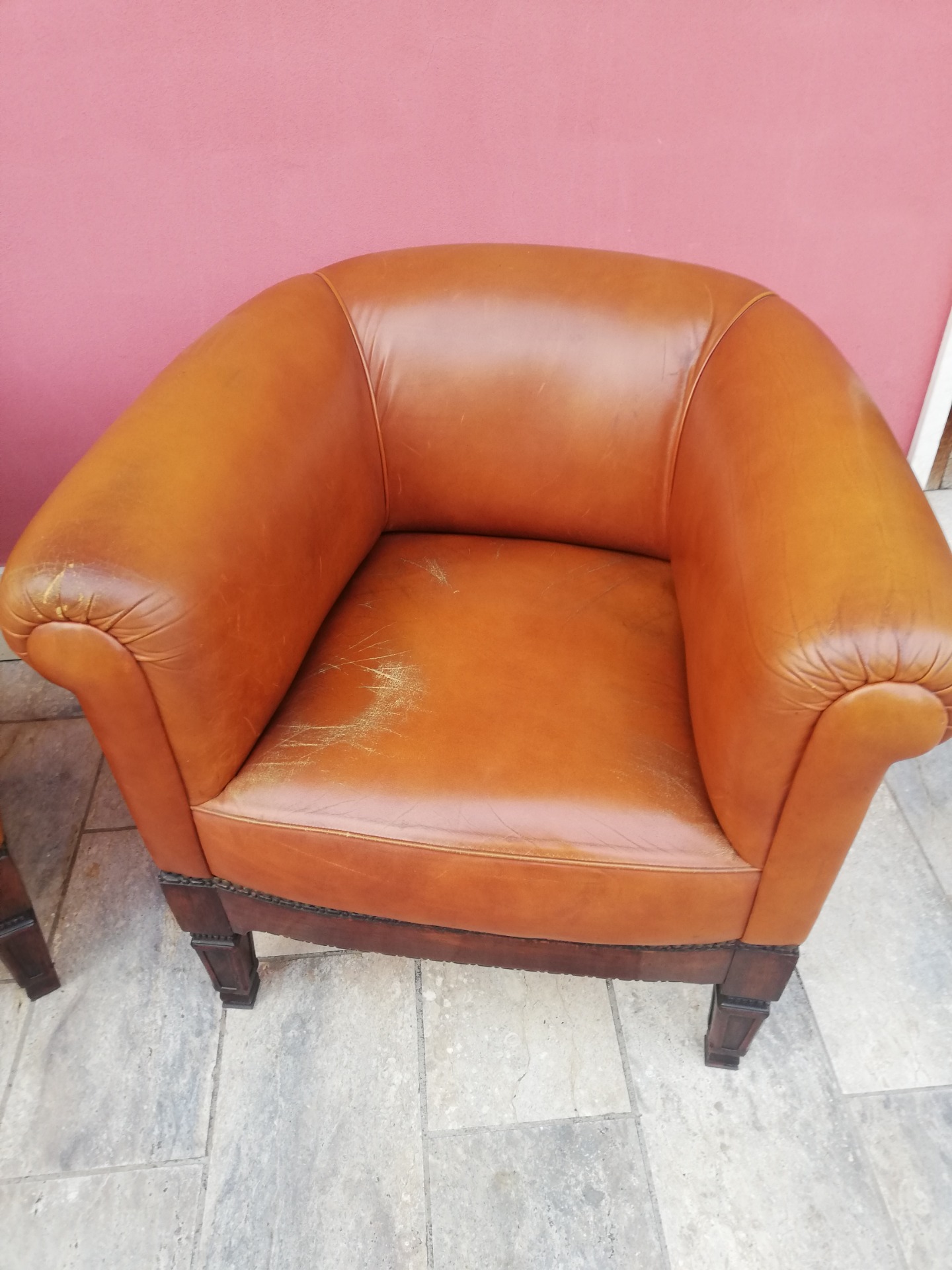 Bellissima questa coppia di poltrone in pelle. Anni 40, minime usure con possibilità di sistemazione pelle nel nostro laboratorio.Siamo a vostra disposizione per foto o domande cell 3282493057.