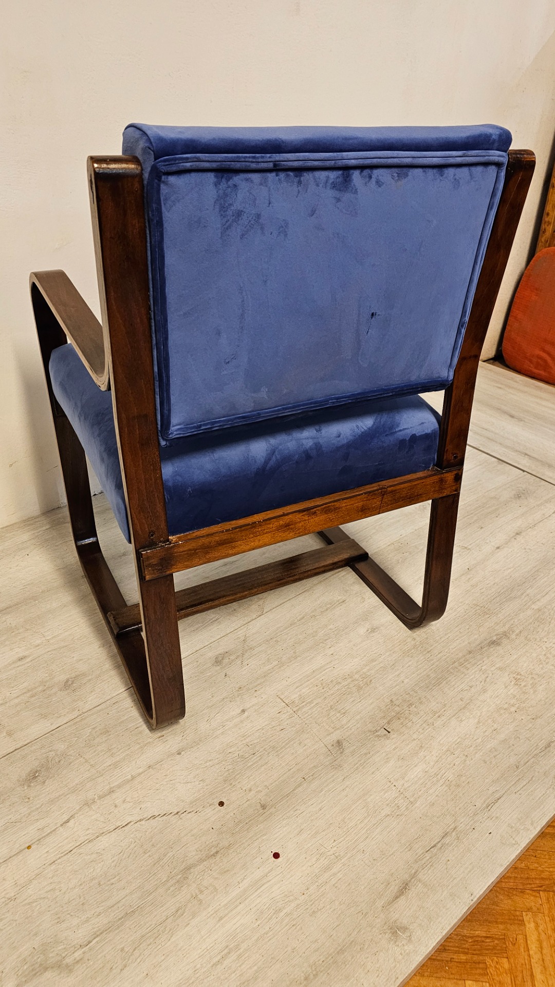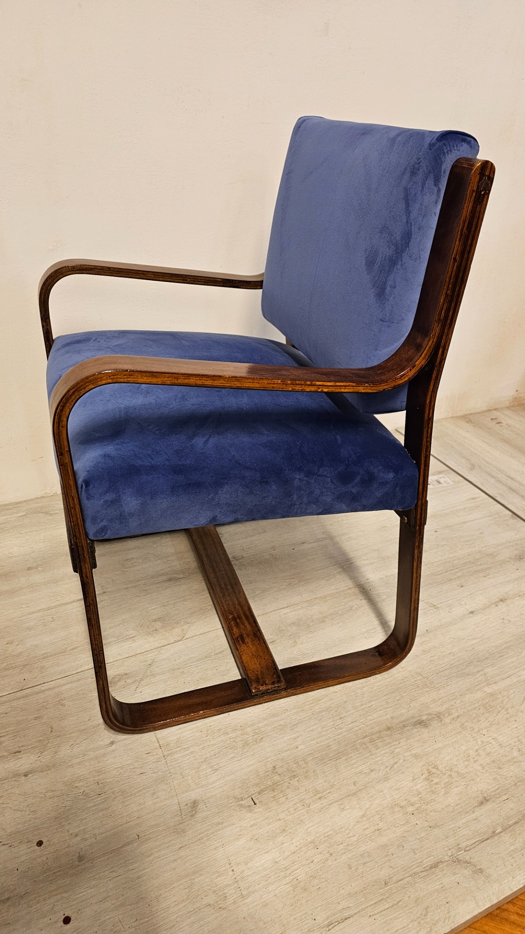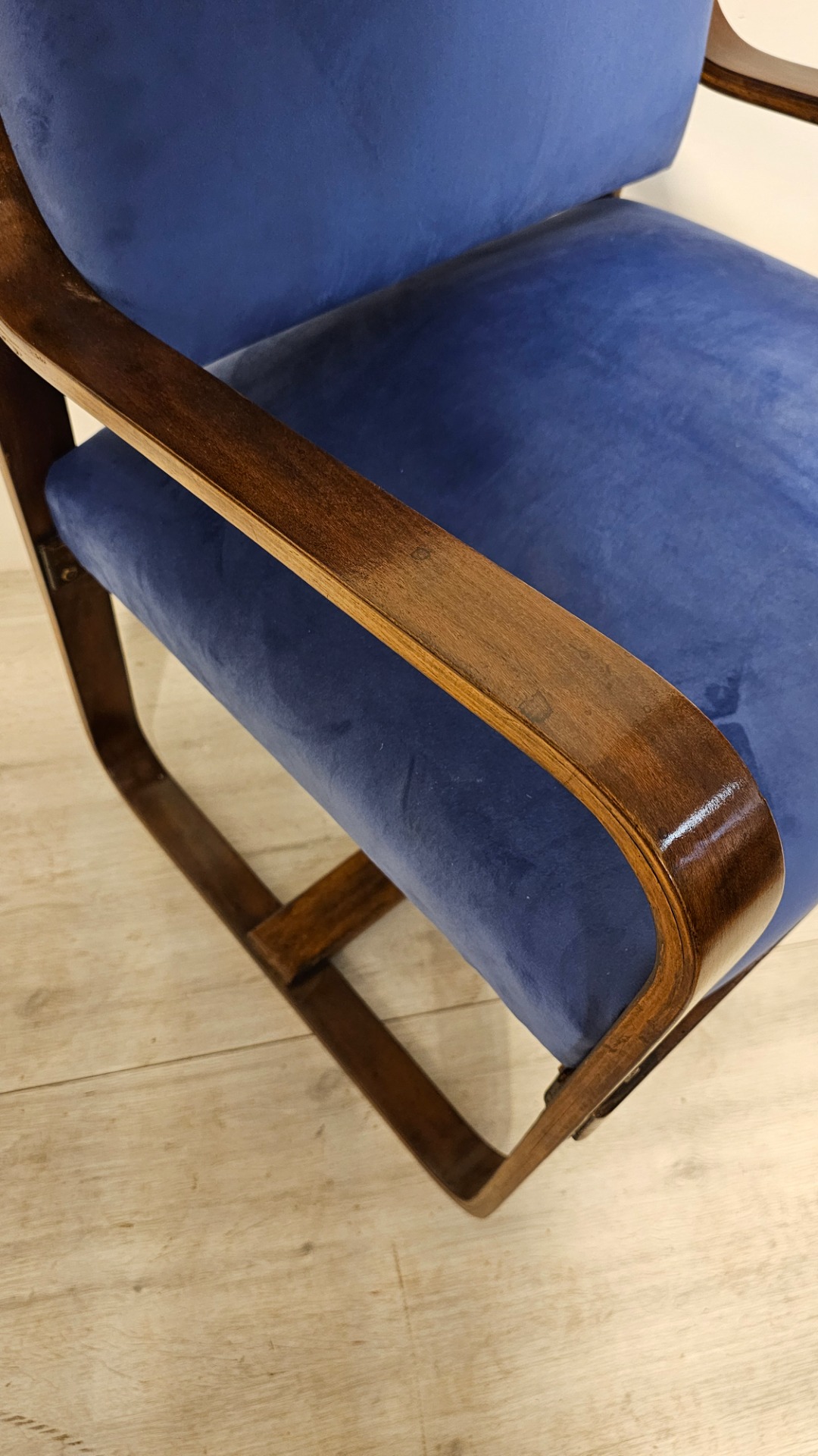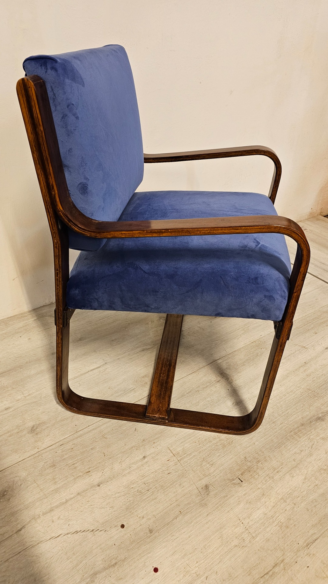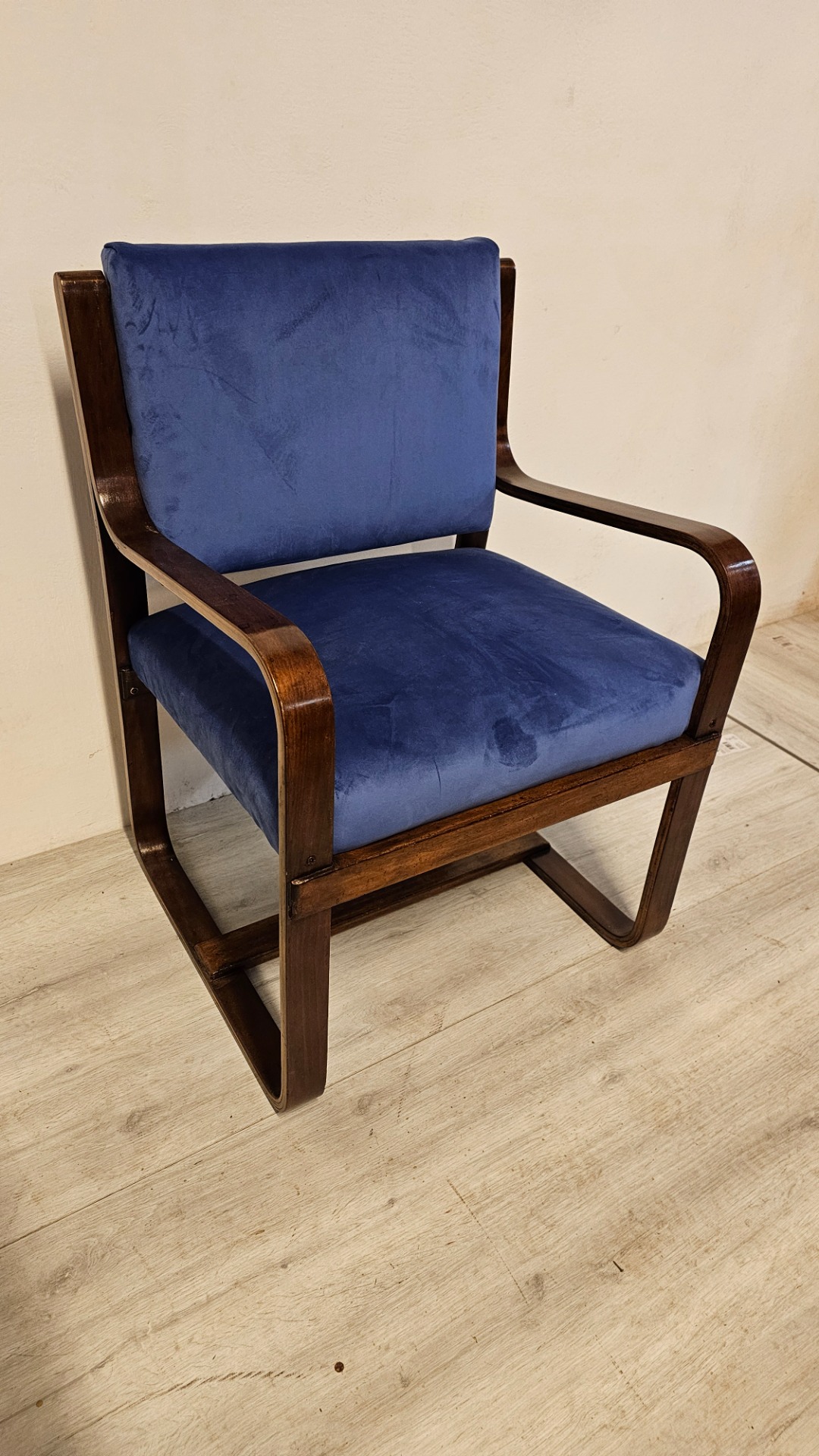 Bella poltrona di Giuseppe Pagano. Art q 1920. Con tessuto blu Madonna in velluto. Misura cinquantacinque per sessanta