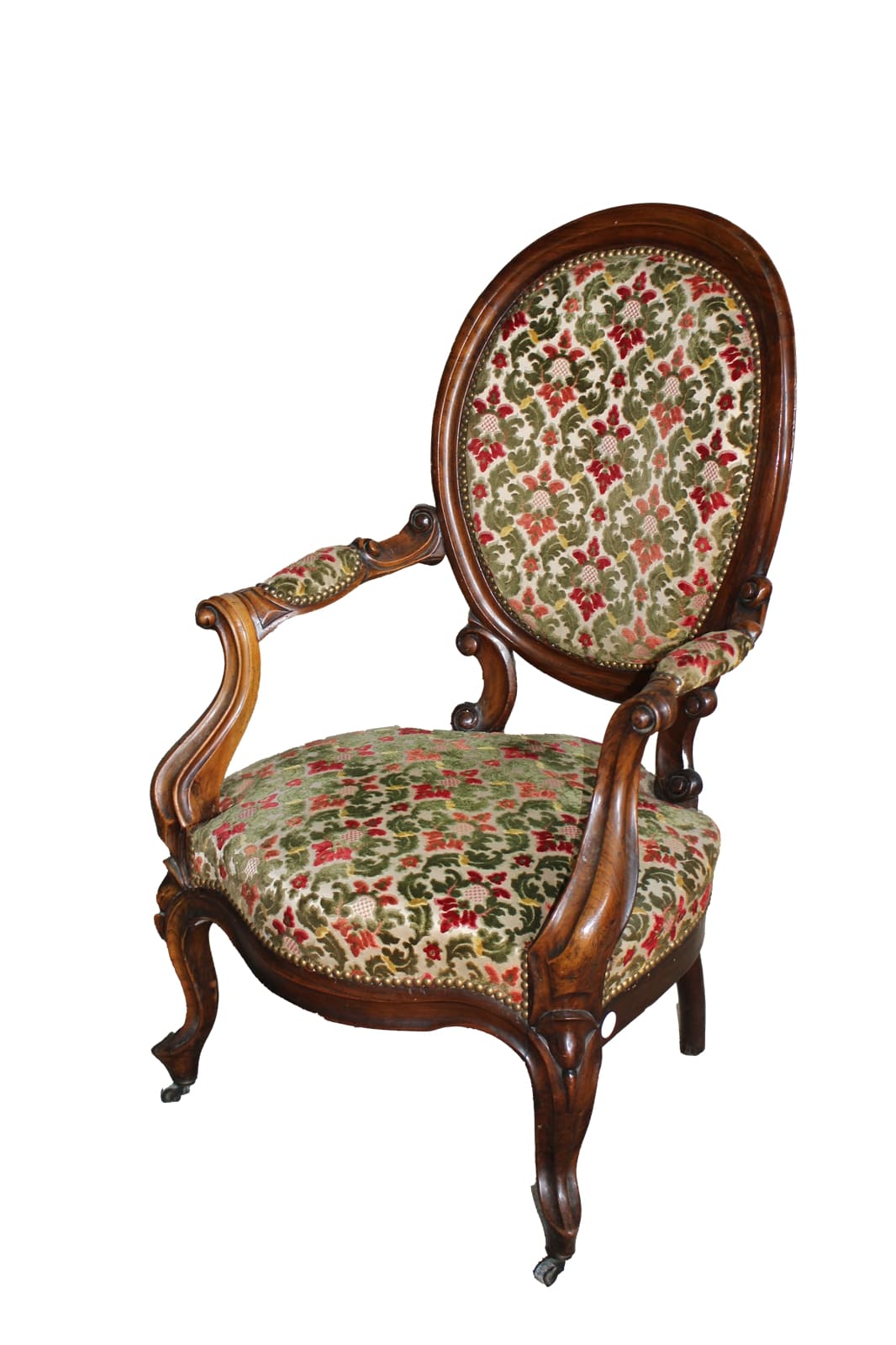 Poltrona a medaglione stile Luigi Filippo in noce - XIX secolo