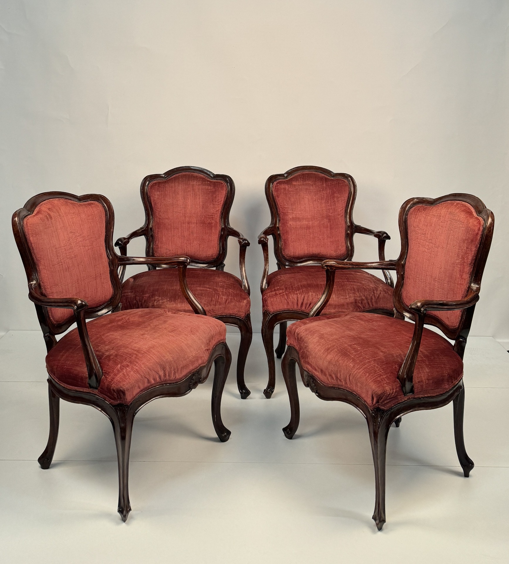 Quattro poltroncine in noce, Venezia, metà del XVIII secolo,"