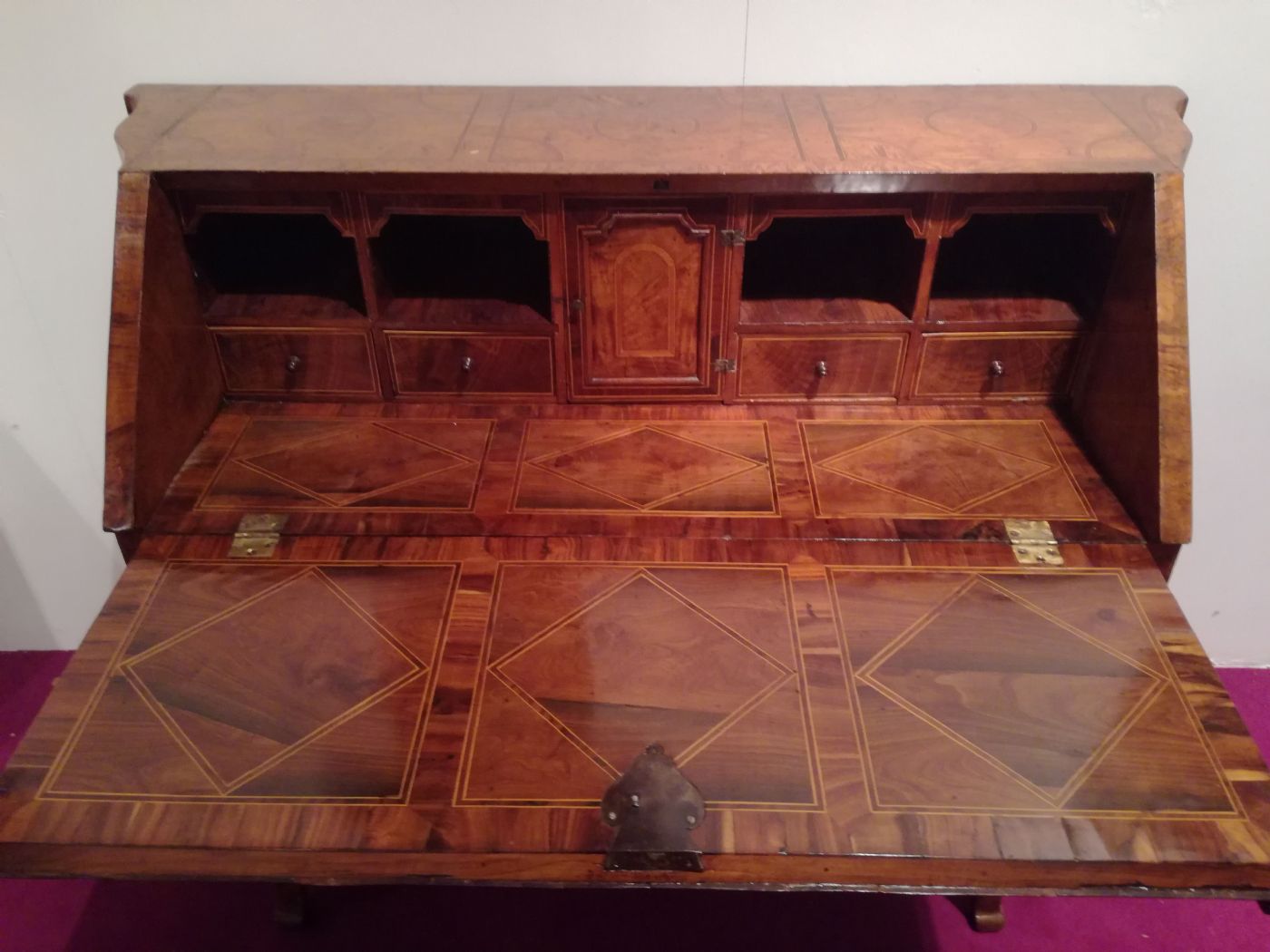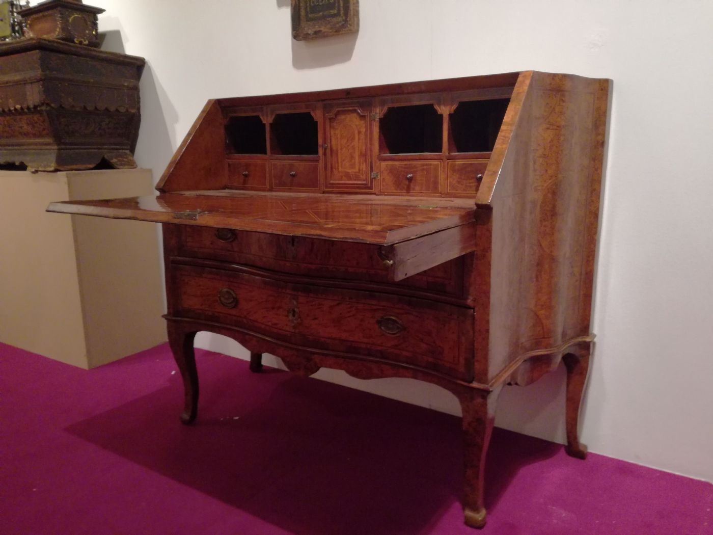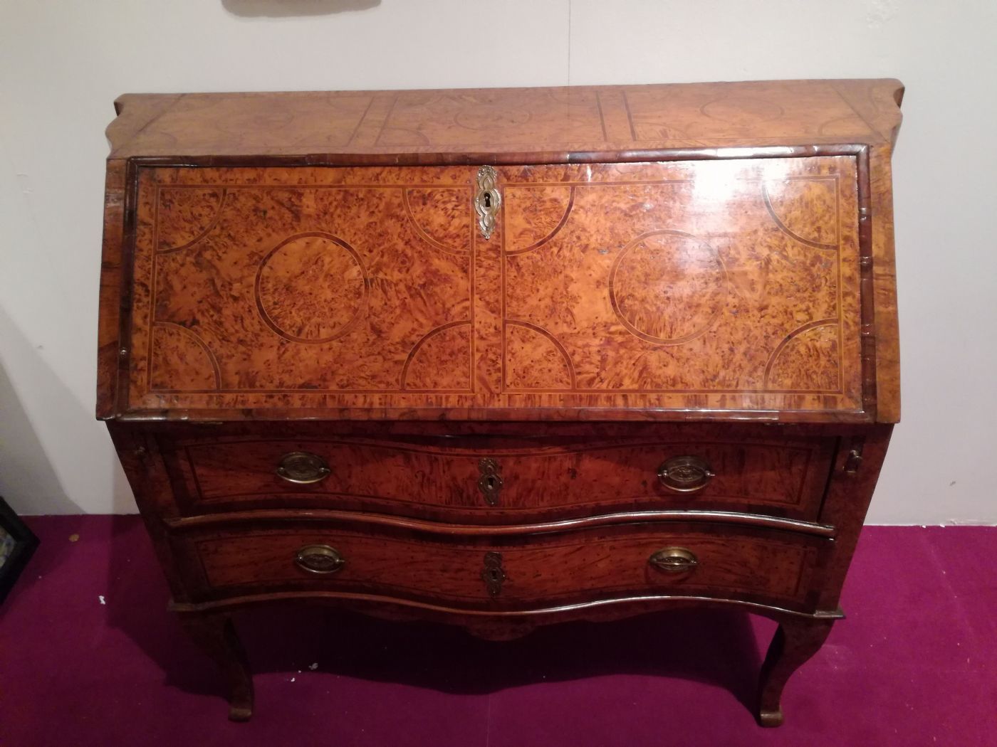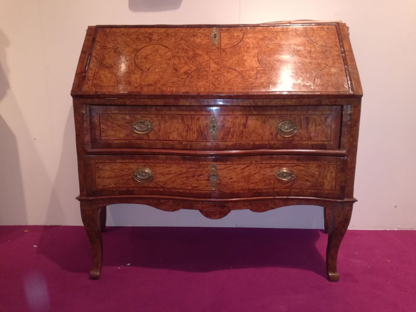Rara ribalta ligure mossa davanti e nei fianchi, lastronata in radica di tuia. Ottimo stato di conservazione.Misure: altezza 103 cm. Larghezza 129 cm. Profondità 56 cm
