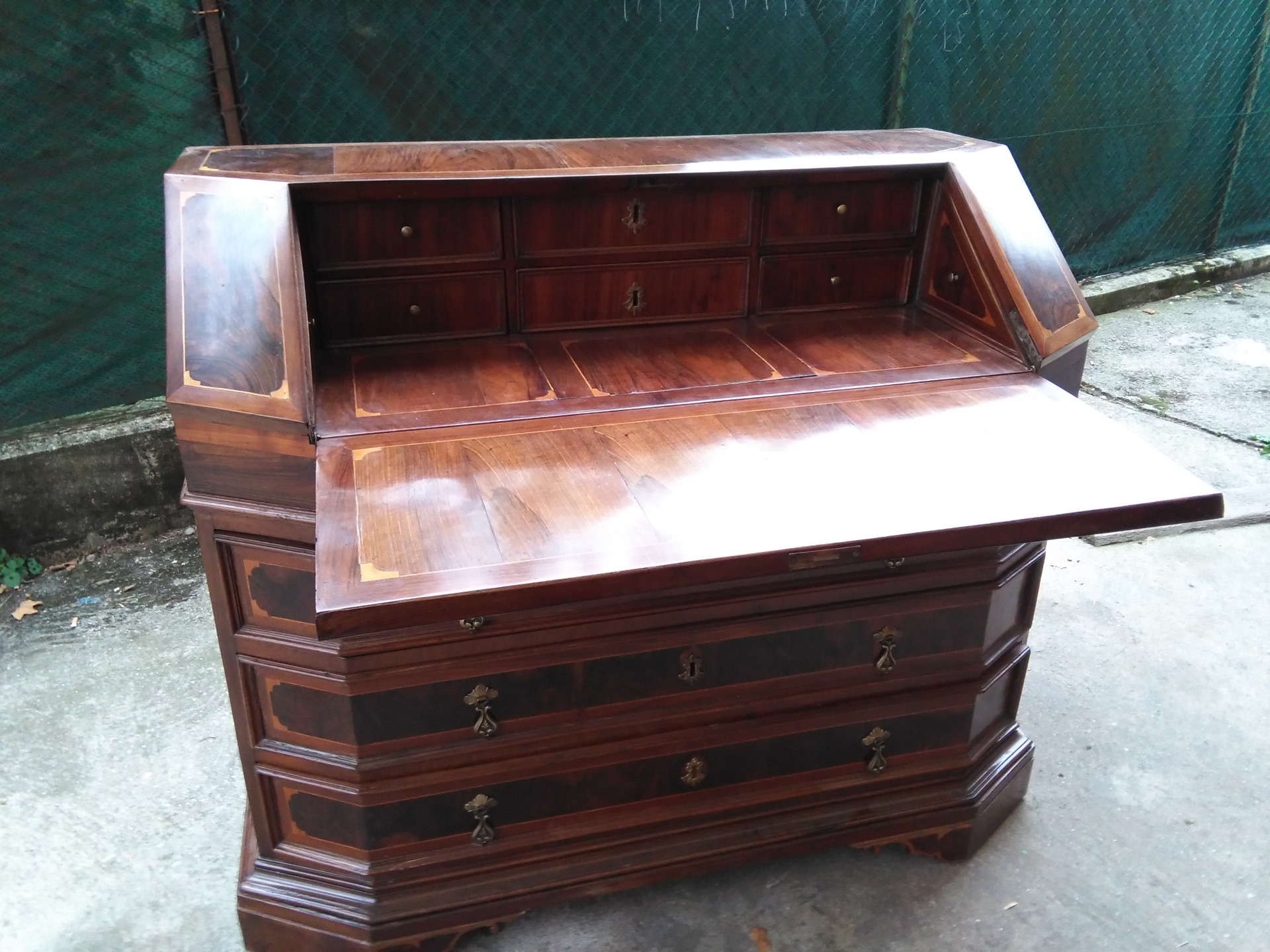 Bellissima Ribalta epoca Luigi XV l'astronata in noce e filettata in acero. Molti i segreti Mis : L 127 P 68 H 108 Per info 3282493057
