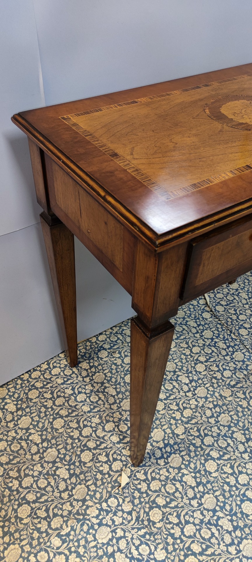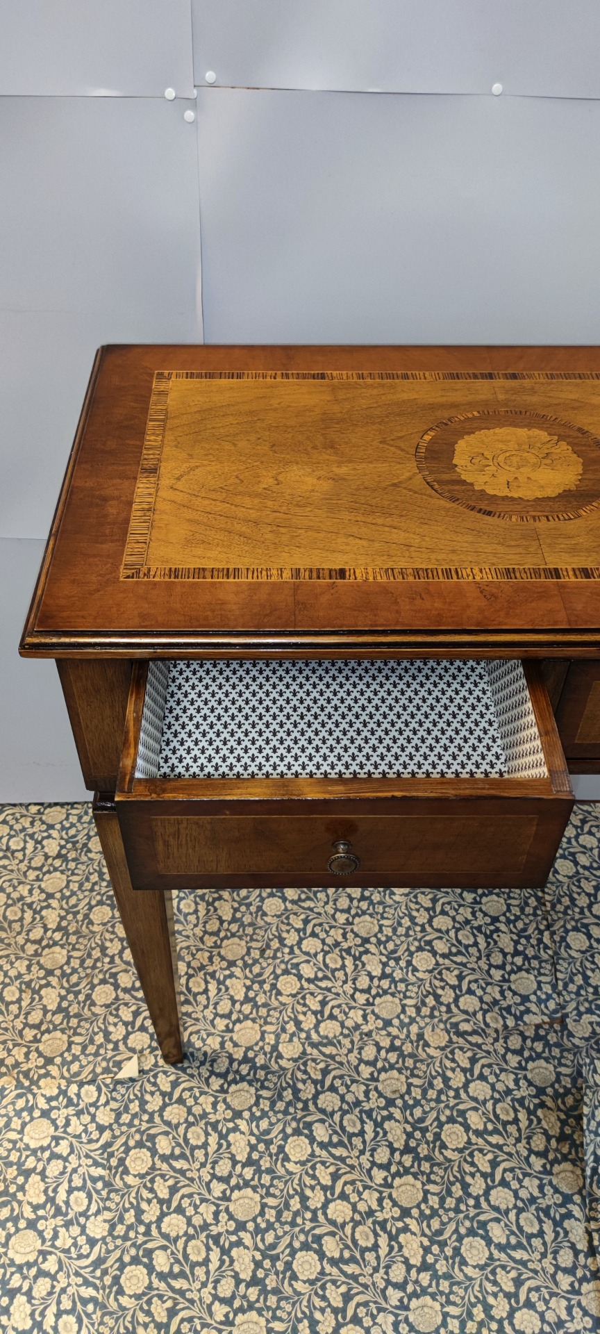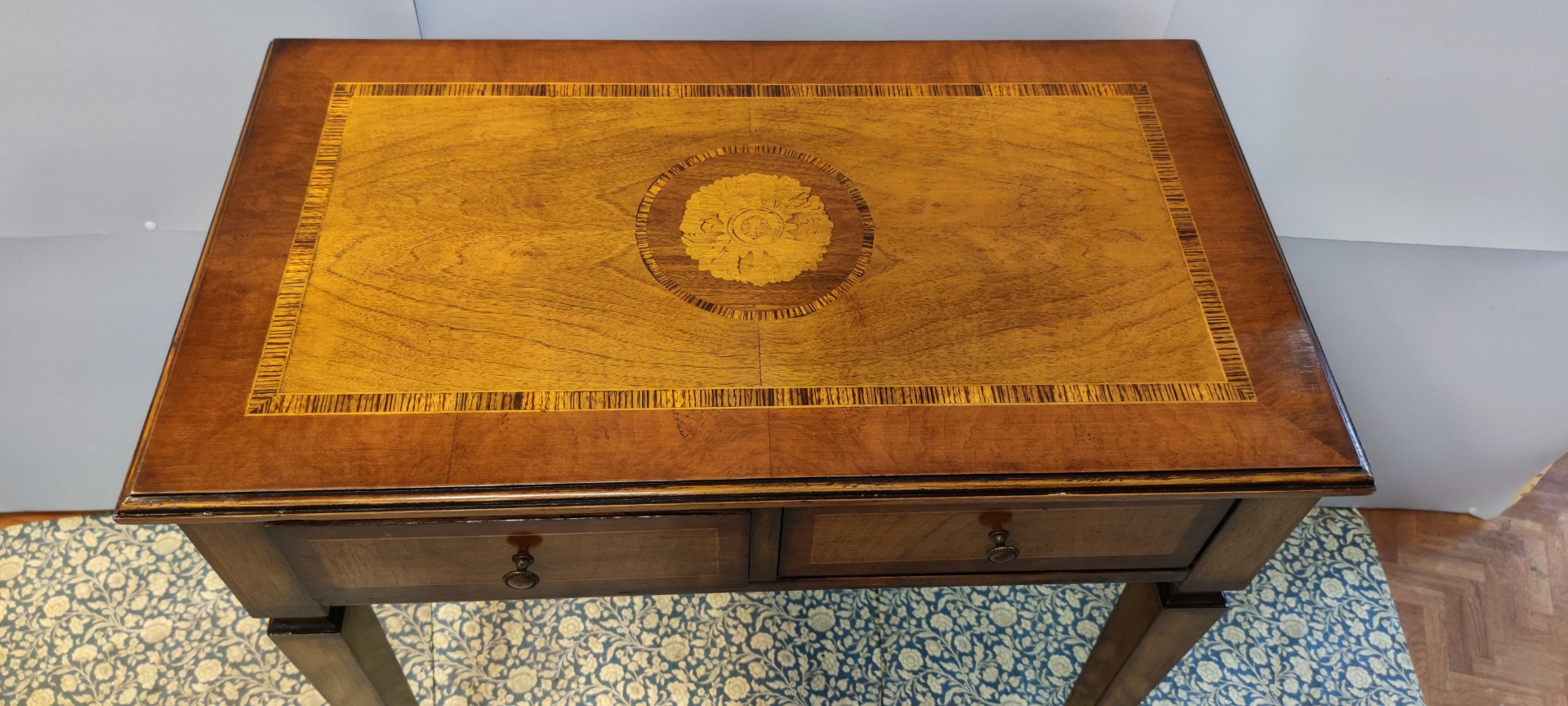 Bella scrivania direttorio in noce con 2 cassetti. Pieve a piramide rovesciate. Misura 80 × 40 altezza o 78. Epoca premi Novecento