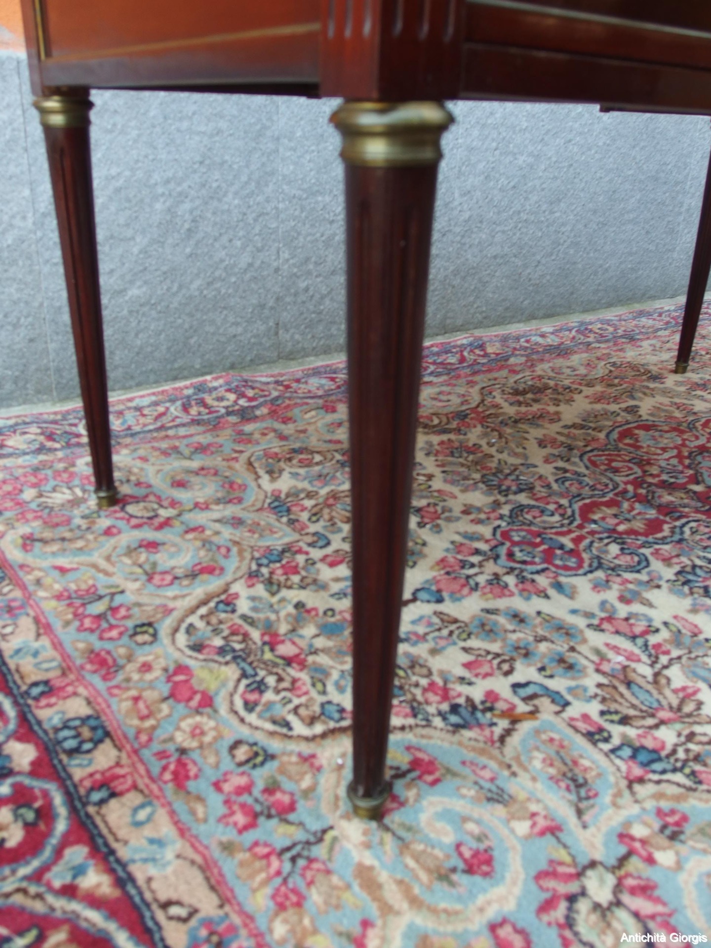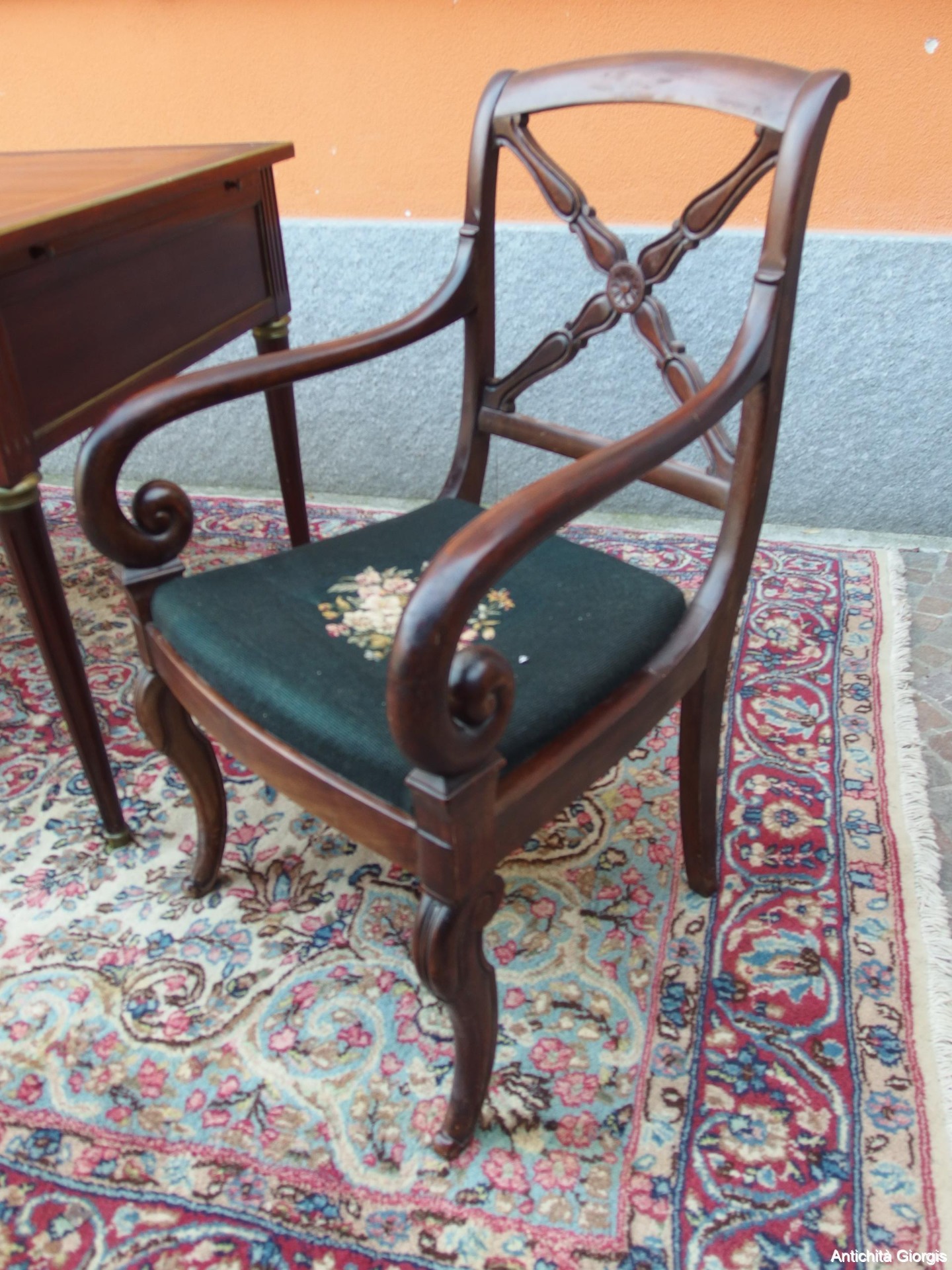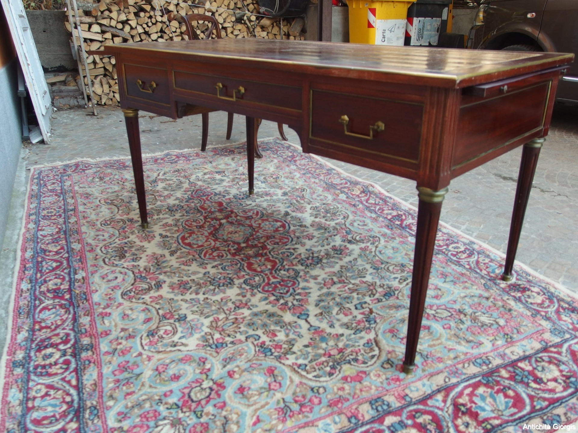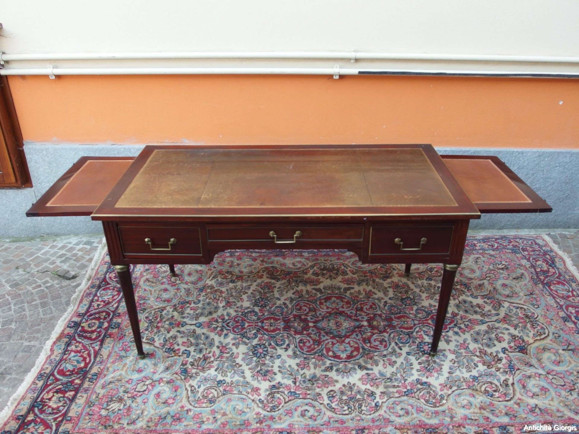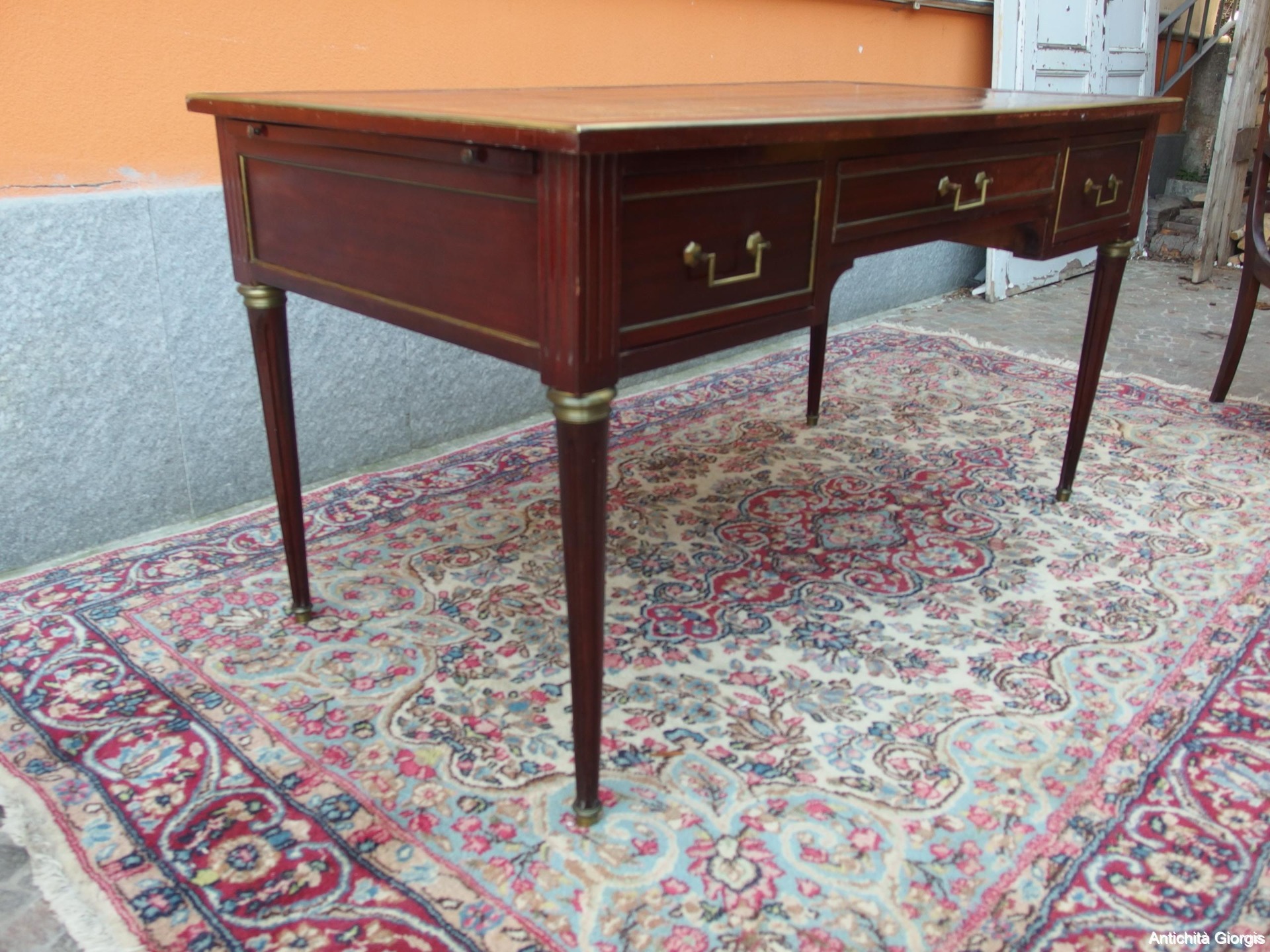 Bellissima scrivania da centro i mogano stile Napoleone III con ottoni epoca seconda metà 800 di origina francese, poltrona singola da scrivania stile Impero in mogano fine 800 francese.