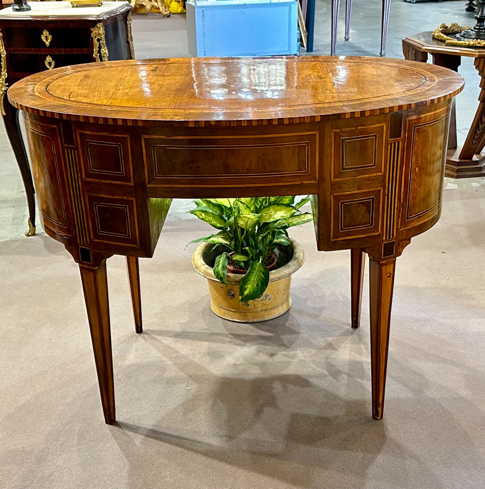 Scrittoio ovale lastronato in noce e bois de rose - Italia, epoca Luigi XVI.