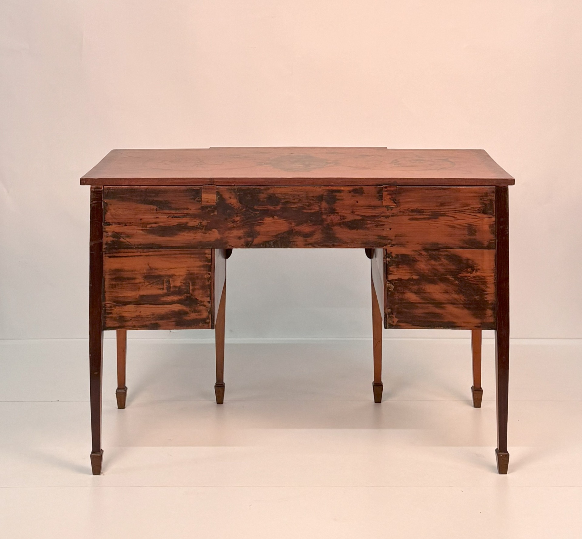 Scrivania in satinwood dipinto in policromia, Inghilterra, XIX secolo