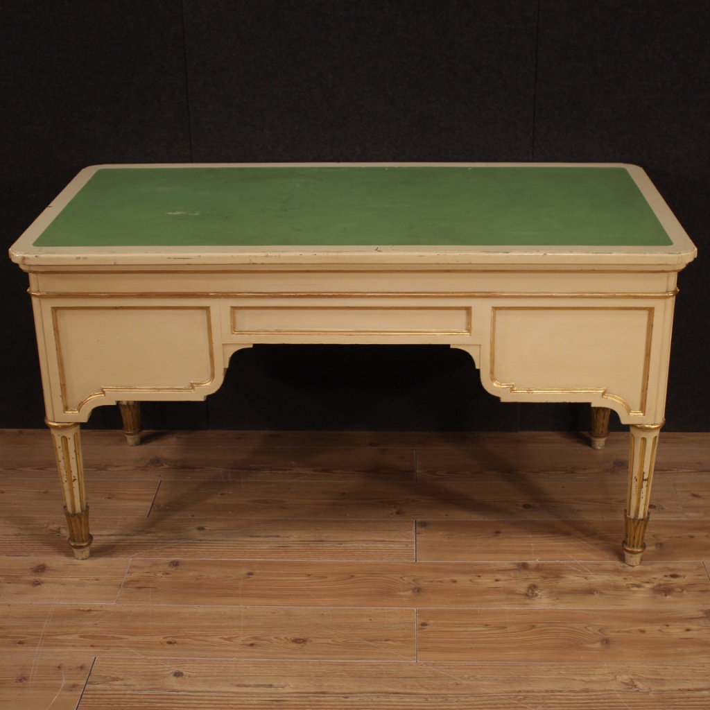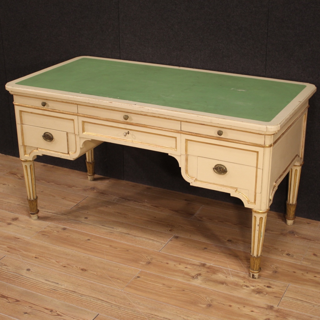 Scrivania italiana in legno laccato e dorato del XX secolo