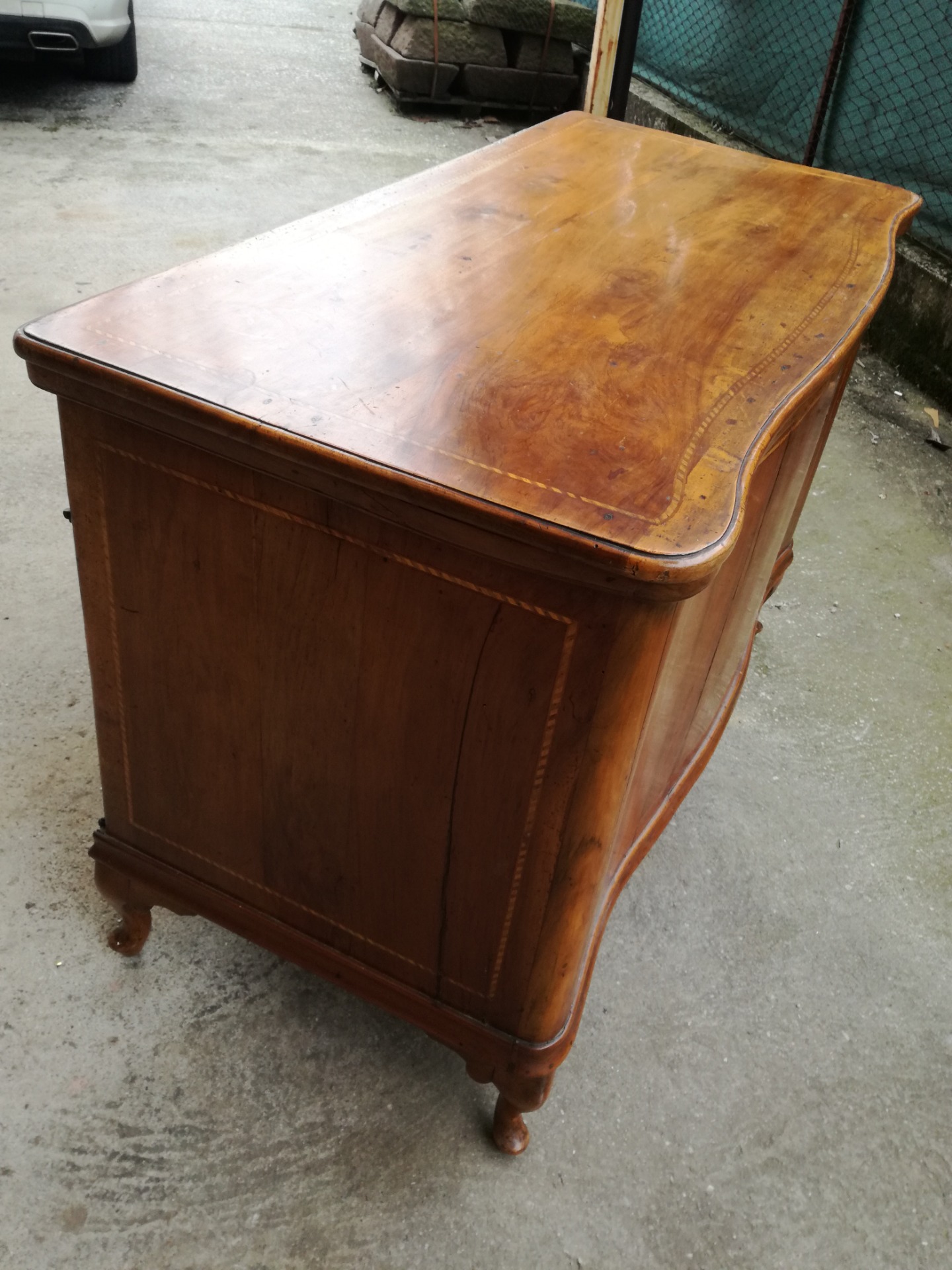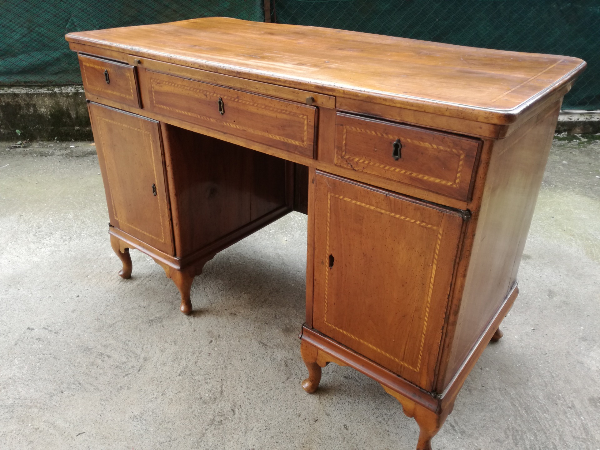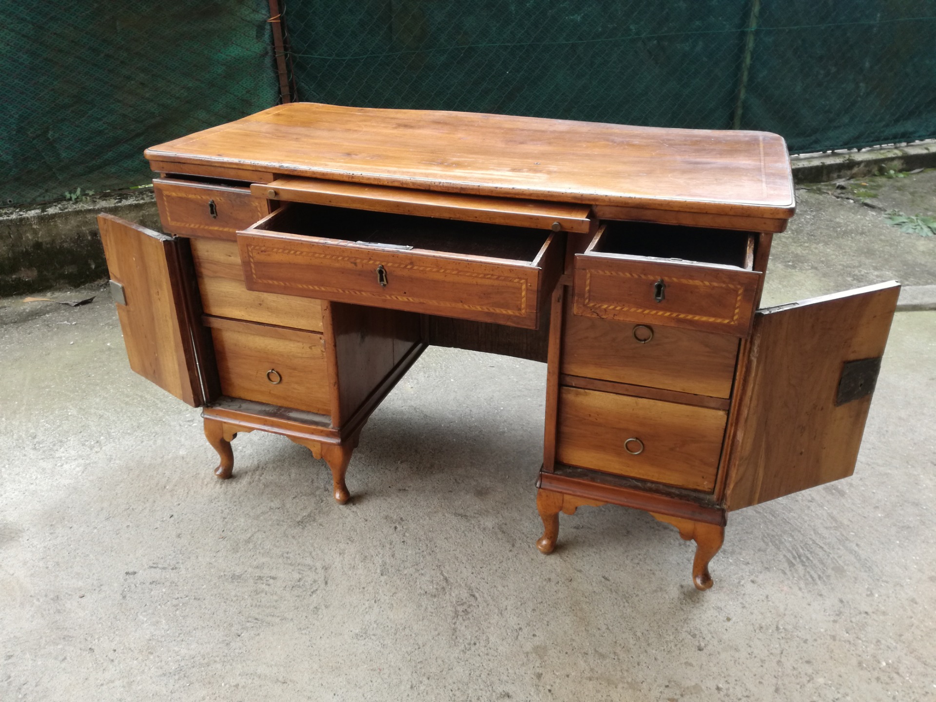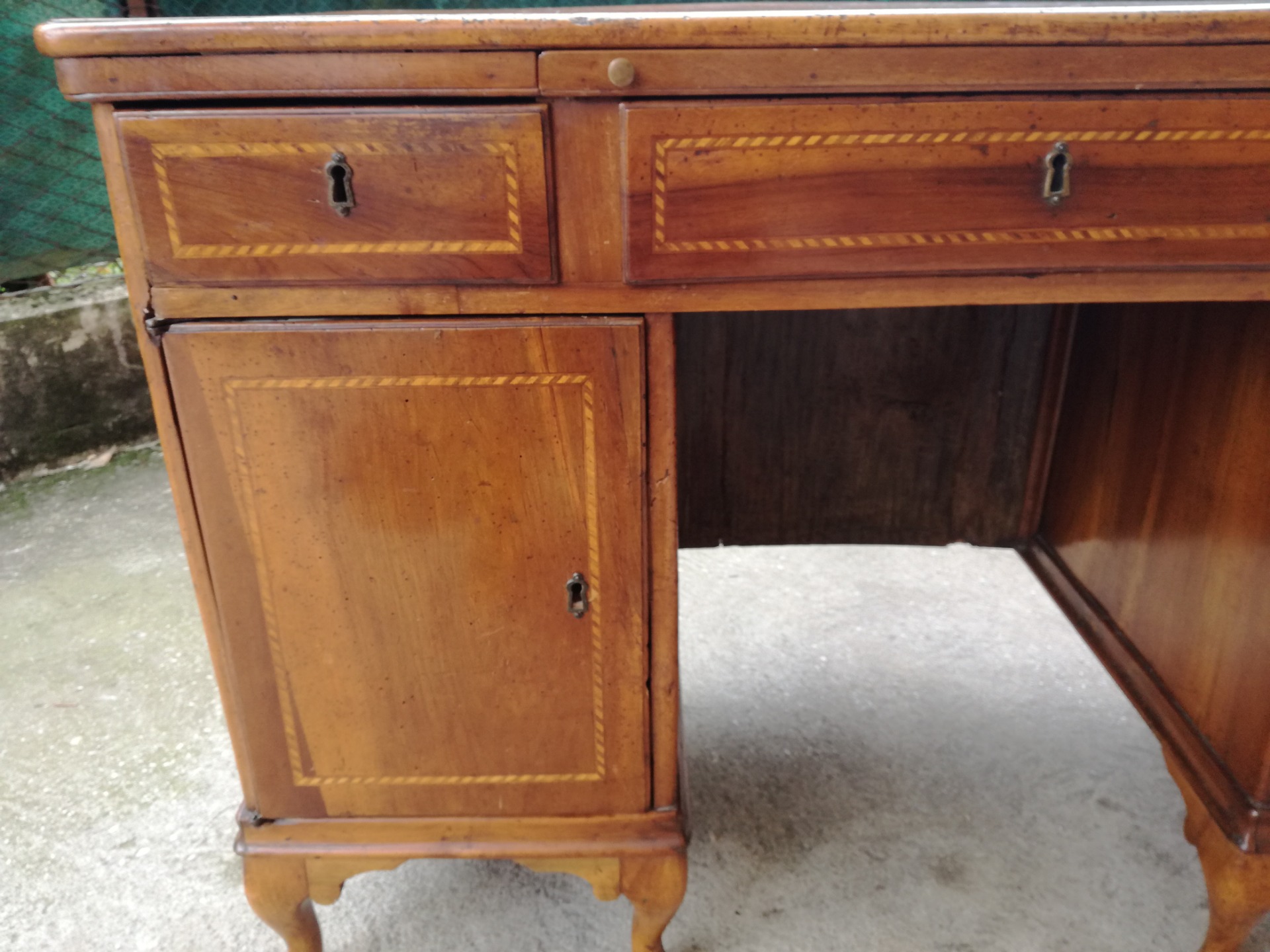 Scrivania Luigi XV in noce mossa e filettata internamente cassetti.Mis: L 120 P 58 H 80 Per info 3282493057
