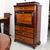 Secretaire biedermaier in mogano e piuma di mogano con intarsi interni