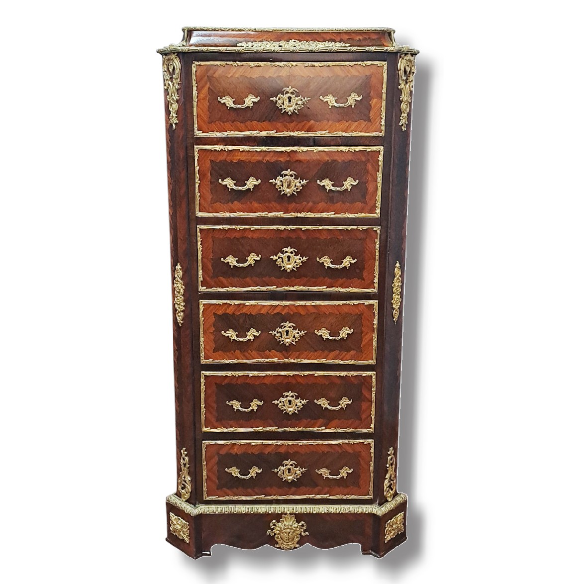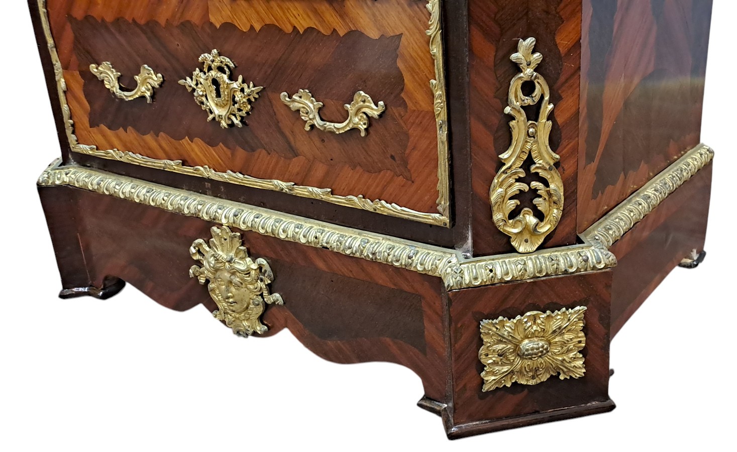 Una ricca ornamentazione bronzea impreziosisce il mobile .