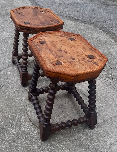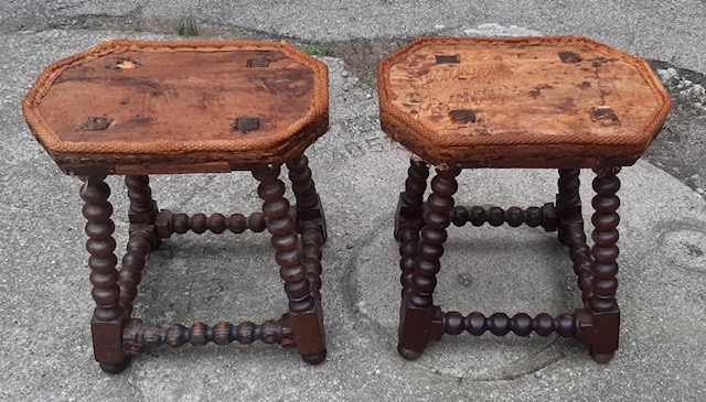 Rara coppia di sgabelli del Seicento in buone condizioni.