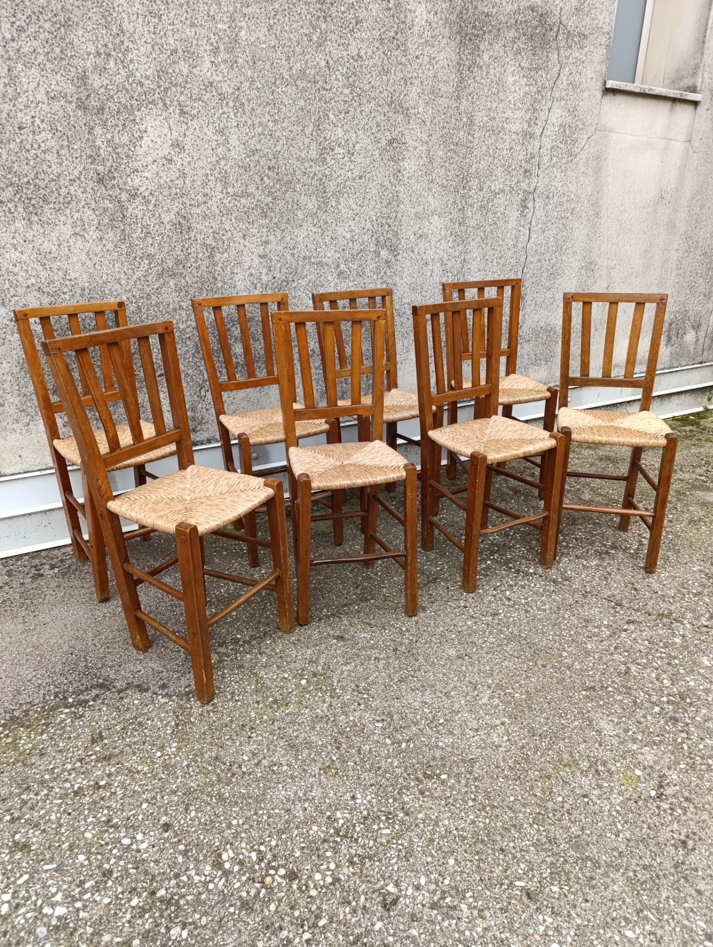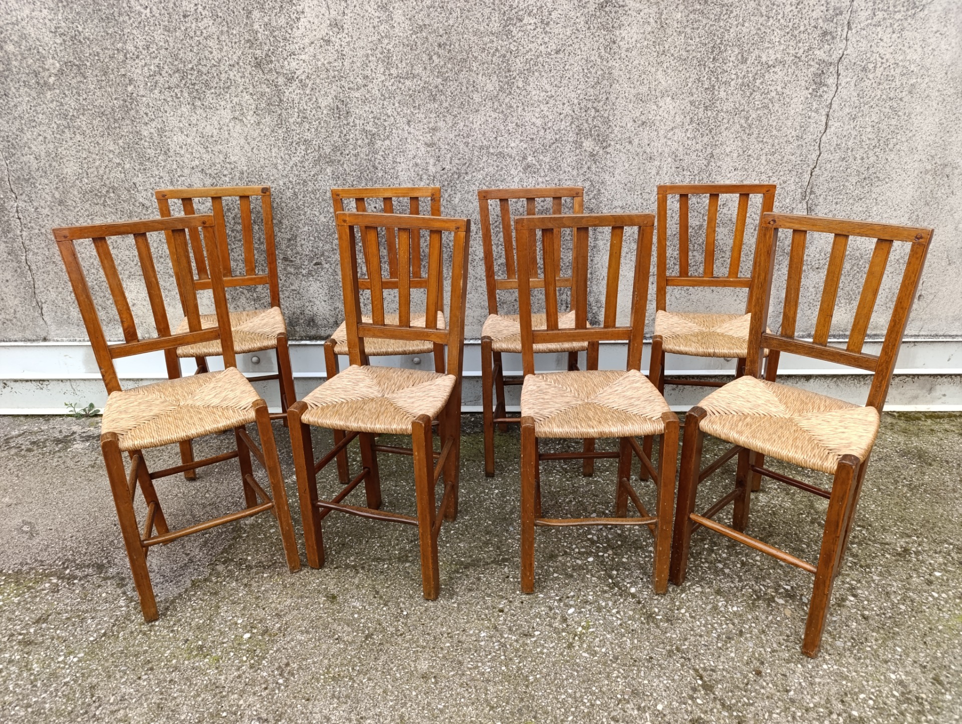 Gruppo di 8 sedie "asolane' in noce epoca primi 800.Paglia e struttura perfetta.