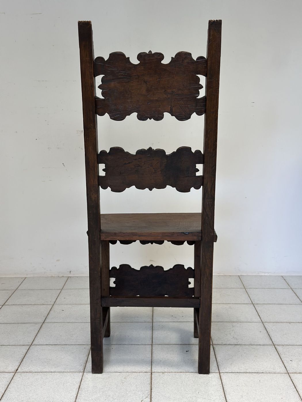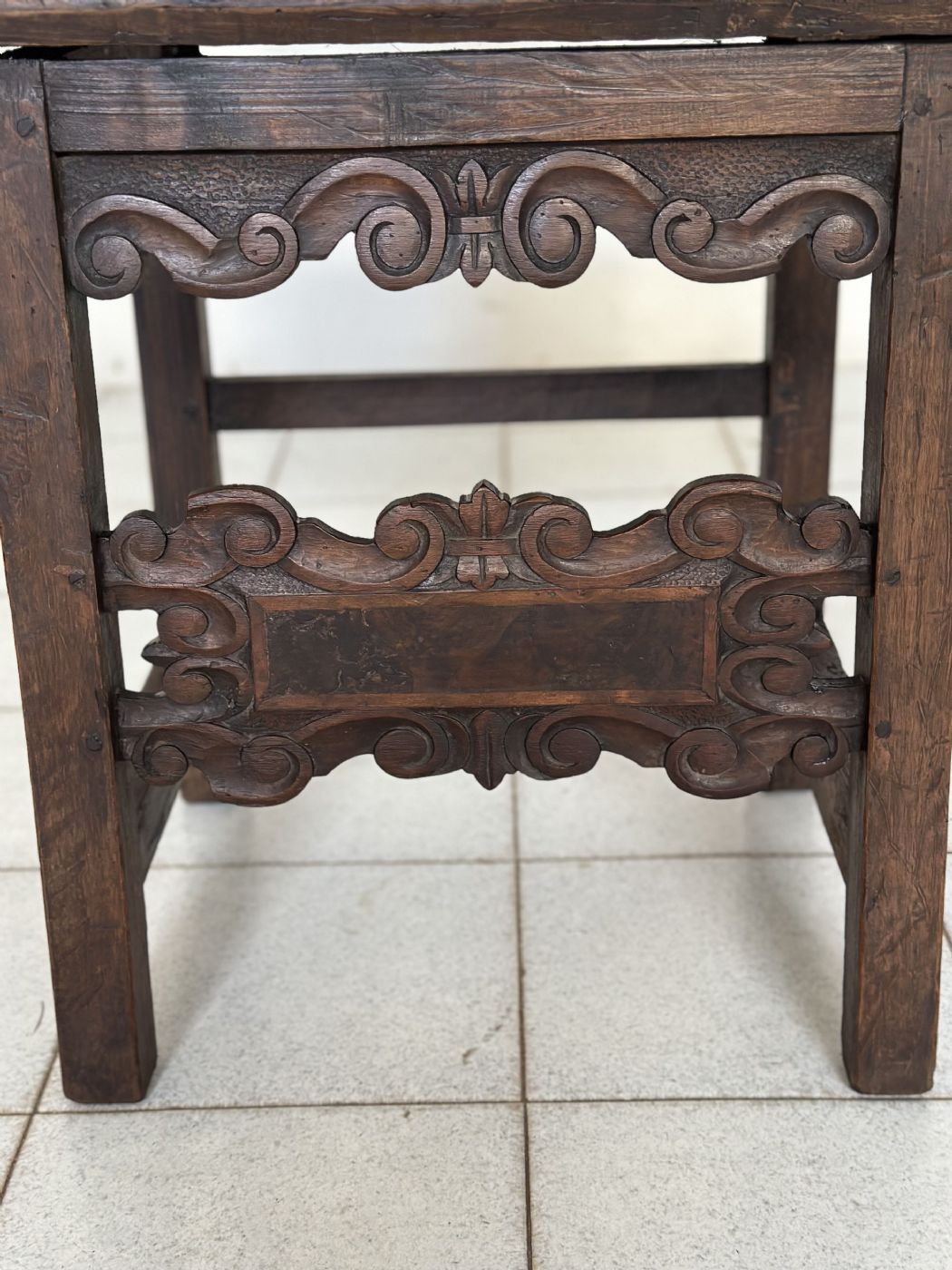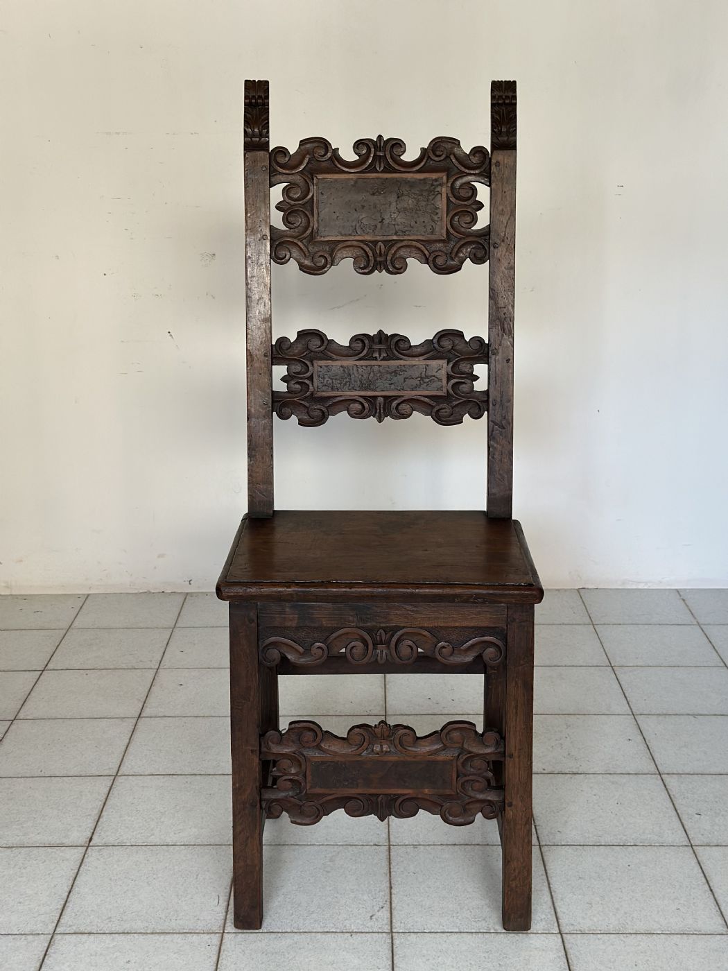 Sedia a cartella Luigi XIV in noce intagliato . Lombardia epoca 600
