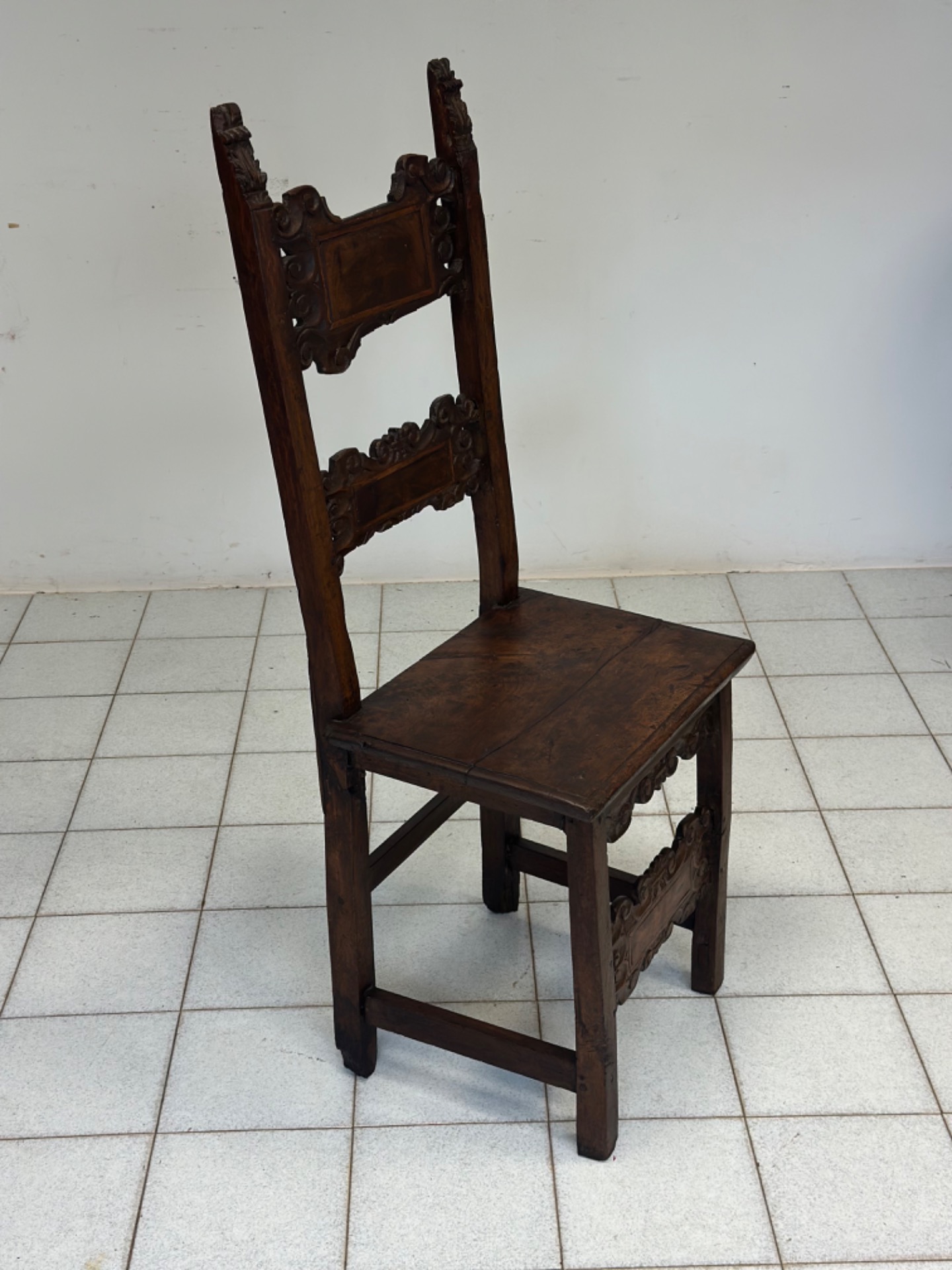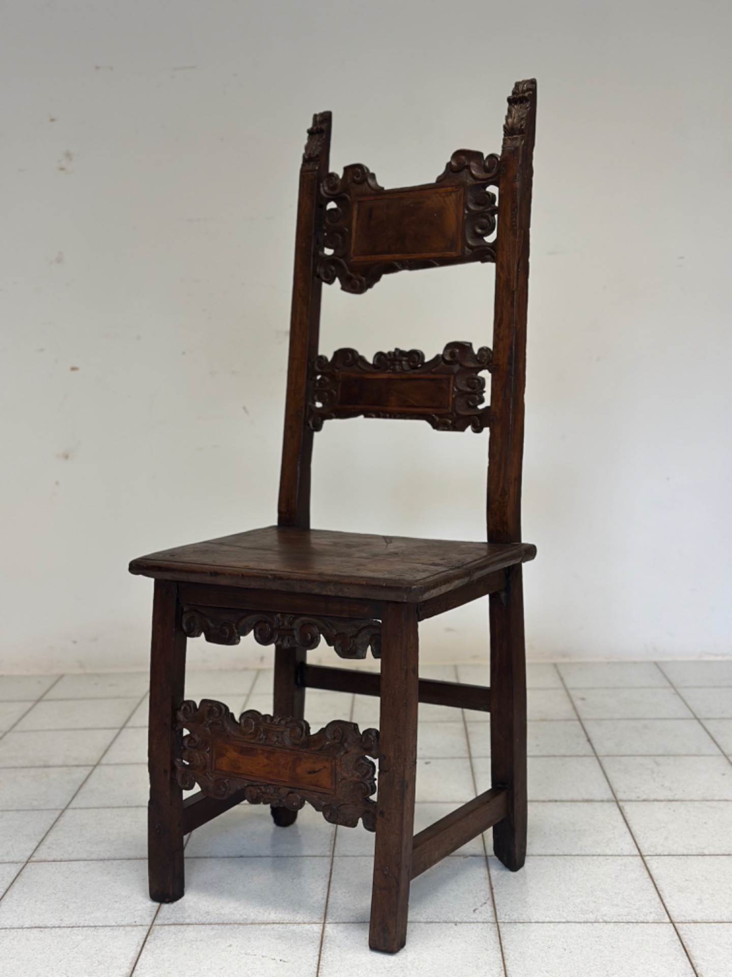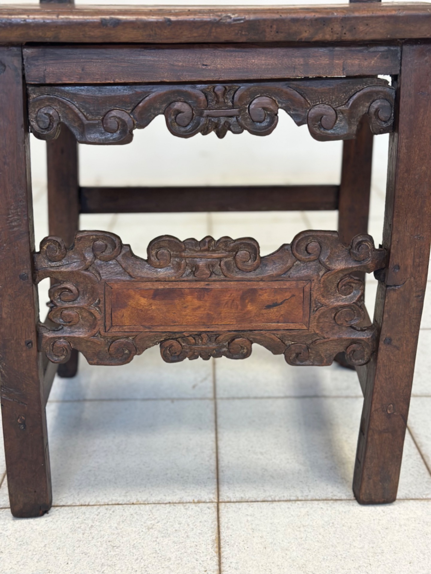 Sedia a cartella Luigi XIV in noce intagliato . Lombardia epoca 600
