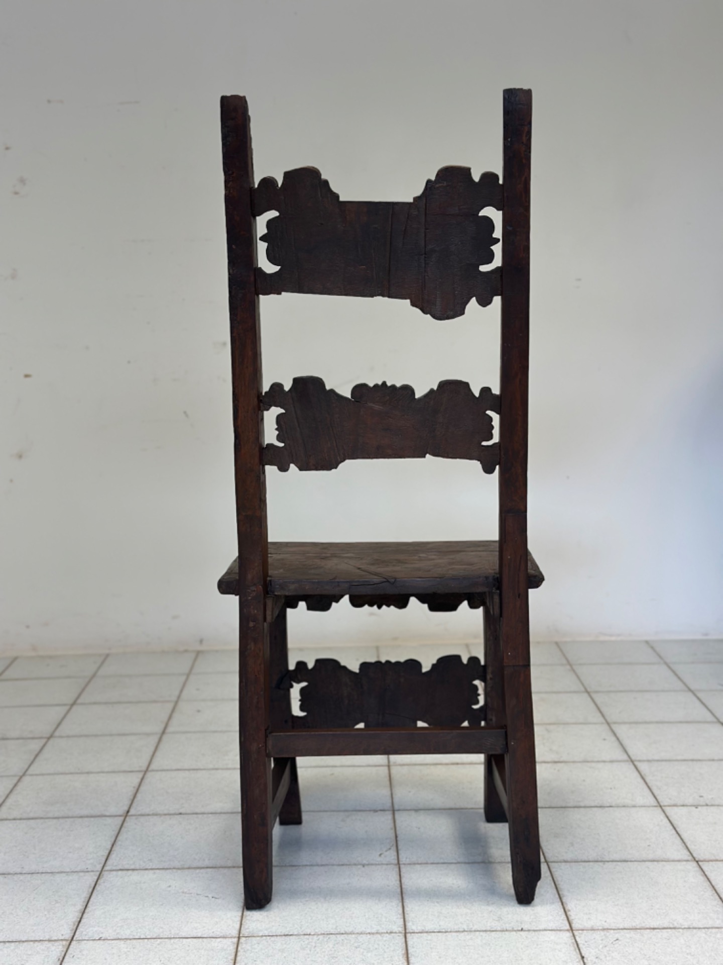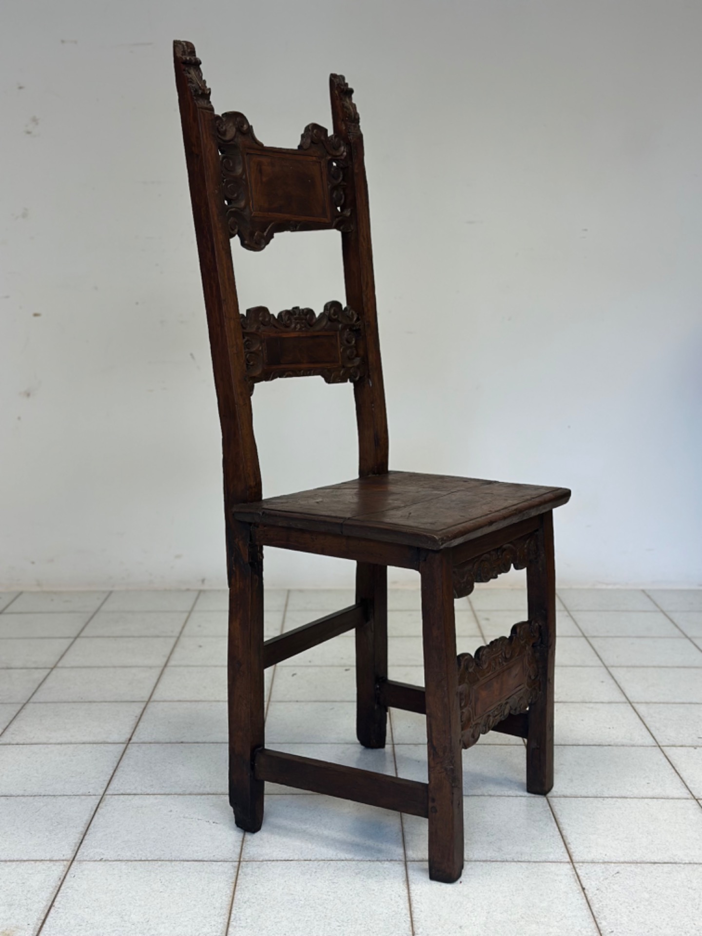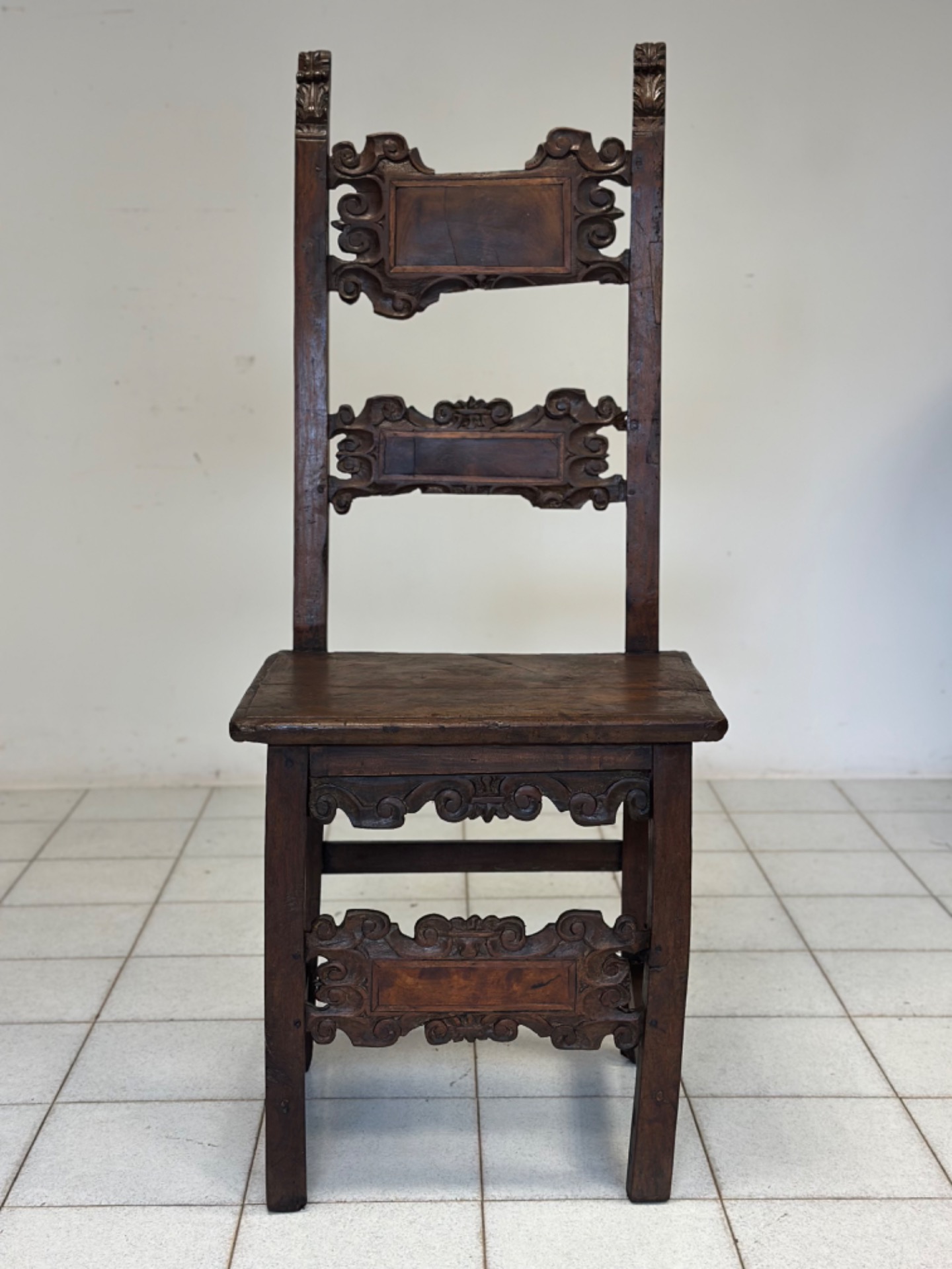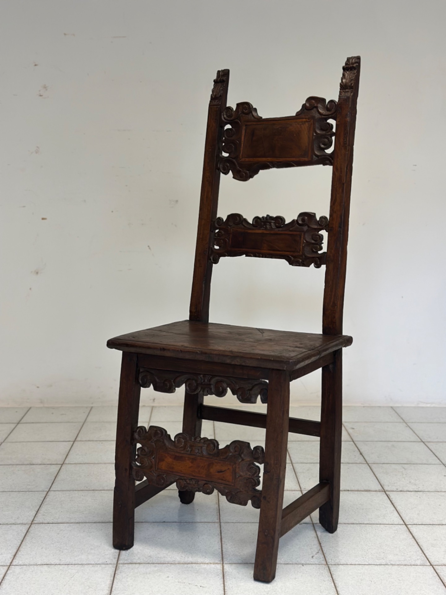 Sedia a cartella Luigi XIV in noce intagliato . Lombardia epoca 600