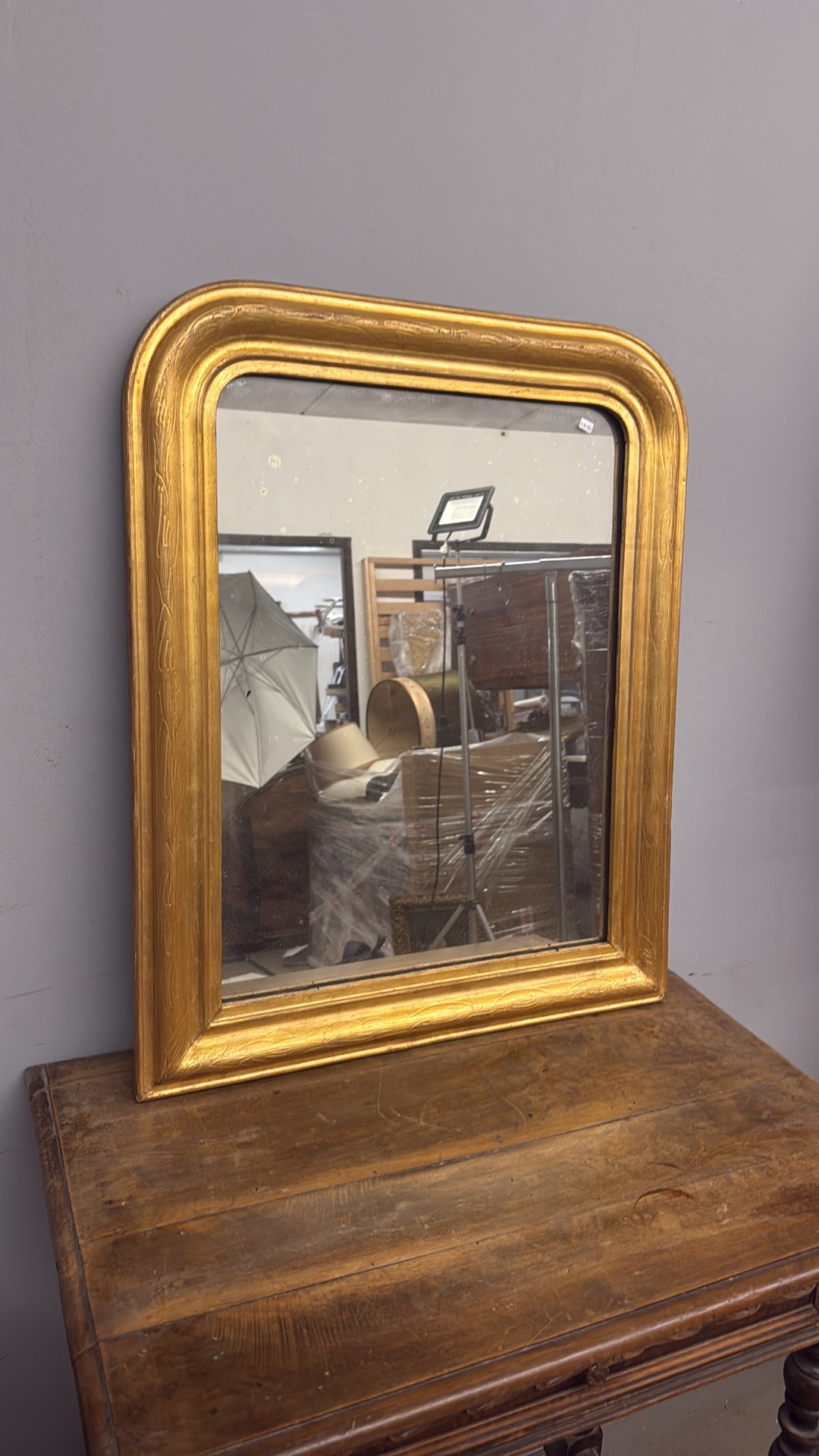Antica specchiera dorata XIX, 74x58 cm