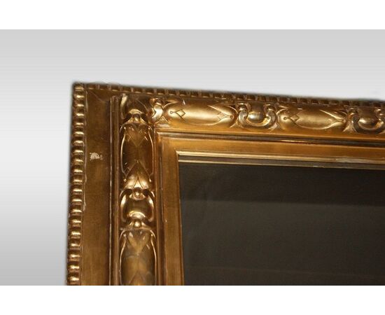 Grande specchiera simmetrinca francese di metà 1800 in legno dorato foglia oro. Presenta ricca cornice riccamente rifinita.