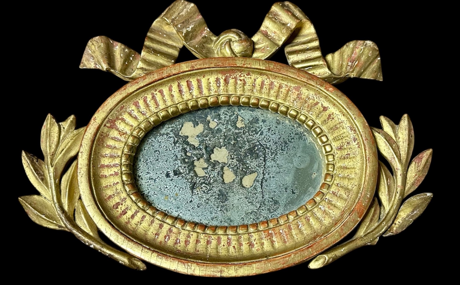 Piccolo specchio ovale in legno dorato con fiocco – Italia, fine XVIII / inizi XIX secolo