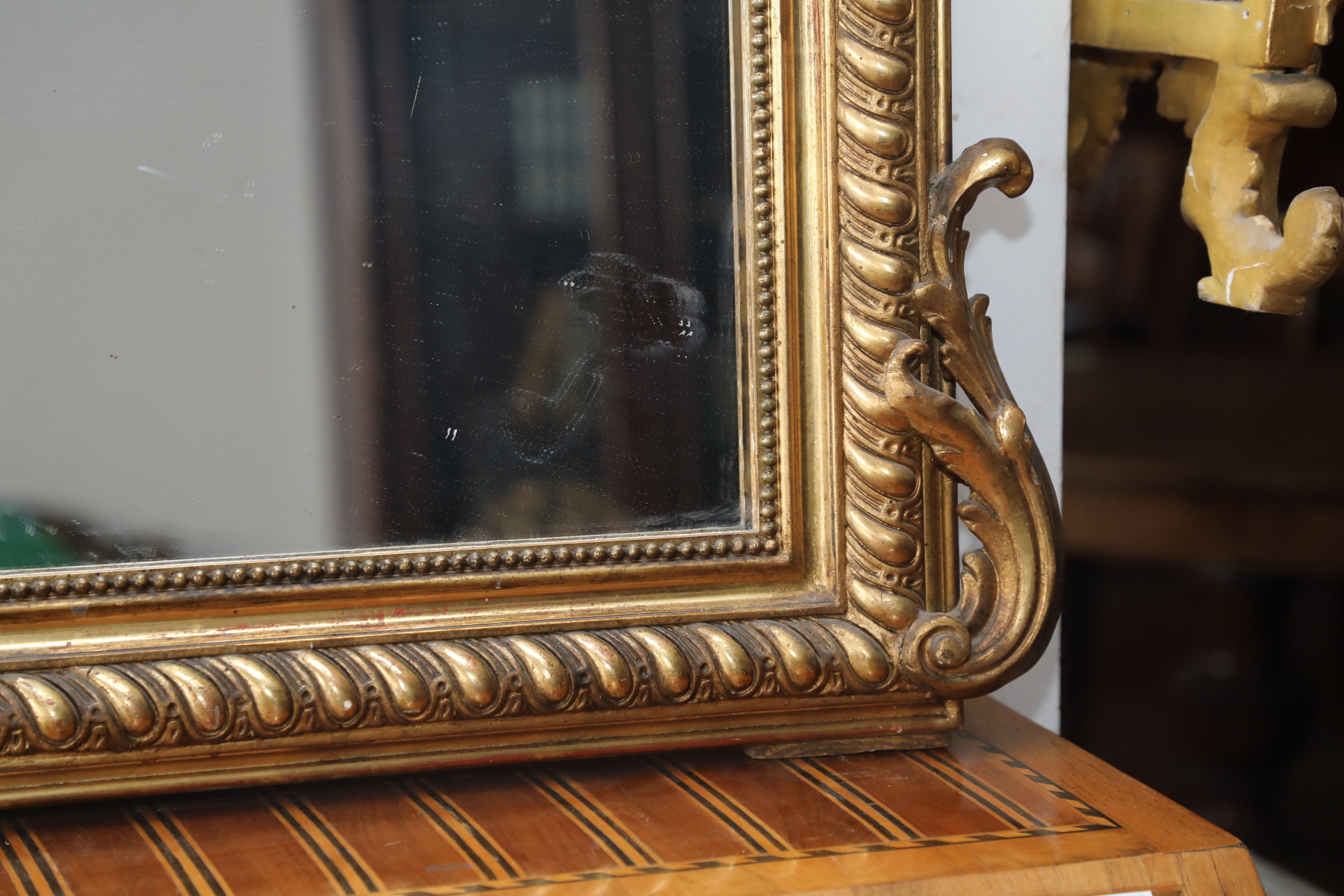 Specchiera in legno dorato ed intagliato con cimasa a ricciolo metà 800
