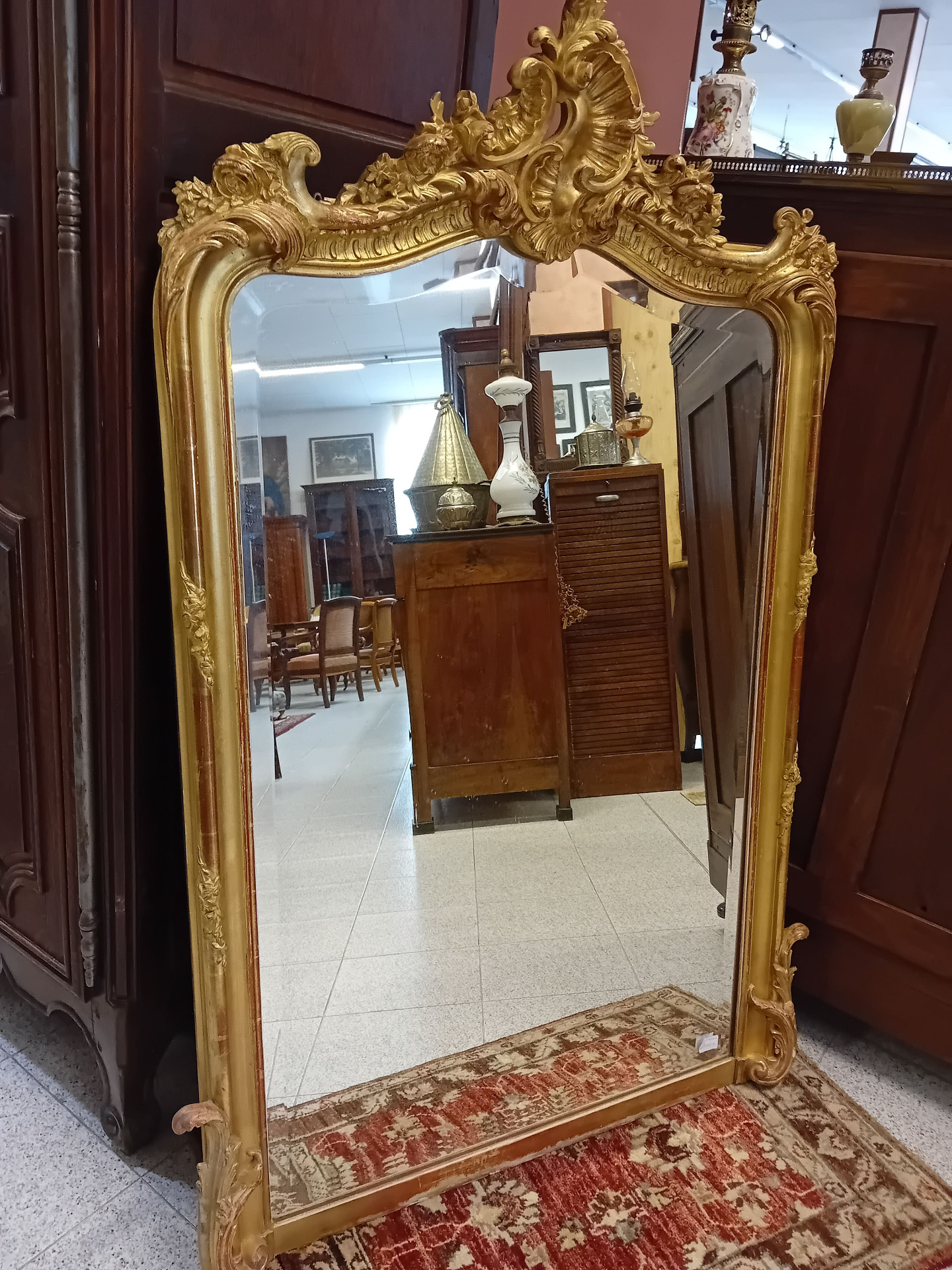 con cimasa mossa ,conchiglia ,motivi floreali a ramages lungo i lati ,foglie intagliate sui lati della base. Dimensioni: Altezza massima 137 cm - Larghezza massima 91 cm Spese di spedizione a carico cliente. Per maggiori informazioni contattateci: info@antichitadaziano.com