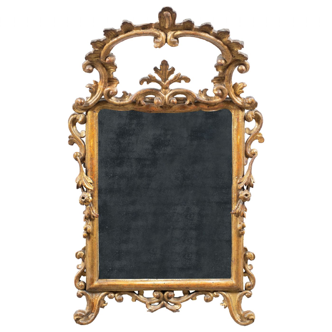Specchiera in legno intagliato e dorato. Italia, XVIII secolo.