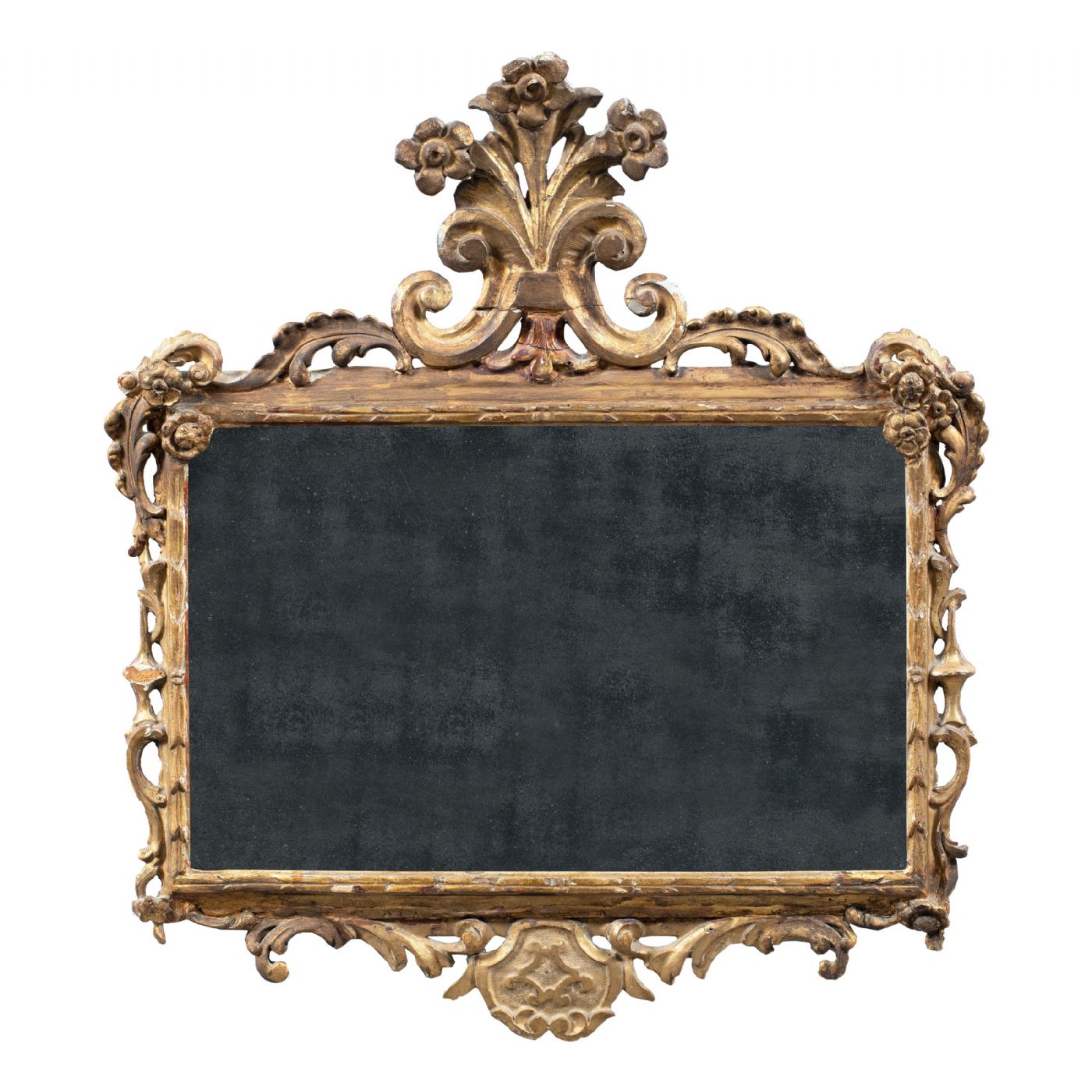 Specchiera in legno intagliato e dorato. Italia, XVIII secolo.