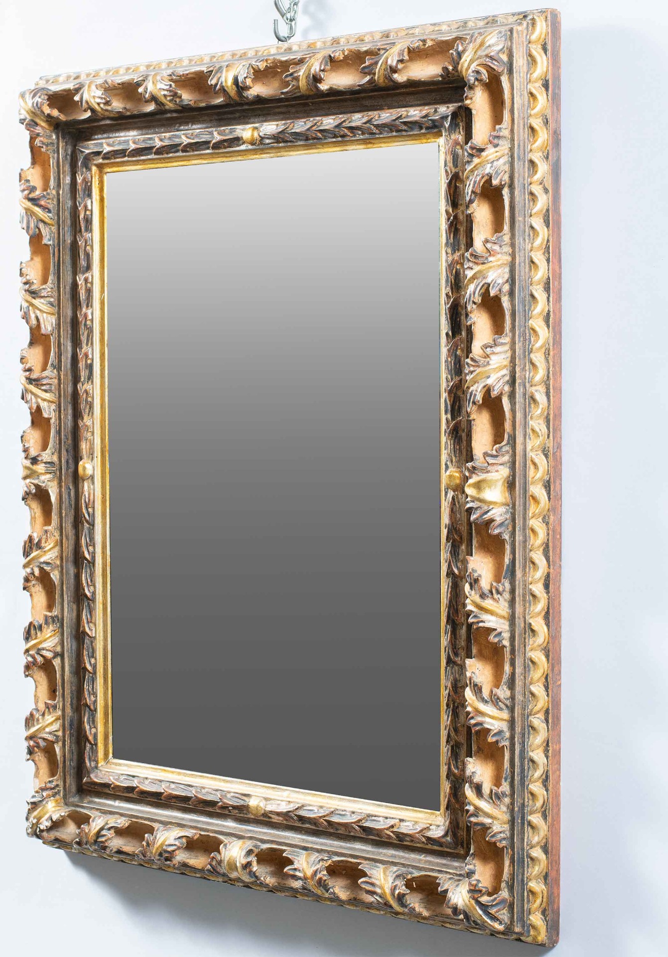 Specchiera Liberty in legno intagliato e dorato. Italia, XX secolo.