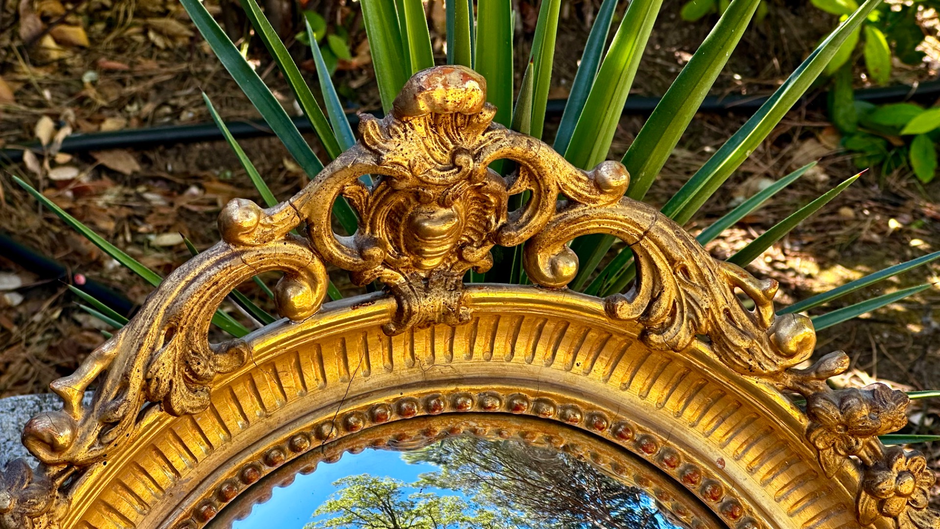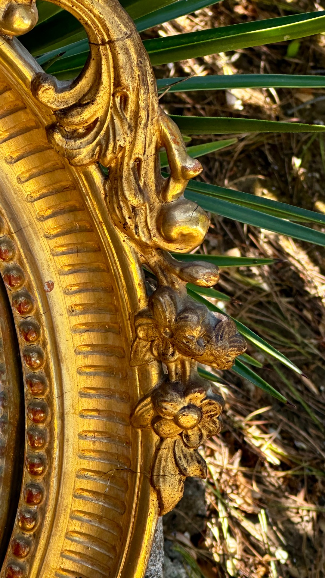 Specchio “Sorcière” in legno dorato, XIX secolo Raro specchio convesso di forma ovale, detto “sorcière”, databile alla seconda metà del XIX secolo. La cornice è finemente lavorata in legno intagliato e dorato, arricchita da una elegante decorazione a perle lungo l’interno e da una serie di motivi scanalati nella fascia esterna. L’imponente cimasa in pastiglia presenta volute rocaille, fiori e foglie d’acanto, in stile tardo Luigi XVI, con elementi ornamentali tipici del gusto francese della fine Ottocento. Lo specchio convesso, originariamente usato per ampliare la prospettiva e riflettere la luce, conferisce all’oggetto un fascino teatrale e decorativo. In buone condizioni generali, con leggeri segni del tempo sulla doratura. La sorciere è un oggetto ricco di fascino e simbolismo, spesso presente nei dipinti antichi, specialmente tra il XV e il XVII secolo. Forse il dipinto più famoso dove si vede uno specchio convesso è di Jan van Eyck – “I coniugi Arnolfini” (1434), al centro della parete posteriore del dipinto si trova un piccolo specchio convesso che riflette tutta la scena, incluso il pittore stesso. Simboleggia la presenza divina, la verità e anche la testimonianza della scena raffigurata. Funzione e simbolismo: Ampliava la luce e permetteva una visione ampia dello spazio (usato nelle case borghesi). Simbolo di onniveggenza, vanitas (caducità della vita), o anche protezione magica nelle credenze popolari. In Francia, si guadagna il nome di miroir de sorcière (specchio della strega), proprio per questa aura di mistero e potere. Epoca: Luigi Filippo Misure: cm. 60,5 x 45,5 Oggetto corredato da certificato d'autenticità. Questo articolo, come tutti i nostri oggetti, viene venduto accompagnato da certificato fotografico di autenticità e lecita provenienza. Tale documento identifica l'oggetto aggiungendo più valore all'articolo. Ci occupiamo del trasporto e organizziamo personalmente l'imballaggio e la spedizione delle opere d'arte in tutto il mondo. ???? Antichità DELMONTE ???? https://www.instagram.com/delmonteantichita/ CONTATTI: PER QUALSIASI INFORMAZIONE AGGIUNTIVA NON ESITATE A CONTATTARMI! Cell. Anna 338 4989679 EMAIL: annadelmonteantico@libero.it